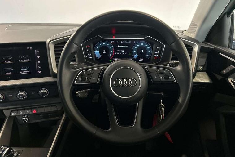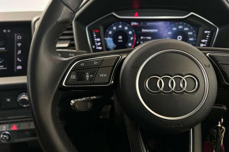 10.25" Digital instrument cluster display classis style instrument dials + speed, odometer, time, outside temperature, telephone menu + fuel level warning, Audi connect safety emergency and service including E-call, Audi drive select - power steering assistance + engine, Audi smartphone interface with connect compatible smartphone via USB directly MMI display + Nav, music, third party apps controlled via MMI controller, Automatic start/stop system, Bluetooth interface, Cruise control, Driver's information system, Electromechanical power steering, Emergency services call system, Lane departure warning system, Service interval indicator, Speed limiter, Voice control system, Washer fluid level indicator, Dynamic suspension, 1 x SDXC card reader, 2 x USB type C connection points, DAB Digital radio, MMI radio plus with 8.8" colour MMI display screen and MMI touch, Auto dimming rear view mirror, Body coloured bumpers, Body coloured door mirrors, Electric front and rear windows, Electrically adjustable, heated, folding door mirrors with integrated LED side indicator, Front side air inlets in grained matt black and C frame in titanium black, Heat insulating glass windscreen and side windows, Heated rear windscreen, High level LED brake light, LED headlights with LED rear lights + dynamic rear indicators + headlight adjustment and high beam, turning light + LED daytime running lights, Radiator grille and rear diffuser in matt titanium black, Radiator protective grille frame in matt aluminium silver, Rain and light sensors, Rear fog lights, Rear side wing doors, Rear wing door, Rear wiper, Side front spoiler lips in grained matt black, 12V socket in centre console with two cup holders, 3 rear seats with headrests, 3 seat bench in 2nd row, 40:60 Split folding rear seat or folded fully, Door sill trims with aluminium inlay, Driver and passenger seat with manual height adjust with forward and backwards adjustment, Front head restraints, Front passenger seat, Front/rear floor mats, Height and reach adjustable steering wheel, ISOFIX child seat mounting for front passenger and outer rear seats including top tether attachment point of outer rear seats, Leather gear knob with aluminium trim, Leatherette handbrake grip, Luggage compartment light with front and rear reading lights, Manually adjustable lumbar support in front seats, Novum cloth upholstery with front sport seats, Titanium grey cloth headlining, Luggage compartment pack - A1, 3x3 point rear seatbelts, Audi pre-sense front with pedestrain and cyclist recognition, Brake assist function, Driver and front passenger airbag with front side and head airbags, Electronic Stability Control including ABS, EBD, ASR and EDL, Front passenger airbag deactivation switch, Hill hold assist, Manual rear child locks, Seatbelt height adjustment for front seats, Seatbelt monitoring, Tyre pressure warning light, Warning triangle and first aid kit, Anti theft alarm, Anti theft wheel bolts and loose wheel warning, Immobiliser, Remote central locking with 2 foldaway keys, Aluminium trim for control switches, air vents and digital instrument cluster, Silver grey accent areas including air vents, door handle recesses and centre console in diamond paint finish, Slate grey inlays polygon structure in fine paint finish,