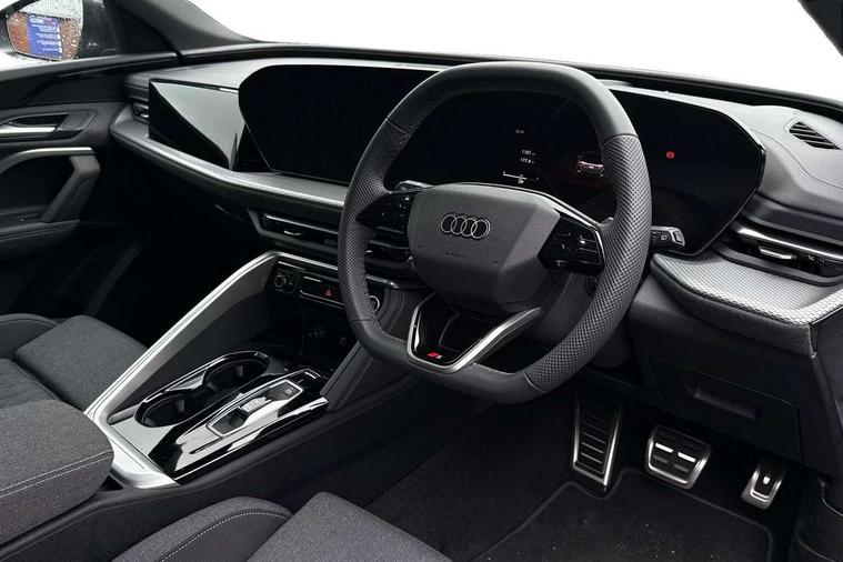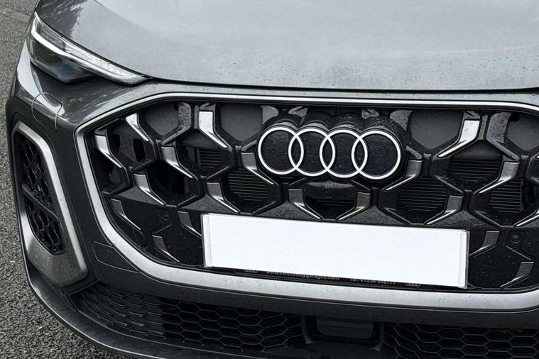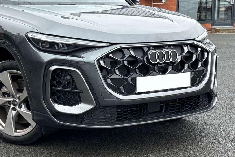 Adaptive cruise control, Advanced driver attention alert, Audi application store, Audi connect emergency call and service, Audi drive select, Audi smartphone interface, Audi virtual cockpit plus with 11.9" OLED colour display, Camera based traffic sign recognition, Fatigue monitor, Front cross traffic intersection assist, Lane departure warning system, MMI navigation plus with high resolution 14.5" OLED touchscreen colour display, Park assist plus, Parking system plus with 360 display, PAS, Reversing camera, Swerve assist and turn assist, Traffic sign based speed limiter, 2 USB-C ports in both the front and rear, Audi sound system impressive sound with 10 loudspeakers including centre speaker and subwoofer, 6-channel amplifier with a total output of 180 watts, DAB Digital radio, Smartphone compartment with wireless charging, Aluminium roof rails, Auto dimming rear view mirror, Body coloured door mirrors, Coming/leaving home lighting function, Electrically adjustable heated and folding + automatically dimming exterior mirrors, Front and rear electric windows, Front door sill trims with aluminium inlays, illuminated with 'S' logo, Headlight cleaning system, Heated rear window, High beam assist, High gloss window surrounds, Inlay and front air inlets in matt anthracite chrome, LED headlights plus incl. digital DRL, dynamic coming and leaving home function with turning/all weather/motorway/manouevring and intersection lights, LED rear lights pro incl. dynamic rear indicators and illuminated light strip with animated coming and leaving home function, Logo projection light in exterior mirrors, Privacy glass, Projection light for rear window, Radiator grille in phantom black, Rear and side windows with heat insulating glass, Rear honeycombe grille in matt black with inlay in matt anthracite chrome, Rear side wing doors, Rear wash/wipe, Red S line rhombus badging on rear, S line bumpers in contrasting Volcano grey metallic paint finish, Towbar preparation, Windscreen with acoustic glazing, 3 rear head restraints, 3 seat bench in 2nd row, 3 spoke leather steering wheel with multi-function buttons with touch control, flattened on top and bottom, with S badging and contrast stitching, 40:20:40 split folding rear seat bench with centre armrest and cup holders, Comfort centre armrest, Deluxe 3 zone electronic climate control, Front and rear floor mats, Front seats with manual adjustment for position and 4-way electric lumbar support, Front sport seats with integrated head reastrains, Headlining in black cloth, Heated front seats, i-Size child seat mounting on the front passenger side and i-Size and top tether on the outer rear seats, Interior trim in aluminium look, Luggage compartment lid, electrically opening and closing, Manual steering column adjustment, Single front passenger seat, Softwrap in leatherette, Stainless steel pedals and footrest, Steering wheel grips in perforated leather and shift paddles, Ambient lighting package plus - Q5, Storage and luggage compartment pack - Q5, ABS, Acoustic vehicle alerting system, Driver and front passenger airbag with passenger airbag deactivation, Electric child safety locks, First aid kit with warning triangle and high visibility vests, Front emergency brake assist, Front side airbags with head airbag system and front interaction airbag, Hill hold assist, Rear seat occupant reminder, Tyre pressure loss indicator, Anti theft alarm, Anti-theft wheel bolts, Remote control key with SAFELOCK and keyless go, Accent surfaces and control buttons in gloss black, Anthracite matt brushed aluminium inlays with linear embossing, Black dashboard with contrast stitching, Upper and lower interior elements in artificial leather, Tyre repair kit,