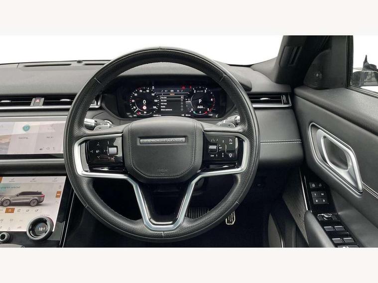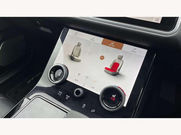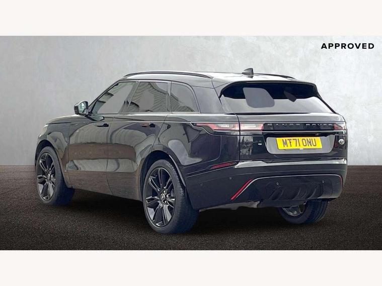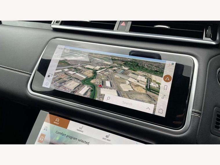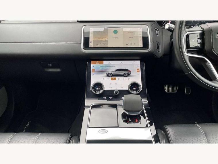 10" touch screen, Adaptive cruise control with steering assist, Android Auto, Apple car play, Blind spot assist, Bluetooth connectivity, Brake pad wear indicator warning light, Driver condition monitor, InControl remote, Interactive Driver display instrument cluster, Land Rover InControl apps, Lane keep assist, Pivi pro connected includes upgraded infotainment, smart settings, connected navigation pro, Nuance speech licence, Push button start, Rear collision monitor, Rear traffic monitor, Service indicator, Speed proportional electronic power assisted steering (EPAS), Traffic sign recognition with adaptive speed limiter, Trip computer, Voice control system, 8 speed automatic transmission, Adaptive dynamics, All terrain progress control, Electronic air suspension, Open differential with torque vectoring by braking, Single speed transfer box, Digital Audio Broadcast radio-DAB, Steering wheel mounted controls, Acoustic laminated windscreen, Adaptive front lighting system, Auto dimming interior rear view mirror, Automatic headlamp levelling, Automatic headlights, Body coloured bumpers, Boot protection plate, Electric heated/power fold door mirrors with approach lights and auto dimming driver side, Electric windows with one touch open/close and anti trap, Flush deployable exterior door handles, Follow me home headlights, Heated rear window with timer, Heated windscreen, HSE badge, Metal load space scuff plates, Rain sensor windscreen wipers, Rear fog lights, Rear wash/wipe, Tailgate/boot lid spoiler, Trailer stability assist, Velar and R-dynamic badge, Ambient lighting, Bright metal pedals, Driver/passenger sunvisors with illuminated vanity mirrors, Electric adjustable steering column, Isofix system on outer rear seats, Loadspace cover, Overhead lighting console, Overhead stowage for sunglasses, Passive front headrests, Rear air vents, Rear centre headrest, Satin chrome gearshift paddles, Twin front cupholders, Twin sliding front centre armrest, Online pack with data plan - Velar, 355mm front brakes and 325mm rear brakes, 3x3 point rear seatbelts, Anti-lock braking system (ABS), Cornering brake control, Curtain airbags, Customer configurable autolock, Door side intrusion beams, Driver airbag, DSC - Dynamic Stability Control, Electronic brake force distribution, Electronic parking brake, Electronic traction control, Emergency brake assist, Emergency braking, Front and rear seatbelt reminder, Hill descent control, Hill launch assist, Low traction launch, Passenger airbag, Power operated child locks, Rear airbags, Roll stability control, Side airbags, Tyre pressure monitoring system, Unpainted brake calipers, Global lock and unlock switch on driver door, Immobiliser, Intrusion sensor, Keyless entry, Lock only switch on front passenger door, Locking wheel nuts, Perimetric alarm, Remote central locking,