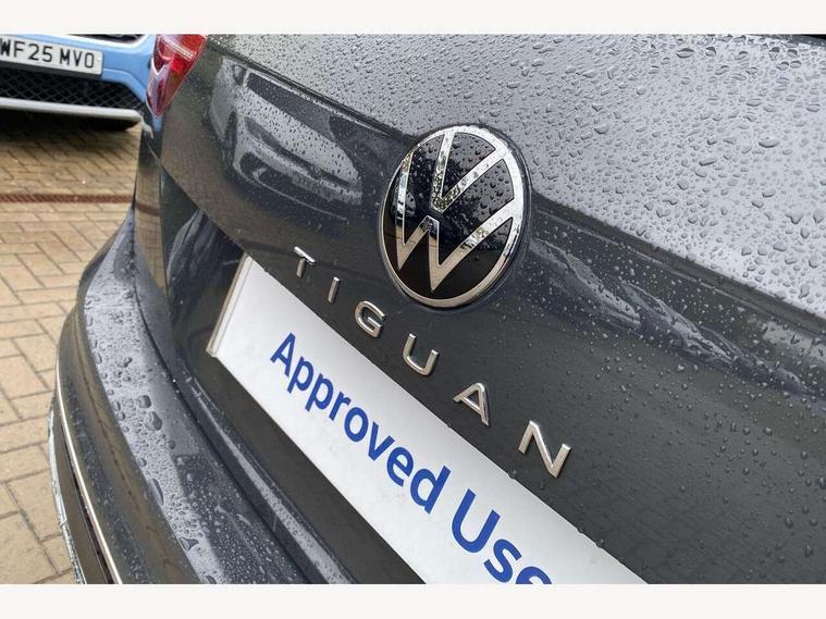 Adaptive cruise control ACC stop and go including speed limiter, App-Connect incl. App-Connect Wireless for Apple CarPlay and Android Auto, Bluetooth phone integration system, Digital Cockpit Pro - Active info display, Distance control assist, Driver alert system, Driver profile selection, Dynamic road sign display, eCall emergency call system, Electric tailgate opening, Electromechanical speed sensitive power steering, Lane keeping system Lane Assist, Lights on warning, Multifunction front facing camera, Outside temperature display, Premium multifunction display with multi colour display, Revision / skills operating concept travel assistant, Service interval indicator, Start/stop system with regenerative braking, Tailgate/trunk lid unlocking from outside, Warning sound and light for doors and tailgate open, Battery regeneration during braking, XDS electronic differential lock for improved traction and handling, 2 USB-C ports in the front, 1 USB-C charging socket on the center console in the rear, Diversity antenna for FM reception, Radio, SD card slot, Simultaneous pairing of 2 compatible mobile devices, SMS functionality - read, compose and send SMS messages using touch-screen display, Title and cover art display, Auto dimming interior rear view mirror, Automatic headlight control system, Body colour door handles, Body coloured bumpers, Coming/leaving home lighting function, Dynamic headlight range control, Front and rear electric windows, Heated rear window, High level 3rd brake light, IQ light with advanced high beam control and dynamic light assist for LED matrix headlamps + Dark red rear combination lamp in LED technology, Laminated safety glass windshield, heat and sound insulating, LED rear number plate lights, LED separate daytime running light, Poor weather light and cornering light, Privacy glass for rear side windows and rear window, Rain sensor windscreen wipers, Rear exhaust tailpipe, Rear fog lamp, Rear windscreen washer and wiper with interval delay, Side and rear windows in heat insulating glass, Tilting and sliding panoramic sunroof with rear panoramic sunroof, Trailer Stability Programme, Windscreen wipers/ intermittent wipe + 4 position delay, 12V outlet in center console rear and in luggage compartment, 2 cup holders in front, 2 LED front reading lights, 2 LED rear reading lights, 3 rear headrests, 4 load lashing points, 40:20:40 split folding rear seats, Air Care Climatronic 3 zone automatic climate control with enhanced air filter and controls in the rear, Backrest release for left front seat, Climate control unit rear with touch function, Door and side trim panel in foam film and woven fabric, Front + rear carpet mats, Front footwell illumination, Front seats head restraints (x-adjustment), Height adjustable front seats, Height/reach adjust steering wheel, Instrument lighting white adjustable panel illumination, Interior light with delay, Isofix Preparation 2 Rear child seats, Leather gear knob, Lockable cooled glovebox, Luggage compartment lighting, Rear bench seat asymetrically split folding, longitudinally movable and folding with load-through hatch and center armrest, Remote unlocking for rear seat backrest, Removable luggage cover, Safety optimised front head restraints, Sliding/reclining rear seats, Standard rear seat release, Storage compartment in driver's door, Storage compartment in passenger's door, Storage compartment in rear doors, Storage compartments in luggage area left and right, Storage tray on dashboard, Sun visors with illuminated vanity mirrors, Variable boot floor, height adjustable and removable, Ambience pack - Tiguan, Chrome pack - Tiguan, Easy open and close pack with safelock - Tiguan, 3 point seat belt for centre rear seats, 3 point seat belts with seat belt pretensioners for the outer rear seats, Active bonnet, Curtain airbags for front and rear passengers, Driver/Front Passenger airbags, Drivers knee airbag, Electronic parking brake with auto hold, Electronic Stability Control with driver steering recommendation, ABS, ASR, EDL, EDTC and trailer stabilization, Front assist with autonomous emergency braking (for Adaptive Cruise Control ACC up to 130 mph), Front disc brakes, Front passenger airbag deactivation, Front side airbags, Height adjustable front 3 point seatbelts + pretensioners, Hill hold control, Pedestrian monitoring system, Proactive passenger protection system in combination with front assist, Rear disc brakes, Rigid safety cell with front and rear crumple zones, Two tone horn, Warning sound and light for front seat belts if unfastened, Anti theft alarm system with interior monitoring, backup horn and towing protection, Anti theft wheel bolts, Central locking system with safelock radio remote control and 2 remote control folding keys, Electronic engine immobiliser, Tool kit,
