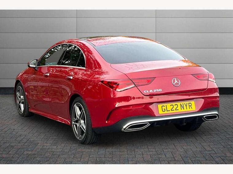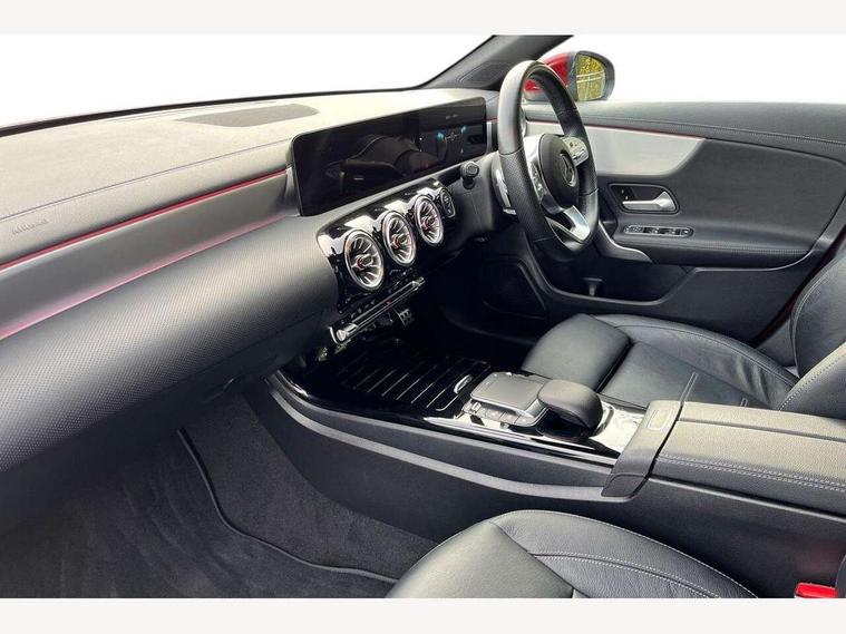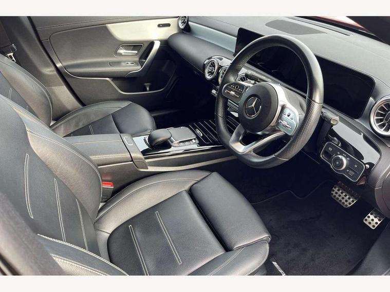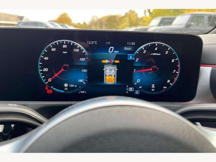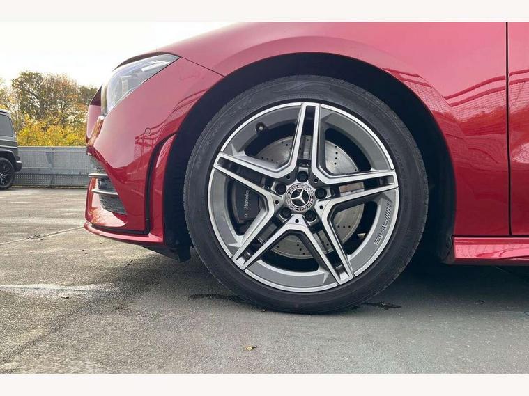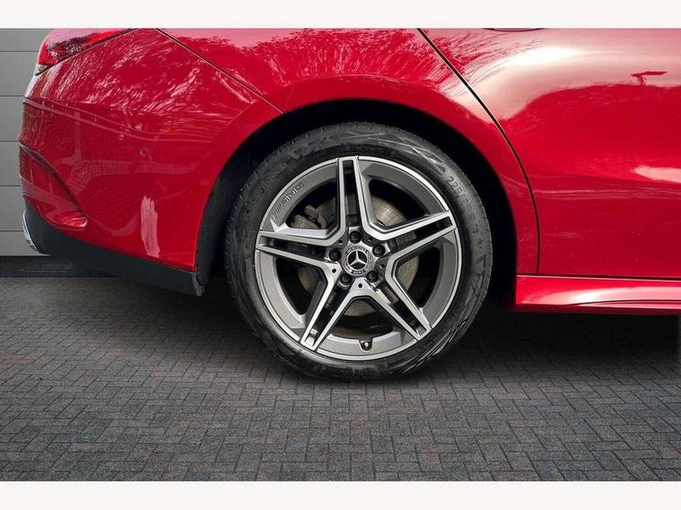 10.25 inch Instrument display with digital cockpit, 10.25 inch touchscreen central media display, Attention assist - Monitors steering behaviour and long journey fatigue, Bluetooth connection, Car wash mode, DYNAMIC SELECT with a choice of driving modes (ECO, Comfort, Sport and Individual), ECO start/stop function, Fluid level warning indicator for fuel, oil, coolant and washer fluid, Hard-disk navigation, Hey Mercedes Voice activation, Lamp failure indicator, Mercedes me connect including emergency call system, accident recovery, breakdown and maintenance management, Mercedes me remote services, Outside temperature gauge, Owners manual and service booklet in English, Pre-installation of private car share, Preinstallation for Mercedes Benz link, Radio aerial integrated into front and rear windshields, Service indicator (ASSYST), Smartphone integration with Apple CarPlay and Android auto, Traffic sign assist, Trip computer in multifunction display with current consumption indicator, 7G-DCT 7 speed automatic transmission, Lowered comfort suspension, Rear axle multi-link, DAB digital radio tuner, MBUX multimedia system with DAB digital radio and touchpad including satellite navigation, Mid-range sound system, USB (type C) ports (2) in stowage compartment and 1 in front of centre console, Adaptive brake lights, AMG body styling with AMG front apron and rear apron and visible exhaust tailpipe in chrome trim elements, AMG bodystyling side skirts, Auto headlights, Body colour bumpers, Body colour door handles, Chrome beltline strips, Chrome weather strip, Diamond radiator grille pins in chrome with silver painted louvres and chrome insert, Electric panoramic sliding sunroof, Electric windows, Electrically adjustable and heated door mirrors with integrated LED indicators, Exhaust system with 2 Visible tailpipe trim elements and rear apron with trim in chrome, Headlamp assist automatic headlamp activation, Heated glass rear windscreen + timer control, High level LED third brake light, Integrated LED daytime running lights, Interior mirror with black reading lamps and frameless, LED tail lamp, Multibeam LED headlamps with adaptive highbeam assist plus, Privacy glass with dark tinting on rear side windows and rear window, Rain sensing windscreen wipers with two sensitivity settings, Rear boot, Rear fog lamp, Rear side wing doors, Window line trim strip in chrome, 3 seat bench in 2nd row, 3 spoke flattened bottom nappa leather multifunction steering wheel with perforated leather in grip area, 40:20:40 split folding rear seat backrests, Air conditioning - Two zone thermotronic luxury automatic climate control with display, Air vents with surround in silver chrome, Automatic child seat recognition sensor, Black roof lining, Brushed stainless steel sports pedals with rubber studs, Floor mats with stitched AMG lettering, Front centre armrest with stowage, Galvanished gear shift paddles on steering wheel, Heated front seats, Illuminated front door sills with changeable cover, Illuminated glove compartment stowage, Interior lighting - 64 colour Ambient lighting, Luggage net on driver/front passenger seat backrest, Manually height and reach adjustable steering column, Rear armrest with two integral cup holders for drinks, Rear head restraints, Single front passenger seat, Sport seats with fixed head restraints, Stowage compartment in centre console with retractable cover, Sunvisors with illuminated vanity mirrors, Touchpad on center console, Twin front cupholders, Two outer rear seat isofix and top tether child seat fixing points, Keyless go pack - CLA, Light and sight pack - CLA, Mirror pack - CLA, Parking package - CLA, Seat comfort pack - CLA, Active bonnet pedestrain safety measure which detects an impact and raises bonnet by 65mm, Adaptive brake assist with hold function and hill start assist, Anti-lock braking system (ABS), Black seat belts, Bonnet with power domes, Brake pad wear warning indicator, Childproof locks manually operated for rear doors and electrically operated for rear power windows, Crash responsive emergency lighting, Driver and front passenger head and sidebags, Driver and front passenger windowbags, Drivers knee airbag, Dual stage driver and front passenger airbags, Electric parking brake, Electronic stability programme with acceleration skid control, ESP curve dynamic assist, Front and rear seatbelt reminder, Front passenger seat occupancy sensor, Perforated front brake discs, Three point rear seat belts, Tyre pressure monitoring system, Warning triangle and first aid kit, Remote central locking and crash sensor with emergency opening function, Urban guard vehicle protection system with immobiliser and interior protection, Light aluminium with longitudinal grain interior trim, 18" 5 twin spoke design alloy wheels painted in titanium grey with high sheen finish, Summer tyres, Tirefit tyre sealant kit,
