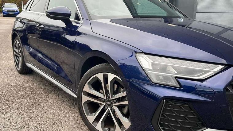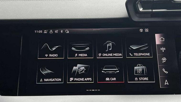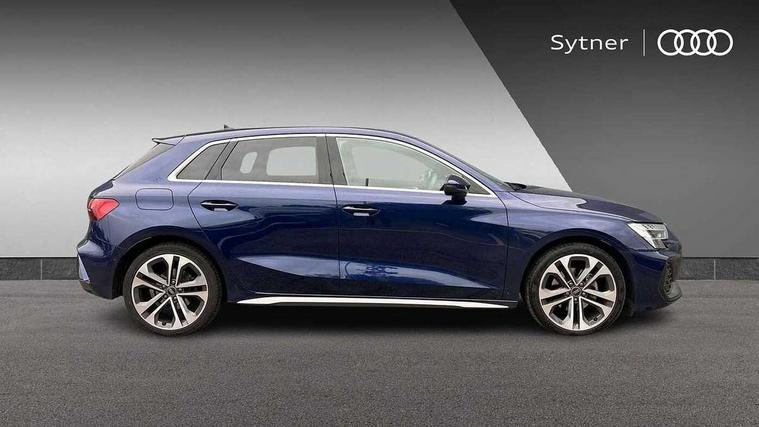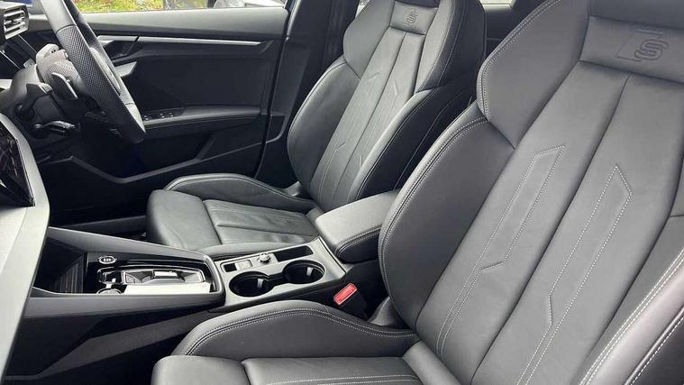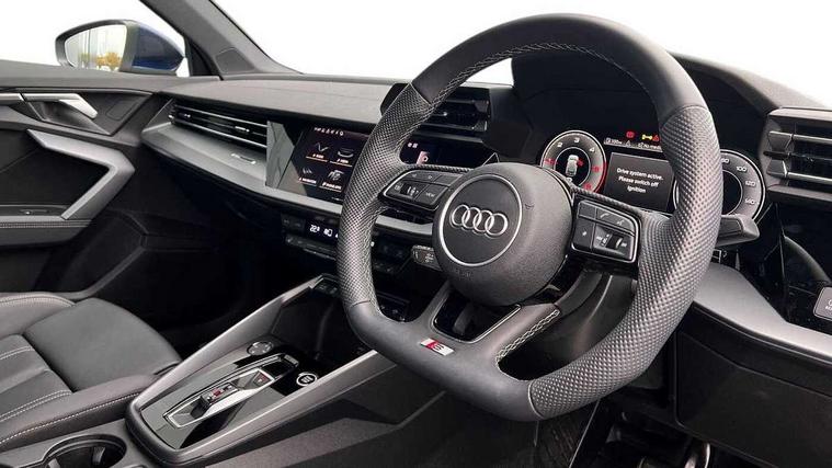 Adjustable speed limiter, Audi drive select, Audi smartphone interface with app store includes wireless Apple carplay, Android auto and Amazon alexa integration, Audi virtual cockpit plus - 12.3" full HD resolution dynamic digital instrument cluster, Automatic start/stop system with recuperation, Bluetooth interface, Camera based traffic sign recognition, Collision avoidance assistant, Cruise control, Distraction and Fatigue warning, e-Call (emergency call), Electromechanical power speed sensitive steering, Lane departure warning system, MMI Navigation Plus with high resolution 10.1" colour touch screen display, Park Assist with parking system Plus, Service indicator, Tailgate, Trip computer, Voice control system with natural language interaction, Diesel particulate filter, Sports suspension, Audi Phonebox light with wireless charging, Audi sound system - 10 loudspeakers including centre loudspeaker and subwoofer, DAB Digital radio, USB ports with charging function in the rear, Acoustic glass windscreen, Aluminium window trim, Auto dimming frameless rear view mirror, Body colour exterior mirrors, Chrome exhaust tailpipes, Electrically adjustable/heated/folding/auto dimming door mirrors with integrated LED indications + kerb view function for passenger side, Exterior model badging, Front and rear side air inlets in grained matt black with dark liquid chrome frame, Front electric windows, Front radiator grill in high gloss dark chrome, Heat insulating glass windscreen, Illuminated door sills with aluminium inserts at the front with S logo, LED 3rd brake light, LED daytime running lights, LED headlights with LED rear lights and dynamic rear indicators, Light and rain sensors, Privacy glass - dark tinted rear window, rear door and side windows, Rear diffuser and grill in grained matt black with inlay in dark liquid chrome, Rear electric windows, Rear side wing doors, Rear wiper, S line bumpers, S roof spoiler, Side S line emblems on front wings, Side sill trim in dark liquid chrome, 12V socket and storage compartment in front centre console, 3 seat bench in 2nd row, 3 spoke flat bottomed leather multifunction sport steering wheel with gear shift paddles, 3-zone deluxe automatic air conditioning, 4 way electrically adjustable lumbar support for driver and front passenger, 40/20/40 split folding rear seat bench, Black cloth headlining, Front and rear centre armrest in artificial leather, Front and rear headrests, Front/rear floor mats, Heated front seats, Height and reach adjustable steering wheel, Manual boot compartment lid, Manually adjustable front seats, Rear cup holders, S badging on the steering wheel, Seat side bolsters, Single front passenger seat, Stainless steel pedals and front footrest in black, Twin leather upholstery with front sports seats S embossed logo, Aluminium interior elements pack - A3 Sportback, Multi-coloured LED interior lighting package - A3, 3x3 point rear seat belts, Driver and front passenger airbag with passenger airbag deactivation, Electronic Stabilisation Control (ESC) including ABS, ASR and EDL, First aid kit with warning triangle and 2 safety vests, Front side airbags with head airbags and interaction airbag, Hill hold assist, Pre-sense front with pedestrian and cyclist detection, Seatbelt monitoring, Tyre pressure loss indicator, Anti theft alarm, Anti-theft wheel bolts, Electronically operated child locks, Immobiliser, Remote central locking with safelock, Dash & door Inlay in dark aluminium Spectrum,
