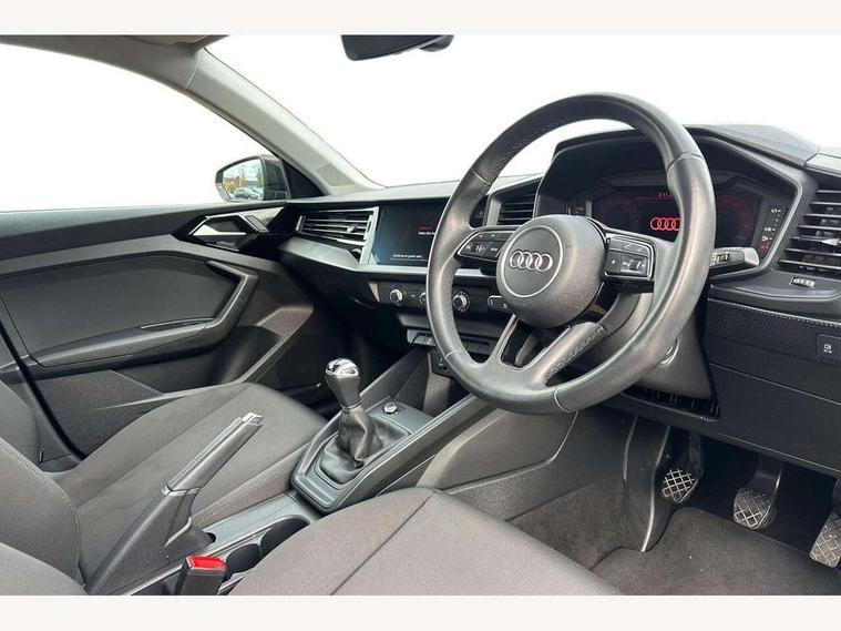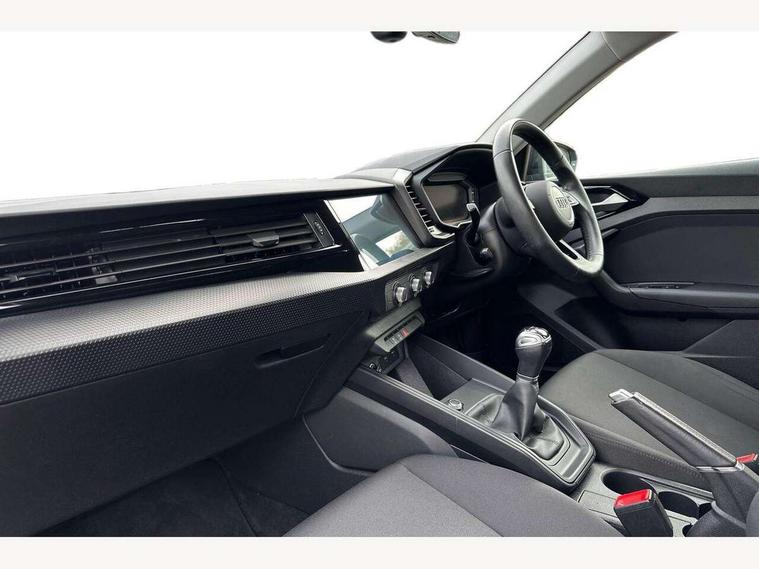 10.25" Digital instrument cluster display classis style instrument dials + speed, odometer, time, outside temperature, telephone menu + fuel level warning, Audi smartphone interface with connect compatible smartphone via USB directly MMI display + Nav, music, third party apps controlled via MMI controller, Automatic start/stop system, Bluetooth interface, Driver's information system, Electromechanical power steering, Emergency e-call, Emergency services call system, Lane departure warning system, Service interval indicator, Speed limiter, Voice control system, Washer fluid level indicator, Dynamic suspension, 1 x SDXC card reader, 2 x USB type C connection points, 6 passive loudspeakers, DAB Digital radio, MMI radio plus with 8.8" colour MMI display screen and MMI touch, Auto dimming rear view mirror, Body coloured bumpers, Body coloured door mirrors, Electric front and rear windows, Electrically adjustable, heated, folding door mirrors with integrated LED side indicator, Front side air inlets with front spoiler lip and rear diffuser in matt black grained, Heat insulating glass windscreen and side windows, Heated rear windscreen, High level LED brake light, LED headlights with LED rear lights + dynamic rear indicators + headlight adjustment and high beam, turning light + LED daytime running lights, Radiator grille in matt black, Rain and light sensors, Rear fog lights, Rear side wing doors, Rear wing door, Rear wiper, 12V socket in centre console with two cup holders, 3 rear seats with headrests, 3 seat bench in 2nd row, 3 spoke leather multifunction plus steering wheel, 40:60 Split folding rear seat or folded fully, Air vents, door handle recesses and centre console in black, Delta cloth upholstery, Driver and passenger seat with manual height adjust with forward and backwards adjustment, Front head restraints, Front passenger seat, Front/rear floor mats, Height and reach adjustable steering wheel, ISOFIX child seat mounting for front passenger and outer rear seats including top tether attachment point of outer rear seats, Leather gear knob with aluminium trim, Leatherette handbrake grip, Luggage compartment light with front and rear reading lights, Manual air conditioning, Titanium grey cloth headlining, Luggage compartment pack - A1, 3x3 point rear seatbelts, Audi pre-sense front with pedestrain and cyclist recognition, Brake assist function, Driver and front passenger airbag with front side and head airbags, Electronic Stability Control including ABS, EBD, ASR and EDL, Front passenger airbag deactivation switch, Hill hold assist, Manual rear child locks, Seatbelt height adjustment for front seats, Seatbelt monitoring, Tyre pressure warning light, Warning triangle and first aid kit, Anti theft alarm, Anti theft wheel bolts and loose wheel warning, Immobiliser, Remote central locking with 2 foldaway keys, Black inlays polygon structure, 15" 5 arm design alloy wheels,