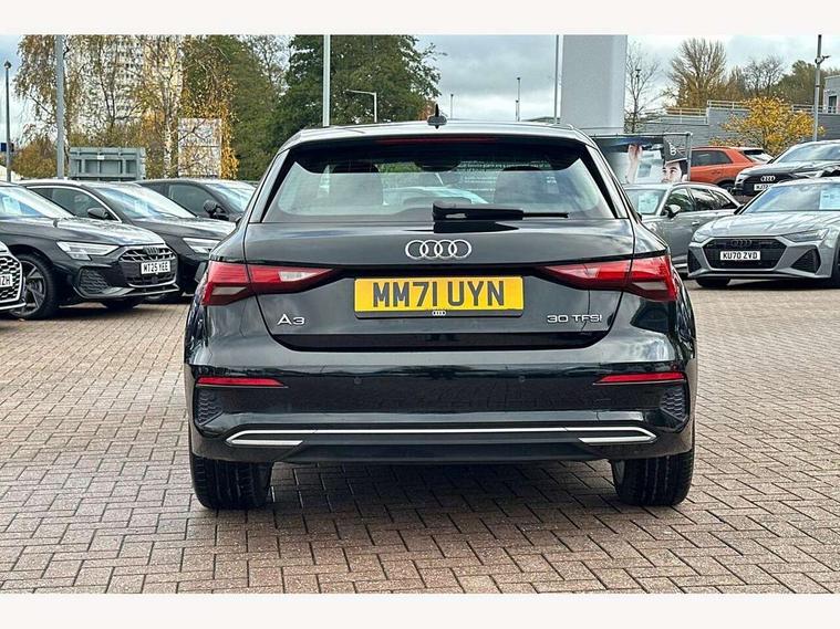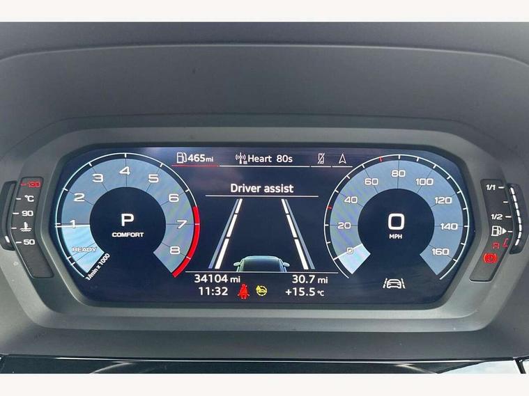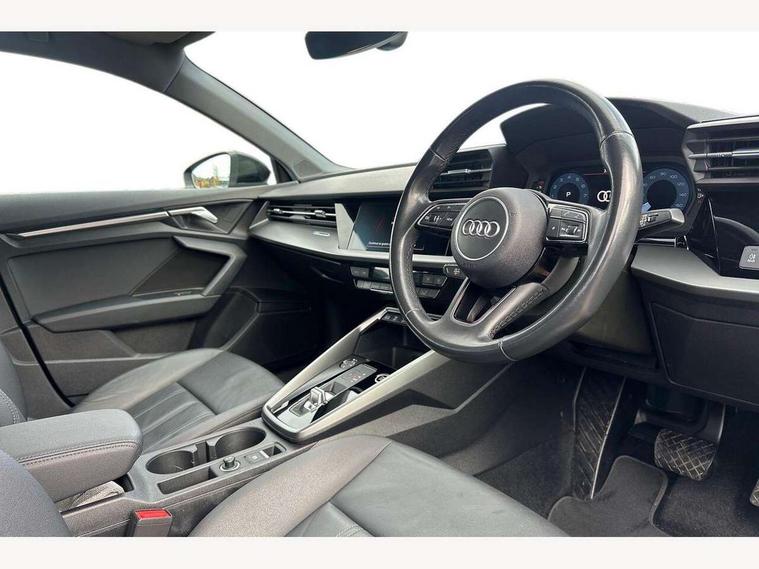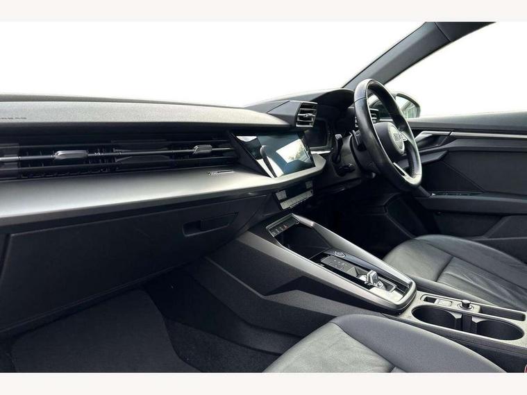 Audi connect emergency call and service, Audi drive select (Auto, Comfort, Dynamic and Individual), Audi smartphone interface, Audi Virtual Cockpit - 10.25" digital and colour instrument cluster, Automatic start/stop system with recuperation, Bluetooth interface, Collision avoidance assistant, Electromechanical power speed sensitive steering, Lane departure warning system, MMI Navigation Plus with high resolution 10.1" colour touch screen display, Service indicator, Trip computer, Voice control system with natural language interaction, Standard suspension, 2xUSB-C connection with data and charging functions, 6 passive loudspeakers, DAB Digital radio, 3rd brake light, Acoustic glass windscreen, Aluminium window trim, Auto dimming frameless rear view mirror, Body colour exterior mirrors, Body colour roof spoiler, Electrically adjustable/heated/folding/dimming door mirrors with kerb view includes integrated LED indications + kerb view function for passenger side, Front electric windows, LED daytime running lights, LED headlights and halogen rear lights, Light and rain sensors, Rear electric windows, Rear window, rear door windows and rear side windows in clear glass, Rear wiper, 12V socket and storage compartment in front centre console, 40/20/40 split folding rear seat bench with cupholder, Dual zone electronic climate control, Front and rear centre armrest, Front and rear headrests, Front door sill trims with aluminium inlay, Front/rear floor mats, Height and reach adjustable steering wheel, Interior lighting - Front and rear roof module including reading lights, glove compartment light and right hand side, Luggage compartment floor covering, Manual boot compartment lid, Manually adjustable front seats, Seat side bolsters, Steel grey cloth headlining, Twin leather upholstery, Aluminium interior elements pack - A3 Sportback, Sport styling pack - A3 Sportback, 3x3 point rear seat belts, Driver and front passenger airbag with passenger airbag deactivation, Electronic Stabilisation Control (ESC) including ABS, ASR and EDL, First aid kit with warning triangle and 2 safety vests, Front side airbags with head airbags and interaction airbag, Hill hold assist, Pre-sense front with pedestrian and cyclist detection, Seatbelt monitoring, Tyre pressure loss indicator, Anti theft alarm, Anti-theft wheel bolts, Electronically operated child lock, Immobiliser, Remote control central locking, Inlays with silk effect paint in platinum grey,