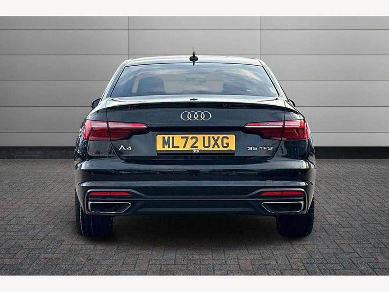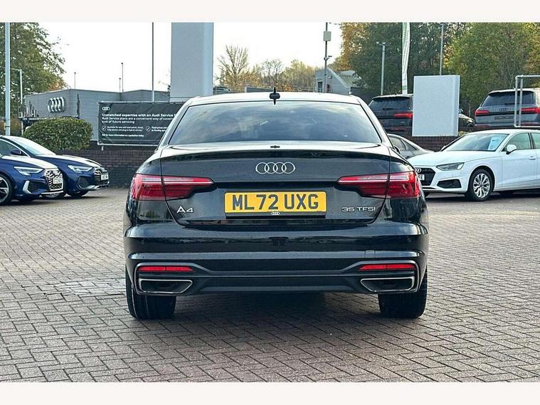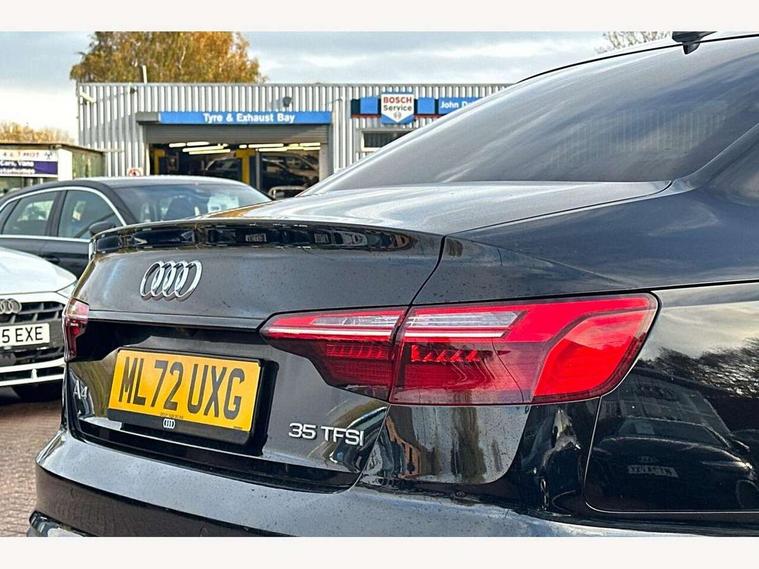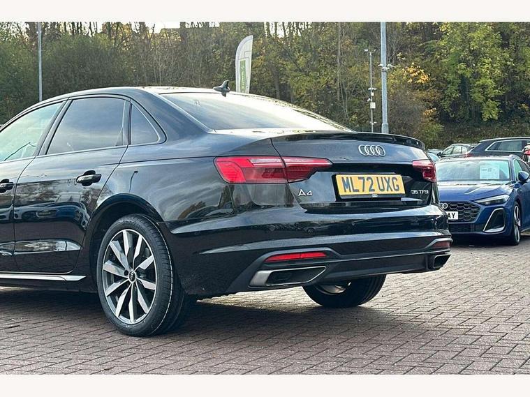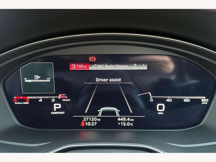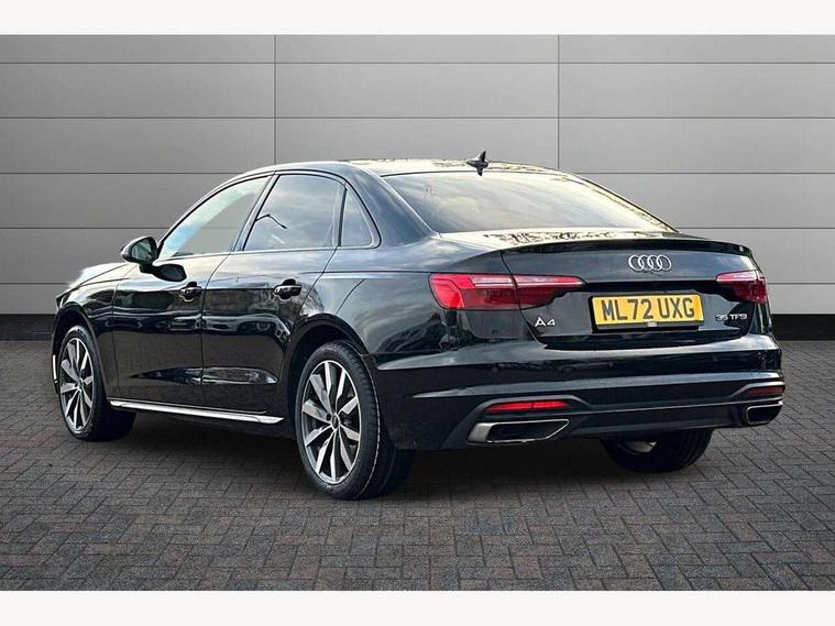Audi connect safety and service (e-call), Audi connect with Amazon Alexa Integration, Audi drive select, Audi smartphone interface, Audi virtual cockpit, Automatic start-stop system with coasting functionality and efficiency programme, Bluetooth interface, Cruise control system with speed limiter, Electric boot lid release, Electromechanical power steering, Email, calendar and text messages displayed via MMI, MMI Navigation plus with MMI touch includes 10.1" high resolution colour MMI display, 3D map, Voice control system, 54 litre fuel tank, Comfort dynamic suspension, 2 USB charging ports, 8 passive loudspeakers, DAB digital radio reception, Auto dimming rear view mirror, Body colour door handles, Body colour side sill trim, Electrically folding auto dimming/adjustable/heated door mirrors with LED side indicators and kerb view function for passenger side, LED headlights and rear lights with LED daytime running lights, LED third brake light, Matt aluminium silver tailpipe trim, Privacy glass, Rain and light sensors, Rear boot, Rear diffuser in matt titanium black with trim strip in matt aluminium silver, Rear side wing doors, Sport front and rear bumpers with side skirts, Variable intermittent front wash/wipe, Windscreen with acoustic glazing, 3 spoke high multi-function leather sport steering wheel with paddle shift and height and reach adjustable, 4 way electric lumbar support for driver and front passenger, 40/20/40 split folding 3 rear seat bench in 3 parts with rear centre armrest, Deluxe 3 zone electronic climate control, Door sill trims with aluminium inlay, Front and rear head restraints, Front centre armrest, Heated front seats, ISOFIX child seat mounting and top tether, Manual seat adjustment, Single front passenger seat, Twin leather upholstery + front sports seats, Black styling pack - A4 Saloon Sport Edition/S4 Black edition/S4 Vorsprung, High gloss package - A4, LED Interior light pack - A4/S4, 3 rear seatbelts, 6 airbags - Driver, front passenger, curtain and side windows, Electronic Stabilisation Control (ESC) including ABS, ASR and EDL, Hill hold assist, Multi collision brake assist, Pop-up bonnet for pedestrian protection, Pre sense city, Rear door child safety locks, Seatbelt monitoring, Warning triangle and first aid kit, Anti theft alarm, Anti theft wheel bolts, Central locking, Keyless Go, Aluminium ellipse silver inlays, 18" 10 spoke dynamic design alloy wheels, Tool kit, Tyre repair kit,