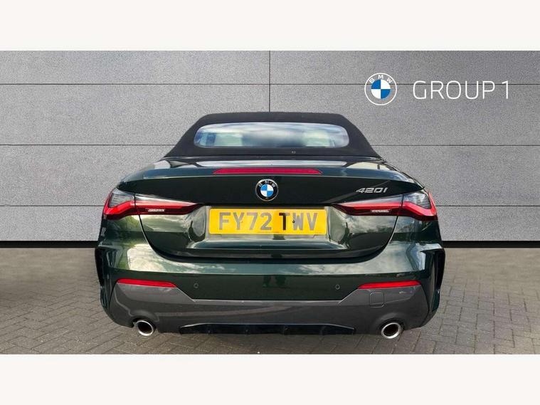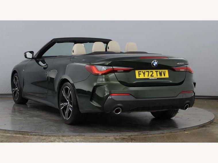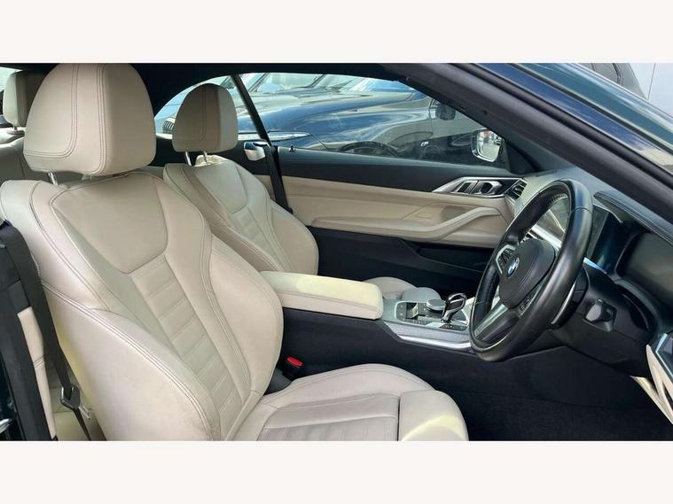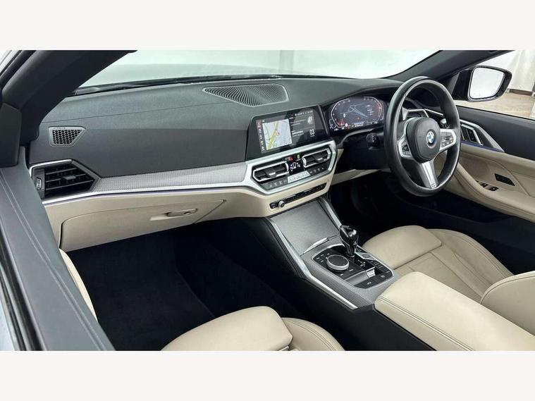 Active guard plus, Attentiveness assist, Auto start-stop, BMW ConnectedDrive online services, BMW iDrive controller on centre console, BMW Live Cockpit Professional Nav with 12.3" instrument display + 10.25" display, Intelligent Voice Assist, BMW OS 7, HDD, 2USB, 4G LTE connect, BMW service history, BMW Teleservices, Brake pad wear indicator in front and rear, Check Control warning system for monitoring of lights and door/luggage compartment open warning, Condition based service, Cruise control with speed limit function, Electric power steering with Servotronic steering optimised at all speed ranges, Gearshift time display in manual mode, Instrument cluster with speedometer with mph readout, tachometer, fuel gauge and oil temperature gauge, Integrated owners handbook, Oil sensor for level and grade, warning by check control system, On board computer - average speed, fuel consumption, outside temp display with acoustic warning, clock/date, service interval, odometer/trip meter, Optimum shift indicator, Run flat indicator, Shifting point display, Variable sport steering, 8 speed automatic steptronic transmission with gearshift paddles, Balanced 50/50 weight distribution, Double joint spring strut front axle, Double VANOS, Drive performance control - ECO PRO, comfort and sport modes, High precision injection, Low centre of gravity, M sport suspension, Petrol Particulate Filter, Stroke dependent dampers, VALVETRONIC engine management, 2x USB Type C ports in front centre console for charging and data transfer, 2x USB Type C ports in rear centre console for charging, DAB tuner, Electronic service booklet, Acoustic glazing, Automatic headlight beam throw control with load dependent regulating reaction, dynamic compensation of braking dive and acceleration squat, Automatic windscreen wipers and automatic headlight, Automatically dimming electrochromatic rear view mirror, BMW emblem on engine compartment lid and tailgate, BMW kidney grille with mesh grille front side of the nuggets in matt aluminium and frame in chrome high gloss, Body colour fuel filler flap, Body colour roof fin, Brushed aluminium inserts in the front door sill finishers with BMW designation, Door sill strips, Dynamic brake lights, Electric windows - front and rear, with open/close fingertip control, anti trap facility and comfort closing function all round, Exterior mirrors - electrically folding with anti-dazzle, Fading support, Follow me home headlights, Front and rear bumper system, Front apron plastic in body colour, Green tinted heat protection glazing, High gloss shadow line exterior trim, Illuminated bow type door handles in body colour drivers side with door lock, Interior rear view electrochromatic mirror with automatic anti dazzle function, LED daytime running lights, LED front fog lights, LED front indicators, Licence plate panel integrated into front bumper and tailgate, Lightweight engineering, M designation on front side panels, left and right, Model designation on right side of tailgate, One piece front bumper cover including towing eye cover in body colour, Preparation for high beam assistant, Rear boot, Reversing light, Side frame decorative moulding black matt, Third brake light, Two part LED tailights in L-shape with components in smoked glass, brake light, LED turn indicator and rear fog light, Visible exhaust tailpipe finisher, Visible VIN plate, Welcome lights in interior and door handle area, Widened track and increased camber values for max transverse dynamics, agility and steering precision, Window recess cover black high gloss, Windscreen wipers with integrated heated washing jets, 12V power socket in front centre console, 2 2nd row folding seats, 2 front cupholder in centre console with clamping elements and matt black inlay, 2 Rear seat headrests, 2nd row centre armrest with built-in cupholders, 3 spoke M sport leather multifunction steering wheel, 3 zone automatic air conditioning, 4 pieces lashing eyelets in luggage compartment, Armrest integrated in front and rear door trim + front centre console armrest, BMW ID, Electric seat adjustment with memory, Four grab handles integrated in roof lining, Front and rear door pockets, Front and rear reading lights, Front sport seats, Heated driver and front passenger seats, Height adjustable front headrests, Height adjustable mechanically and infinitely variable steering column, Illuminated armrest storage compartment, Illuminated glove compartment with separate small compartment, Make-up mirror lights, Single front passenger seat, Storage compartment in rear centre console, Sunvisors with illuminated vanity mirrors and ticket pocket, Through load system, Toolkit located in luggage compartment, Velour front floor mats, Vernasca leather upholstery, Ambient lighting pack - 4 Series, Connected professional pack - 4 Series, M sport exterior styling pack - 4 Series, 2 x 3-point rear seatbelts, Battery safety cut-off, BMW emergency call, Brake energy regeneration, Braking pre-tensioning, Coasting in idle in ECO PRO mode, Cornering brake control (CBC), Crash sensor activating of airbags, Unlocking doors, hazard warning lights, interior light, safety battery terminal, Driver and front passenger side airbags, integrated in the door side seat backrest bolsters for all seat variants, Driver/Front Passenger airbags, Dry braking, Dynamic brake control, Dynamic stability control + (DSC+) - Anti-lock Braking System (ABS) with brake assist and cornering brake control + Automatic Stability Control (ASC), Dynamic Traction Control - DTC, Electric parking brake including automatic hold function and automatic release of the parking brake when driving off, Electronic differential lock control (EDLC), Front and rear ventilated brake disc, Front passenger manual airbag deactivation, Head airbags for all 4 outer seats, Hill start assistant, Seat belt security check for driver and front passenger, Seat belt with belt stopper, pyrotechnic belt tensioners and belt force limiters, Seat 