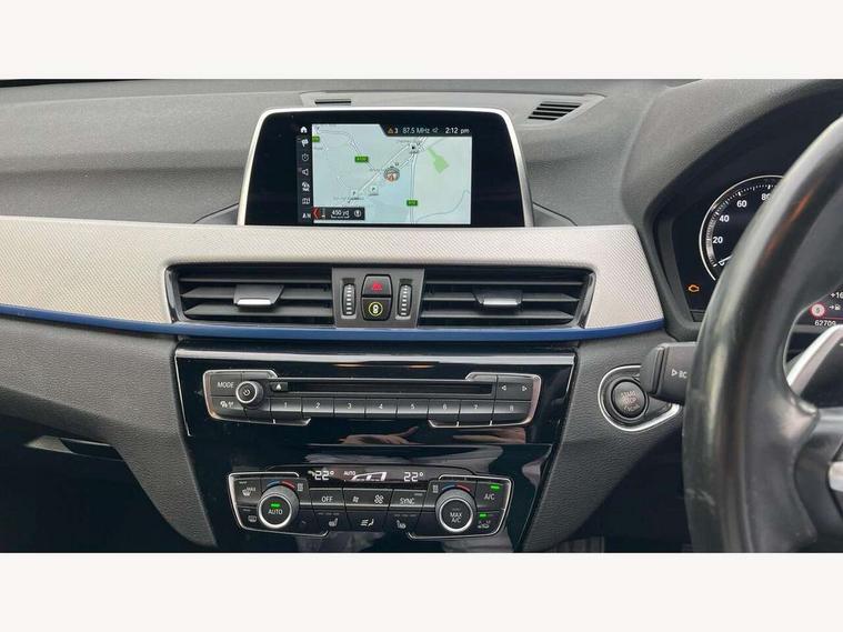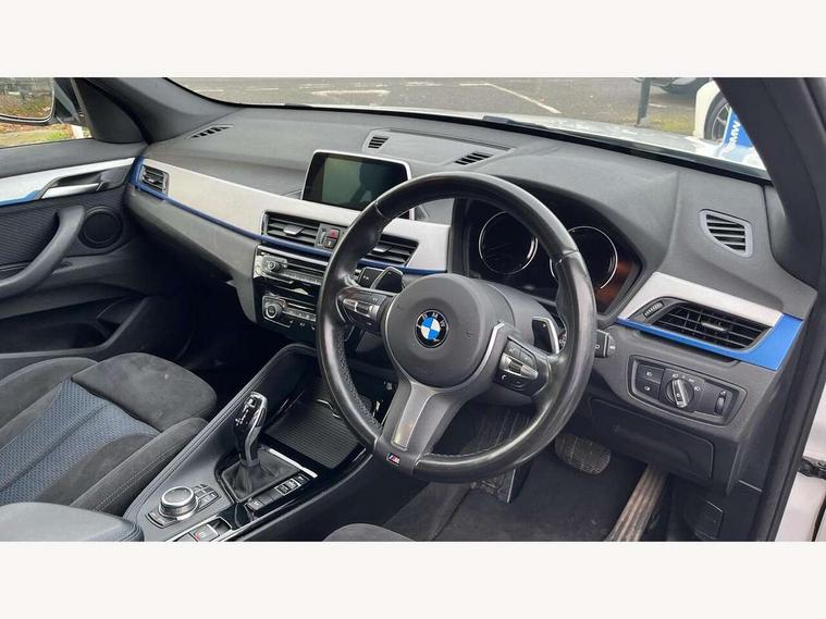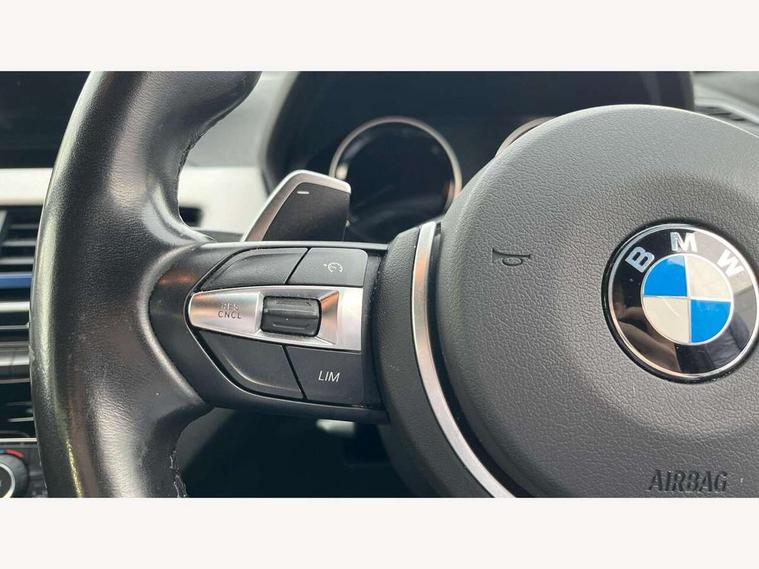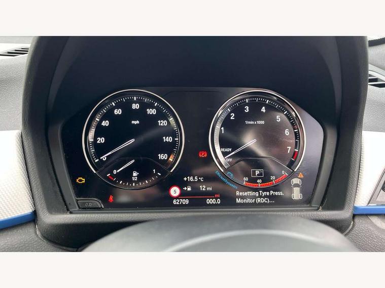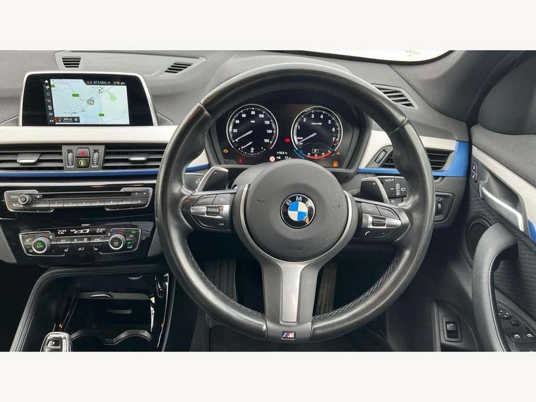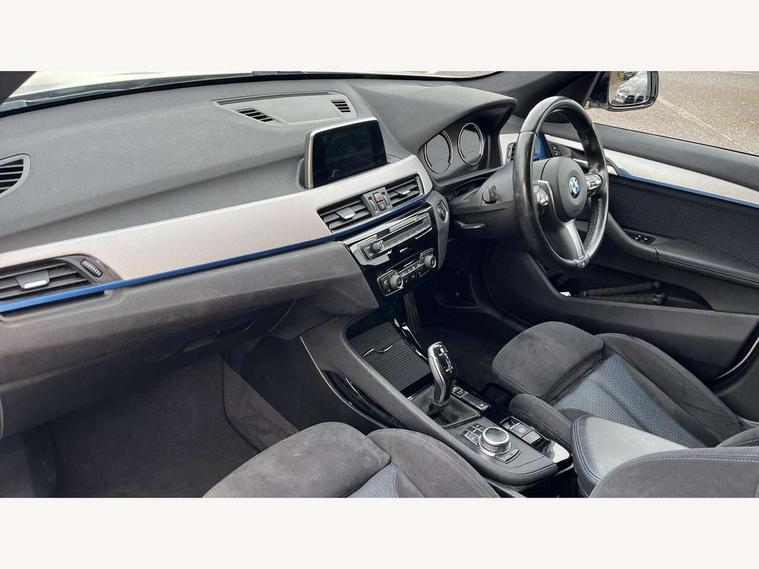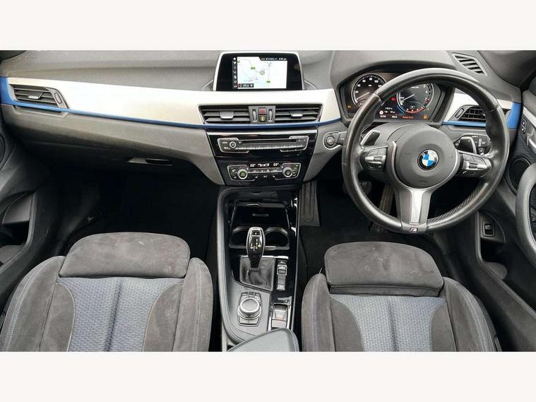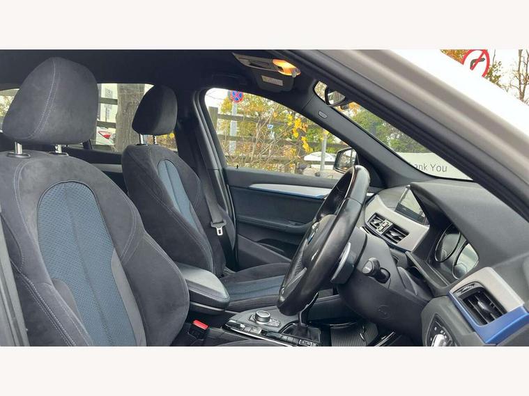 Active Guard incl speed limiting and lane departure functions with auto steering, and front collision warning with brake intervention, Ambient temperature display, Attentiveness assist, Automatic tailgate opening, BMW Online services, BMW remote services, BMW Teleservices, Brake pad wear indicator in front and rear, Instrument cluster with speedometer with miles per hour read out, tachometer and fuel gauge, Lights on warning by audio warning signal when ignition is switched off, On board computer, Outside temperature gauge, Personal Profile - automatic lock when driving away selectable, Real time traffic information, Service interval indicator, Speed limiter, Stop/start button, Tyre puncture warning system, 12V compressor with integrated sealant injection bottle and hose, Electronic differential lock, High precision injection, Performance Control, 2 USB Power socket for rear seat, BMW professional radio with CD player, DAB Digital radio, USB connection located in centre console, USB/audio interface, Adaptive LED Headlights, Adjustable headlights, Body colour bumpers, Body colour door handles, Body colour door mirrors, Clear lenses direction indicator lights, Direction indicator side lights integrated exterior mirrors, Dynamic brake lights, Electrically adjustable and heated door mirrors, Fingertip control / anti-trap function on electric window, Follow me home headlights, Front air inlets with black matt finisher and silver matt highlight, Front and rear electric windows, Front fog lights, Halogen headlights, Headlight beam throw control, Heat insulating tinted glass, Heated windscreen washer jets, High level third brake light, kidney grille with high gloss black vertical slats, LED daytime running lights, Lightweight engineering, M aerodynamic body styling, M door entry sills, M logo designation in side chrome, Rain sensor including auto headlights activation, Rear fog lights, Rear window aerial, Rear window wash/wipe, Reversing light in rear light cluster, Shark fin antenna, Sill cover in silver matt insert, Twin chrome exhaust tailpipes x2, Visible VIN plate, Welcome home function, 12v power point in centre console, 3 rear headrests, 3 spoke sport nappa leather steering wheel, 4 grab handles, Anthracite headlining, Boot light, Centre console with cupholders, Child seat ISOFIX attachment for two outer rear seats and front passenger seat with anchorage points, Driver and front passenger heated seats, Driver/passenger sunvisors with ticket holders, Drivers folding storage compartment, Dual zone automatic air conditioning, Extended storage, Front and rear door armrests, Front centre armrest/sliding cover, Front sports seats, Front/rear adjustable head restraints, Gearshift lever with M designation, Illuminated glovebox, Leather gearknob/gaiter/handbrake grip, LED ambient lighting in door trim, Luggage area underfloor compartment, Luggage compartment lighting, Luggage compartment loading edge with stainless steel insert, Multifunction steering wheel, Rake/reach adjustable steering wheel, Rear coded belt buckles, Sliding/split/reclining 40/20/40 rear seat with 60/40 split rear seat base, Steering wheel gearshift paddles, Velour floor carpets, Extended storage package - X1, 3 rear 3 point seatbelts, ABS/EBD, Audio/visual collision warning system, Automatic Stability Control (ASC), Battery safety cut-off, BMW emergency call, Brake drying, Brake energy regeneration, Braking readiness, Collision mitigation braking system, Cornering brake control (CBC), Crash Sensor - activates hazard/interior lighting + unlocks doors, Driver/Front Passenger airbags, Driver/front passenger side airbags, Dynamic brake control, Dynamic stability control + (DSC+), Dynamic Traction Control - DTC, Electronic parking brake, Front and rear head airbags, Front passenger airbag deactivation, Front seatbelt force limiters, Front ventilated disc brakes, Hill start assist, Pyrotechnically pre-tensioned front seatbelts, Rear disc brakes, Rear door child safety locks, Seatbelt warning, Side impact protection, Twin horns, Tyre pressure monitor, Warning triangle and first aid kit, Auto door lock when driving, Central locking including boot and fuel flap with deadlocks, Engine immobiliser, Locking wheel nuts, Remote control Thatcham category 1 alarm, Remote control with integrated key with M specific highlight, High gloss black centre console, Low rolling resistance tyres,