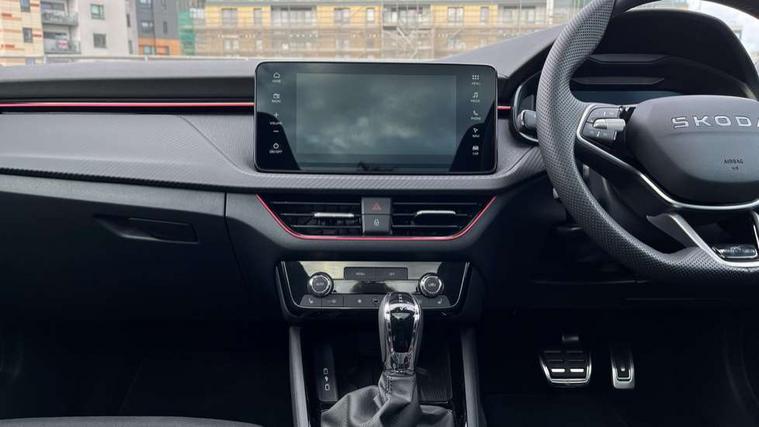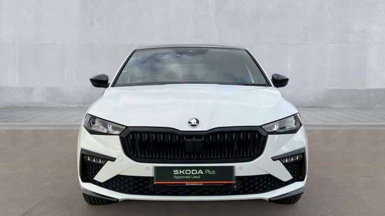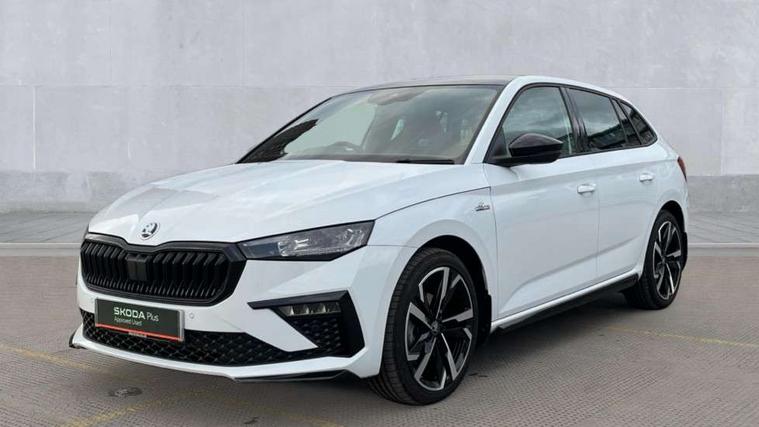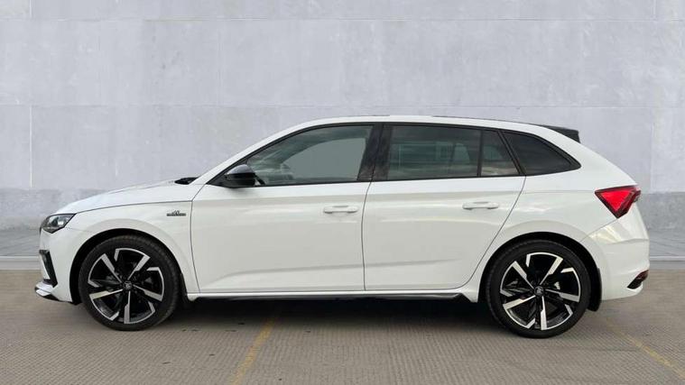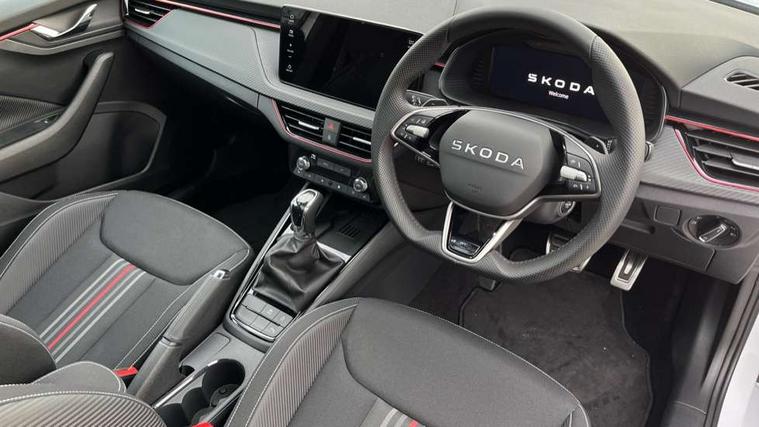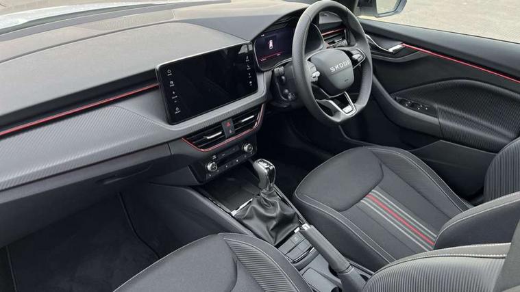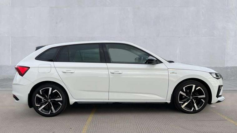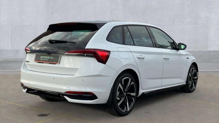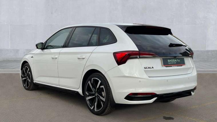 Advanced driver attention and drowsiness monitor, Bluetooth, e-Call (emergency call), Front assist system, PAS, Rear parking sensors, Rear view camera, Speed limiter, Tailgate, Traffic sign recognition, Virtual Cockpit - 10.25" digital display, Voice control system, Wireless smartlink, 4 USB C ports, 8 Speakers, 9.2" Skoda navigation display, DAB radio, Auto dimming rear view mirror, Automatic headlamp activation with Coming home and Leaving home feature, Automatic high/low beam, Automatic intermittent wipers, Black door mirrors, Black lettering on boot lid, Black radiator grille, Black rear diffuser, Black roof spoiler, Body colour bumpers, Body colour door handles, Chrome moulding around grille, Extended tailgate glass, Front and rear electric windows, Heated rear window, LED 3rd brake light, LED brake lights, LED daytime running lights, LED high beam, LED low beam, Light sensors, Monte carlo plaque, Panoramic glass roof, Privacy glass, Rear LED fog light, Rear side wing doors, Rear wiper, Tinted windows, Unique dark chrome design logo on alloy wheels, 12V socket in luggage compartment, 3 seat bench in 2nd row, Aluminium pedals, Ambient lighting in white/red, Black / White armrest stitching, Black ceiling, Black roof headlining, Cargo elements, Chrome inner door handles, Door inserts in art.leather carbon, Driver and passenger sun visors with vanity mirror, Dual zone climate control, Front and rear roof lights, Front centre armrest, Front head restraints, Height adjustable driver seat, Height adjustable passenger seat, Ice scraper, Illuminated glove compartment, Inner circulation control with pollen filter, ISOFIX for front passenger seat, Isofix preparation for back seats, Leather gearknob and handbrake lever, Luggage net under rear parcel shelf, Manual lumbar support for front seats, Monte Carlo cloth upholstery, Net package and top tether hooks in boot space, Pocket on the back of both front seats, incl. mobile phone pockets, Rear centre armrest, Red hotstamping, Single front passenger seat, Skoda lettering on steering wheel, Sport seats, Textile floor mats, Third rear headrest, Ticket holder, Top tether for front passenger seat, Umbrella in driver's door, Light and view plus pack - Scala, 3x3 point rear seatbelts, ABS, Child locks, Curtain airbags and front side airbags, Disc brakes, Driver and front passenger airbags, ESP, Hill hold control, Manual leather parking brake, One tone horn, Passenger airbag switch off function, Seatbelt reminder for driver and front passenger, Tyre pressure monitoring system, Anti theft alarm system with interior monitoring, backup horn and towing protection, Anti-theft wheel bolts, Remote central locking with 2 remote folding keys, SAFE function for remote central locking, Carbon effect decorative inserts, 18" Ursa black diamond cut alloy wheels,