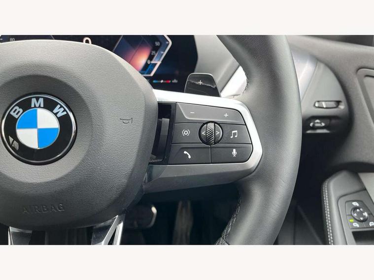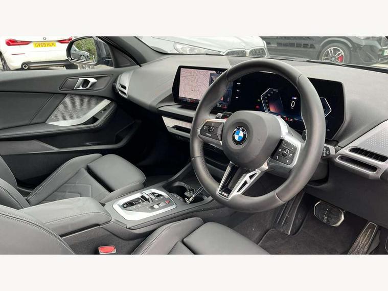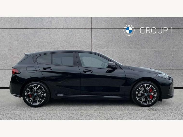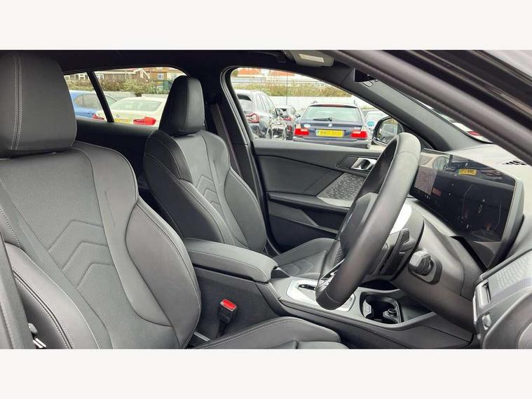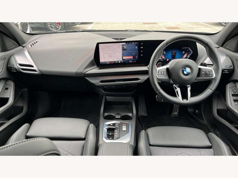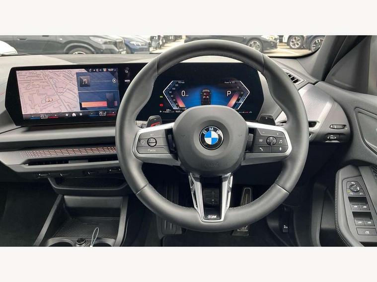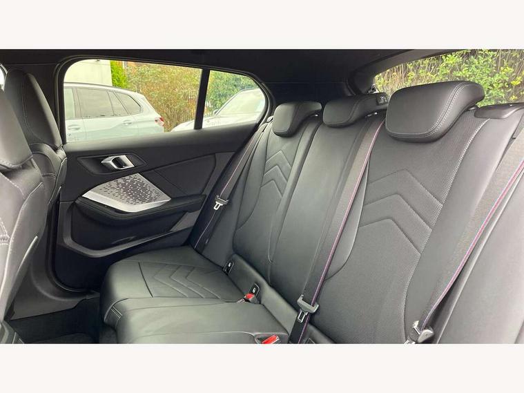 Active guard plus, Attentiveness assist, Bluetooth / WiFi interface for wireless connection of mobile terminal devices and audio streaming, BMW ConnectedDrive online services, BMW Live cockpit plus, BMW Teleservices, Check Control warning system for monitoring of lights and door/luggage compartment open warning, Eco pro mode, Electric power steering with Servotronic steering optimised at all speed ranges, Evasion assistant, Flat airvents in instrument panel with adjustable slats, Front and rear parking sensors, Front axle single joint with specific axle kinematics to minimise drive influences on steering + provide increased rigidity agile driving behaviour, Gearshift time display in manual mode, Integrated owners handbook, Left turn warning with brake function, My modes (Personal / Efficient / Sport), Oil sensor for level and grade, On board computer, Optimum shift indicator, Park assist including reversing assistant, lateral parking aid and reversing assist camera, Personal e-SIM, Personal Profile, Pull away assistant, Rigidly mounted rear subframe - Multi link construction with separate spring / damper configuration and excellent driving characteristics, Speed limit Info including no-overtaking indicator, Speed limiter, 49 litre fuel tank, Aluminium lightweight construction, Anti roll bar front and rear, Balancer shaft, Double VANOS twin scroll turbocharging system, Drive Performance Control, Electronic differential lock, Electronic selector lever, High precision injection, M Adaptive suspension, Petrol Particulate Filter, Steptronic transmission with double clutch, Twin tube gas filled shock absorbers with degressive characteristic curve, VALVETRONIC engine management, DAB Digital radio, Auto dimming rear view mirror, Automatic windscreen wipers and automatic headlight, Body colour door handles, Body colour roof trims, Chrome 'M' logo side designation, Chrome exhaust twin tailpipes round 90mm in left, Chrome kidney grille frame with Satin Aluminium struts, Direction indicator side lights in exterior mirrors, Electrically adjustable exterior mirror with mirror adjustment switch on drivers armrest and aspheric on driver side, convex on passenger side, Exterior M sport design elements, Fading support, Folding side mirrors with auto dimming/folding wing mirrors with auto dimming, Follow me home headlights, Front and rear bumper system with replaceable deformation elements, Front and rear electric windows with open and close fingertip control, anti trap facility and comfort closing, Front bumper panel with M specific design in vehicle colour with inserts in black high gloss, Front door sill finishers in black plastic with M designation in metallic look, Green tinted heat protection glazing, Heated rear window, High gloss black exterior mirrors, High gloss shadowline window frame, Recess cover mirror frames and B/C pillar embelisher trim, High level third brake light, Integrated front windscreen with washer jets, LED daytime running lights, LED eyebrow turn indicators, LED front fog lights, LED Headlights, Lightweight engineering, Matt black air guide grilles, Matt black wheel arch trim, Model badge on tailgate right, Nearside reverse light in rear light cluster, Preparation for high beam assistant, Rain sensor, Rear bumper panel with M-specific design in vehicle colour with inserts in black high gloss, Rear fog lights, Rear side wing doors, Rear window wiper, Shark fin antenna, Side sill covers with M specific design in body colour, Trailer stabilisation logic, Visible VIN plate, Welcome lighting, 12V power socket in front centre console with blanking plug, 3 rear seat head restraints, 3 seat bench in 2nd row, 3 spoke sports leather steering wheel with black leather and stitching, pearl chrome decorative finish, specific M Badge, Anthracite front and rear floor mats, Anthracite headlining, Black boot net with lashing eyes, Cargo function on 2nd seat row, Child seat ISOFIX attachment for two outer rear seats and front passenger seat with anchorage points, Conditioned based service, Driver and front passenger backrest net on rear, Driver and front passenger seat heating, Driver side folding compartment in instrument panel, Folding rear clothes hook, Footrest and pedals in black plastic, Four grab handles integrated in roof lining, Front and rear door pockets with bottle holders, Front and rear side armrest integrated into door trim, Front armrest with storage compartment, Gearshift paddles on steering wheel, Glove compartment, Height adjustable front head restraints, Luggage compartment for bag hooks on left and right, foldable luggage compartment liner and four lashing eyelets, Manual adjust steering wheel, Multi-function controls for steering wheel, Rear seat backrest with manual 60:40 split folding with 3 top tether clips integrated on rear of seat panels, Single front passenger seat, Storage compartment in centre console, Storage compartment in luggage compartment, Stowage of the parcel shelf in luggage compartment trim, Sun visors with vanity mirrors and insert tab, Two front centre console cupholders, Type C two USB ports in rear centre console, Upper retaining strap integrated into backrest rear panels, Connected pack professional - 1 Series, Interior lights pack - 1 Series, M Sport exterior styling aerodynamics pack - 1 Series, 2 tone horn, 3 point seatbelts on all seats, front pyrotechnic belt tensioners, stopper and belt force limiters, rear coded belt buckles, Airbags - Front driver/passenger, front and rear curtain head protection, front side, manual deactivation of front passenger airbag, Anti lock braking system (ABS) with brake assist, BMW emergency call, Brake drying, Braking readiness, Child proof locking system in rear door, Comfort modes, Cornering brake control, Crash sensor activating of airbags, Unlocking doors, hazard warning lights, interior light, safety battery terminal, Driver and front passenger seat belt security check, Dynamic stability control + (DSC+), Dynamic