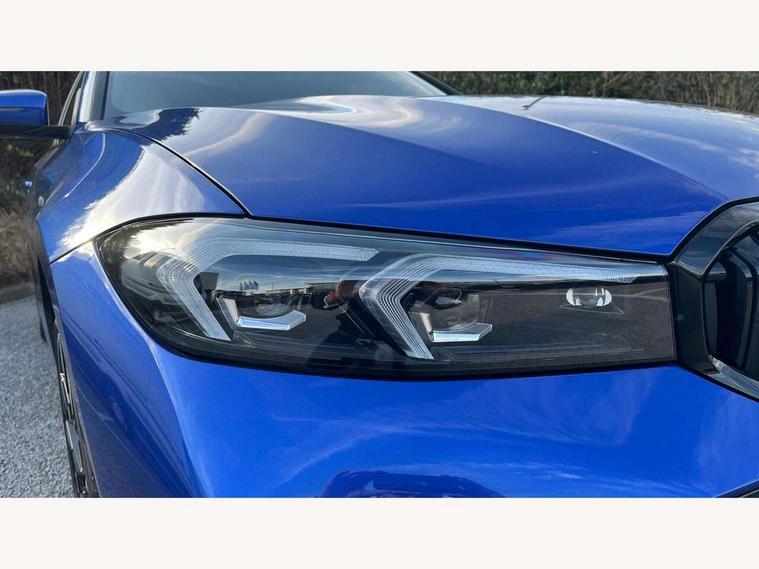 Active guard plus, Attentiveness assist, Automatic Start/stop button, Bluetooth Wi-Fi interface, BMW iDrive, BMW Teleservices, ConnectedDrive Services - last state call, Intelligent voice assist, 2 USB, 4G LTE connect, Live cockpit plus with Navigation + 12.3" instrument display + 14.9" display, Intelligent voice assist, 2 USB, 4G LTE connect, Oil sensor for level and grade, Personal e-SIM, Shifting point display, Double joint spring strut front axle, Fuel tank breather system, Plug and charge, Public mode 3 professional fast charging cable with 5m length, Steptronic Sport automatic transmission with steering wheel mounted gearshift paddles launch control and xtreme drive lever control, DAB tuner, 3rd brake light, Auto dimming rear view mirror, Automatic headlight beam throw control with load dependent regulating reaction, dynamic compensation of braking dive and acceleration squat, Bi-LED Low and high beam headlights, BMW emblem, engine compartment lid and tailgate, Body colour roof fin, Door sill strips, Electric windows - front and rear, with open/close fingertip control, anti-trap facility and comfort closing, Fading support, Follow me home headlight function, Front and rear bumper system with replaceable deformation elements, Front apron plastic in body colour, Fuel filler flap - right rear in body colour, Heat protection glazing on front windows and windscreen, High gloss chrome kidney frame with high gloss black kidney struts, LED daytime running lights, LED rear lights, LED turn indicator, Licence plate panel integrated into front bumper and tailgate, M high gloss shadow line exterior trim, Matt black B-pillar finsher, Matt black window recess cover, Model designation on right side of tailgate, One piece front bumper cover including towing eye cover in body colour, Rain sensor with automatic headlight activation, Rear boot, Rear side wing doors, Reversing lights, Side frame decorative moulding black matt, Trailer stabilisation logic, Visible exhaust tailpipe finisher, Welcome lights in interior and door handle area, Windscreen washer jets, 12V power socket in front storage compartment, 2 front cupholder in centre console with clamping elements and matt black inlay, 3 seat bench in 2nd row, 3 spoke M Sport multifunction flat bottom leather steering wheel, 3 zone automatic air conditioning, 40:20:40 split folding rear seat with loading system, Anthracite headlining, Armrest integrated in front and rear door trim + front centre console armrest, Battery in luggage compartment, BMW ID, Cruise control operation in steering wheel, Driving experience mode switch, Folding rear centre armrest with 2 cupholders, Front and rear headrests, Front and rear velour floor mats, Front reading light, Heated front seats, Height adjustable mechanically and infinitely variable steering column, Illuminated armrest storage compartment, Illuminated glove compartment, Illuminated luggage compartment, Lashing eyelets in luggage compartment, Single front passenger seat, Sunvisors with illuminated vanity mirrors and ticket pocket, Through load system, Toolkit located in luggage compartment, Connected pack professional - 3 Series Saloon/Touring, Interior and exterior mirror pack - 3 Series Touring/Saloon, M sport exterior styling pack - 3 Series Saloon/Touring, Parking assistant pack - 3 Series, 3x3 point rear seatbelts, ABS, Automatic Stability Control (ASC), BMW emergency call, Child locks on rear doors, Cornering brake control, Crash sensor activating of airbags, Unlocking doors, hazard warning lights, interior light, safety battery terminal, Drive-off assistant, Driver and front passenger with seat occupancy detection for driver's and passenger side, Driver and passenger side airbags, body protection at side and airbags deploy from seat backrests, Dry braking, DSC - Dynamic Stability Control, Dynamic brake control, Dynamic Traction Control - DTC, Electric parking brake including automatic hold function and automatic release of the parking brake when driving off, Electronic differential lock control (EDLC), Front airbag deactivation, Front airbags for driver and front passenger, Head airbags in 1st and 2nd row, head protection at side, curtain airbags open from headliner above 1st and 2nd row, Plastic fuel tank, Side impact protection, Tyre pressure sensors, Ventilated front and rear disc brakes, Warning triangle and first aid kit, Alarm system, Centre lock switch, Closing system with central locking, Electronic vehicle immobiliser, Locking wheel bolts, Tyre repair kit,