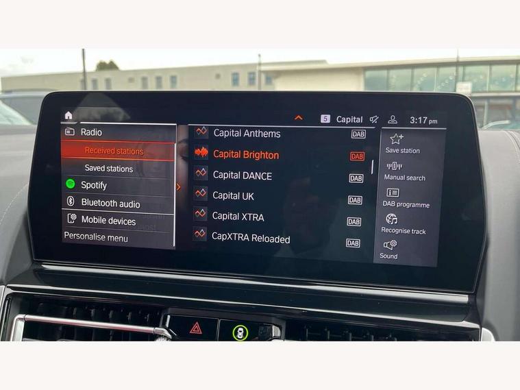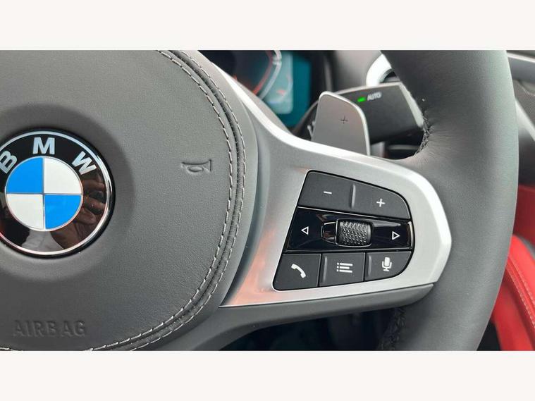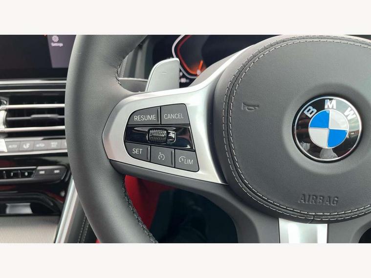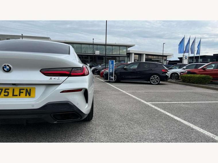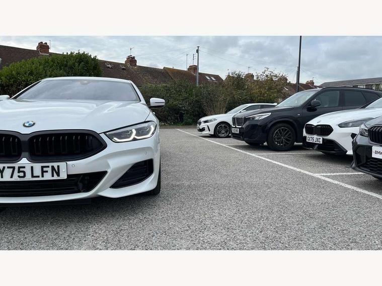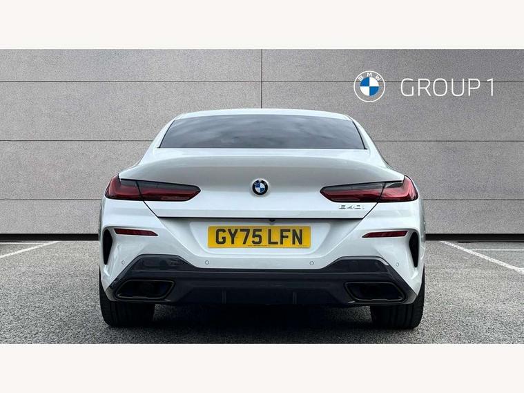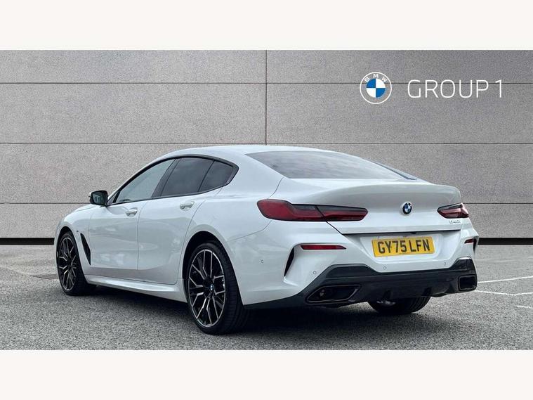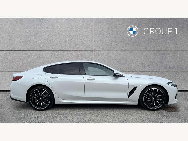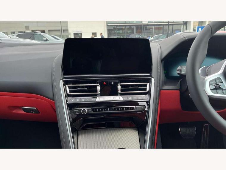 Automatic tailgate operation, remote opening with key, closing by tailgate button or remote control including tailgate in LED technology, Bluetooth hands free facility with USB audio interface, voice control and enhanced bluetooth + Wireless charging, BMW ConnectedDrive online services, BMW legal emergency call, BMW Live cockpit professional with 12.3" instrument display, BMW Teleservices, Brake pad wear indicator, Check control system, Condition based service, Drive experience control with Sport, Comfort, Eco Pro and Adaptive modes, Electric bootlid, Engine start/stop button, Head up Display, iDrive controller with shortcut buttons, Integrated owners handbook, Light on warning, Oil sensor for level and grade, On board computer, Outside temperature display, Service interval indicator, Servotronic system, Wi-Fi hotspot, Adaptive M suspension, Double wishbone front axle, Dynamic Damper Control, Eight speed sport automatic transmission, M Sport differential, Petrol Particulate Filter, Sport exhaust system, DAB Digital radio, Favourite buttons, Automatic windscreen wipers and automatic headlight, Carbon core, Climate comfort windscreen, Daytime driving lights front and rear active, Dynamic brake lights, Exterior mirrors - Floating design mirror, electric adjust/heated/folding, aspherical, Follow me home headlight function, Frameless interior mirror, Front and rear bumper system with replaceable deformation elements, Front electric windows, Front ornamental grille with kidney grille bars, Heat protection, sun protection glazing, Heated rear window, glass, Heated windscreen washer jets, High beam assistant, Illuminated door handles, Illuminated radiator grille iconic glow, LED rear lights, Model logo - right tailgate in chrome, M emblem on side panel in light chrome, badge on bonnet and tailgate, Rain sensor and automatic driving lights control, Rear boot, Rear side wing doors, Side window graphic in black high gloss, Sun protection glass, Thermally insulated windscreen, Third LED technology brake light in rear window, Welcome lights in interior and door handle area, 1 x 12V power socket in front centre console, 2 cup holders in front, 2 rear head restraints, 3 spoke M sport leather multifunction steering wheel with shift paddle, 4 zone control automatic air conditioning, 5 seats, 50/50 split folding rear seat, Ambient light with dynamic interior light, BMW ID, Front and rear seat heating, Front door pockets, Front entry lights doors, Front reading lights, Front sun visors with ticket holder and illuminated mirror, Interior lighting - Interior light front centre above interior mirror, luggage compartment light, automatic interior light system soft on/soft off, Lashing eyelets, Lockable glove compartment with light, Microfilter and active carbon filter, Steering column with adjustable height and length and activation via control on the steering column, Storage compartment under front centre armrest with light, 1 x 12V power socket and USB, Through loading function, Connected professional pack - 8 Series, M sport exterior styling aerodynamics pack - 8 Series, 3x3 point rear seatbelts, ABS/EBD, Active protection, Airbags - Driver and front passenger airbag with seat occupancy detection, knee, side and front passenger seat airbag deactivation, Brake discs, compound structure, Child locks on rear doors, Cornering brake control (CBC), Crash sensor activating central locking release, hazard warning lights, fuel cut off, interior lighting, safety battery terminal clamp and airbags, DSC - Dynamic Stability Control, Dynamic brake control, Dynamic Traction Control - DTC, Electromechanical parking brake with automatic drive away release and auto hold function, Front three point with pyrotechnical belt latch tensioner seat belts, belt force limiter and belt stopper, Head airbags for 1st and 2nd seat row, Hill start assist, Integrated brake system, ISOFIX child seat mounting for the two outer rear seats, Rear three point with pyrotechnical belt latch tensioner seat belts and belt force limiter, Side impact protection, Tyre pressure monitoring system (TPMS), Warning triangle and first aid kit, Alarm system (Thatcham 1) with electronic engine immobiliser, Centre lock switch, Closing system with central locking, Comfort access system, Locking wheel bolts, Vehicle key with exclusive M designation, Instrument and upper door panel in black walknappa leather with contrast stitching,