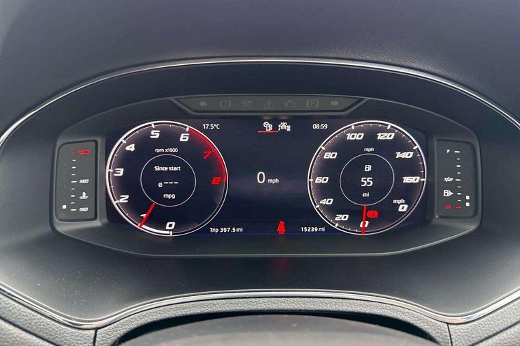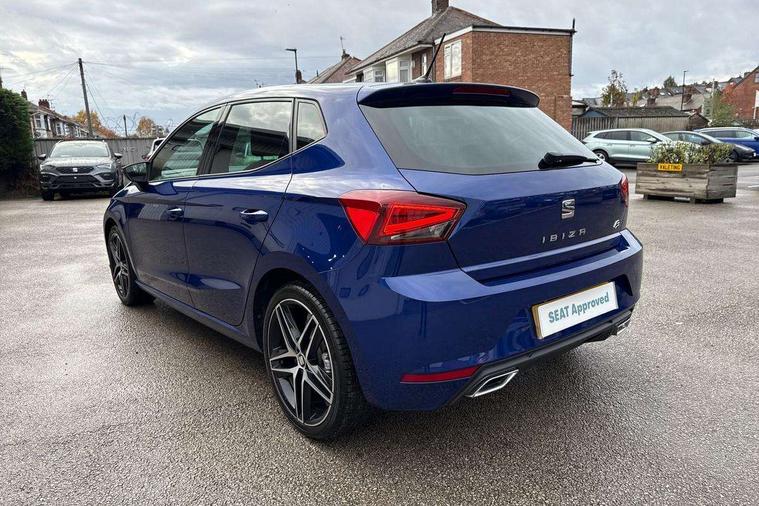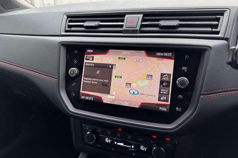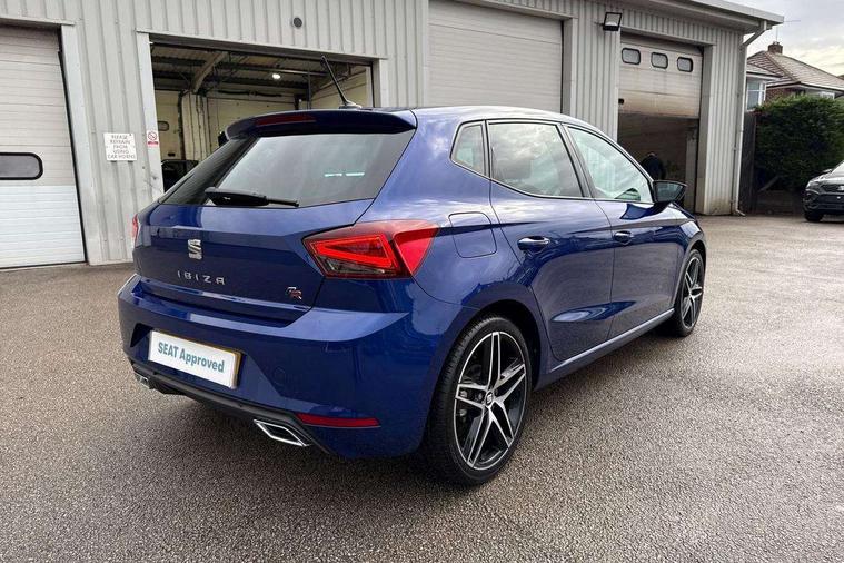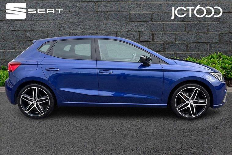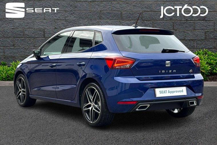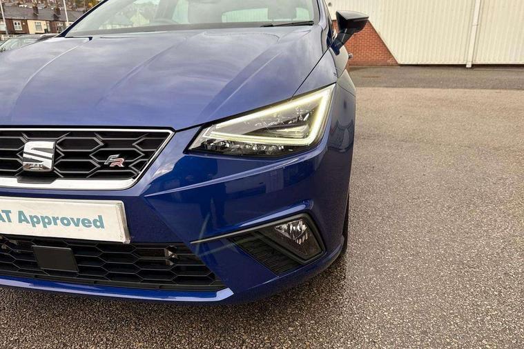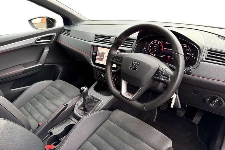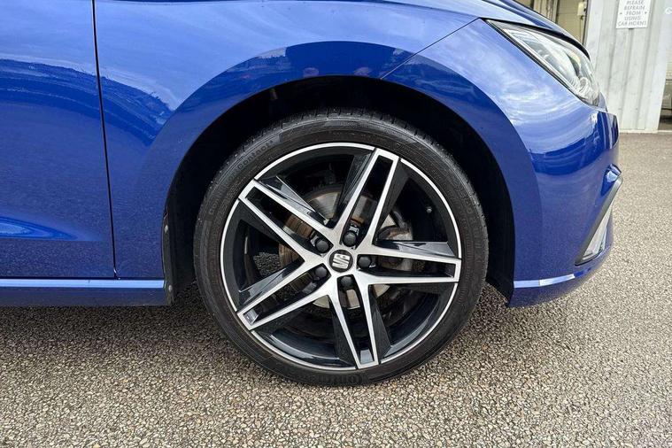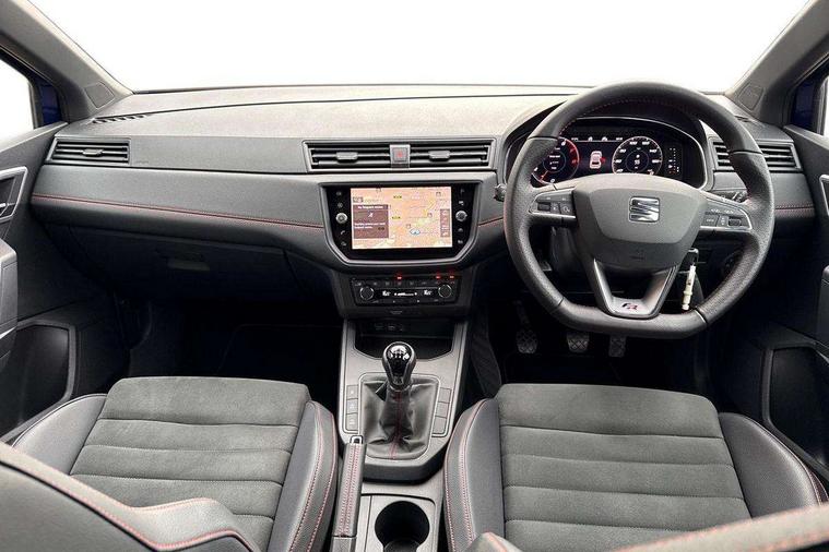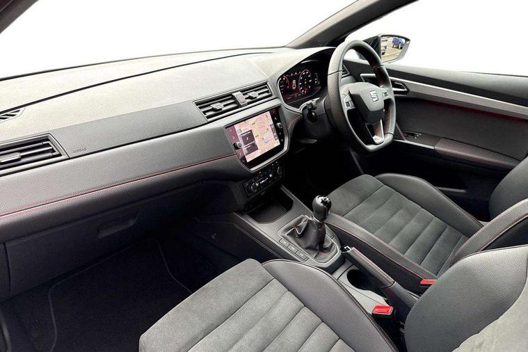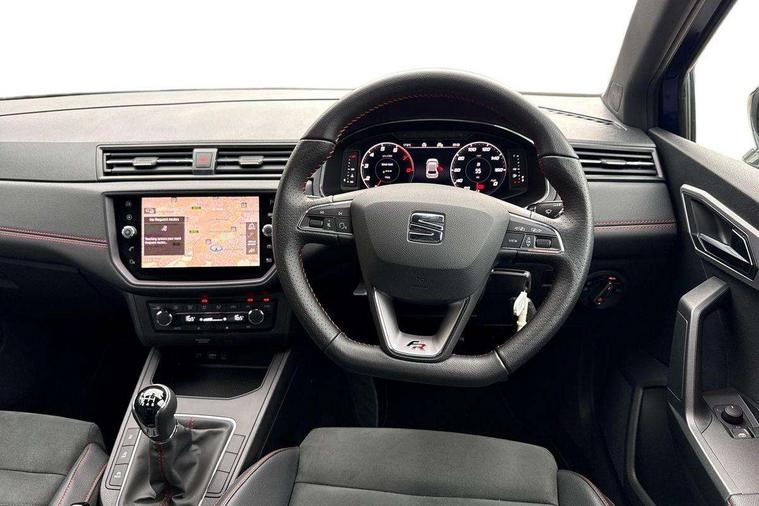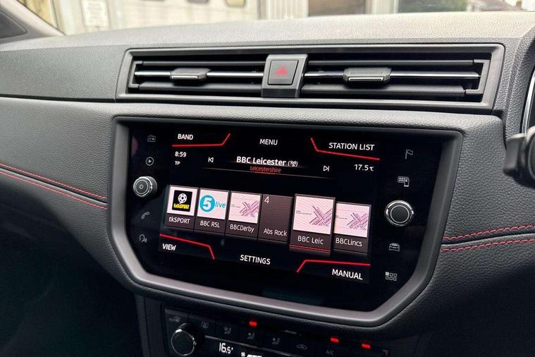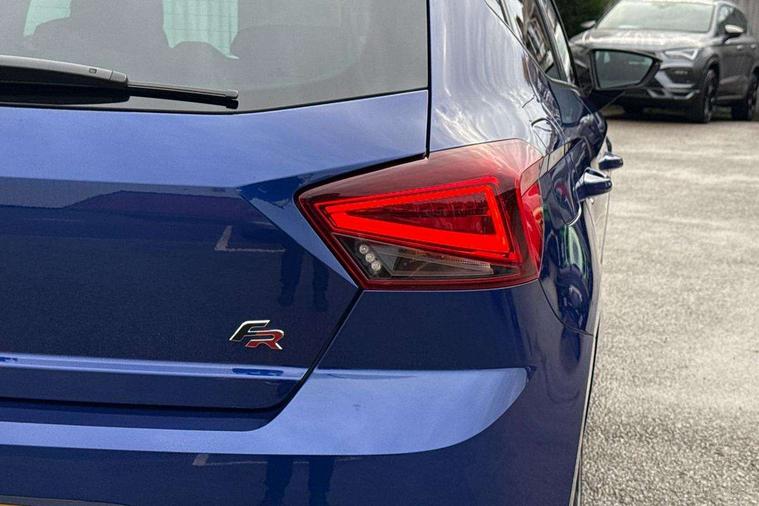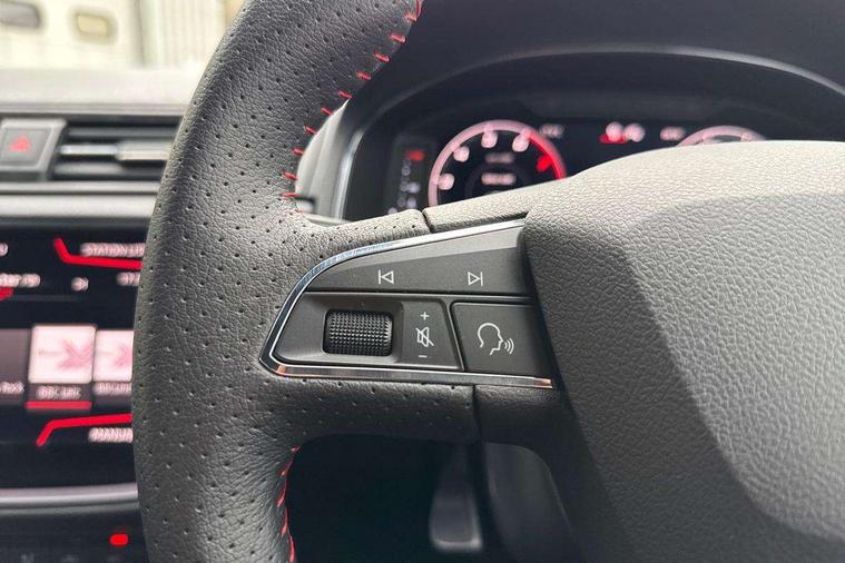 'Lights On' Reminder warning buzzer, Bluetooth Handsfree Phone Connection, Cruise control, Digital clock, Digital cockpit, Full Link Smartphone Integration with Mirror Link, Apple Car Play, Google Android Auto, Low fuel warning light, Outside temperature gauge, Power Steering, Satellite navigation system with 3D mapping, 8" touch screen, voice control and additional USB port, SEAT Drive profile, SEAT logo boot release, Trip computer, Sports suspension, 6 speakers, Auxiliary input socket, CD player, Digital Audio Broadcast (DAB) Tuner, Radio/MP3 player, SD card slot, SEAT USB media cable, Steering wheel mounted controls, USB port, Anti theft roof antenna, Auto dimming rear view mirror, Automatic headlights, Automatic rain sensing wipers, Body colour bumpers, Body colour door handles, Brilliant black door mirrors, Chrome front grille frame, Chrome grille, Coming/leaving home lighting function, Cornering front fog lights, Dark tinted rear windows, Electric folding door mirrors, Electric front windows, Electric headlight adjustment, Electrically adjustable and heated door mirrors, Exclusive FR rear bumper, Full LED headlights, LED daytime running lights, LED tail lights, Rear fog lights, Twin exhaust pipes, 3 rear headrests, 60/40 split folding rear seat, Door and steering wheel ice metal decorative inserts, Driver's sunvisor with ticket holder/vanity mirror, Dual zone climate control, Dust/pollen filter, Flat bottomed perforated leather steering wheel with red stitching and FR logo, Front courtesy lights, Front cupholders x 2, Front reading lights, Gear shift indicator, Glovebox, Height adjustable driver's seat, Height adjustable front/rear head restraints, Height adjustable passenger seat, Height/reach adjust steering wheel, Illuminated boot, Instrument lighting with brightness control, Leather dashboard, Leather handbrake, Microsuede cloth upholstery, Multi-colour ambient interior lighting, Passenger sunvisor, Rear top tether child seat ISOFIX attachment, Sports seats, Full LED headlight pack - Ibiza, 3 point seatbelts on all 3 rear seats, ABS, Active front headrests, Child locks on rear doors, Curtain airbags, Driver/Front Passenger airbags, ESP+EBA, Front assist (AEB), Front passenger airbag deactivation, Front side airbags, Hill hold control, Multi-Collision braking, Rear disc brakes, Seatbelt warning, Tiredness recognition system, Tyre pressure monitoring system, Electronic engine immobiliser, Locking wheel bolts, Remote central locking + deadlocks, Volumetric alarm with back up horn, 18" Performance machined bi-colour alloy wheels,