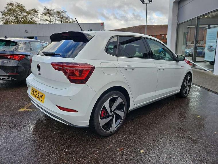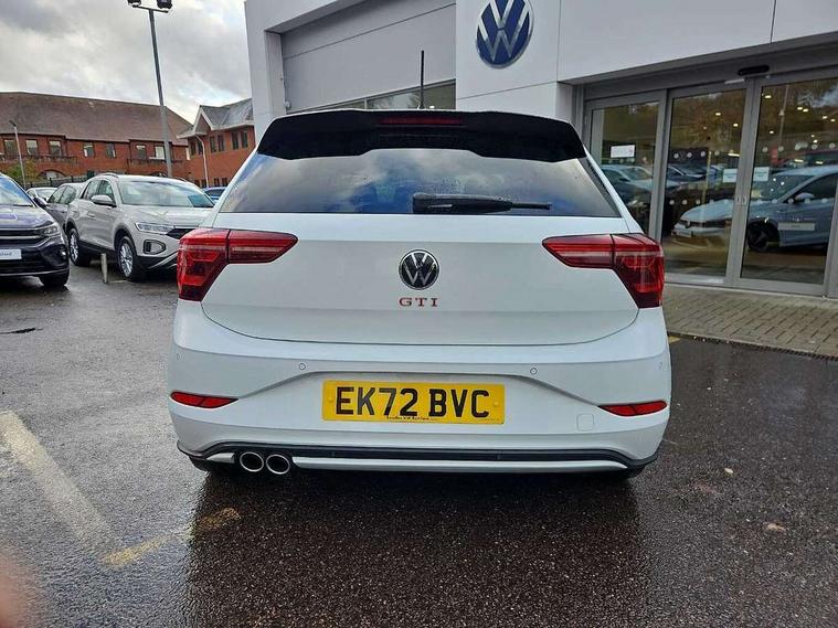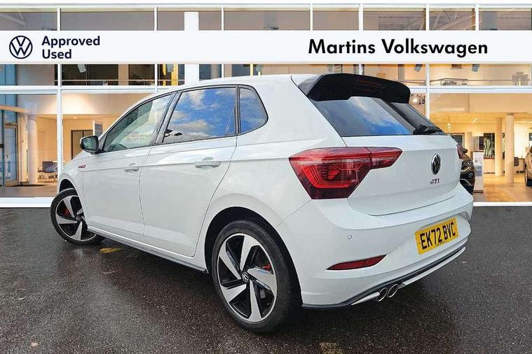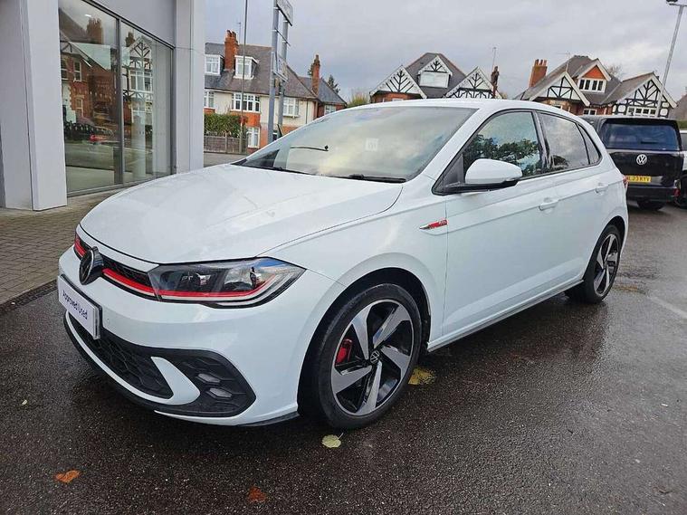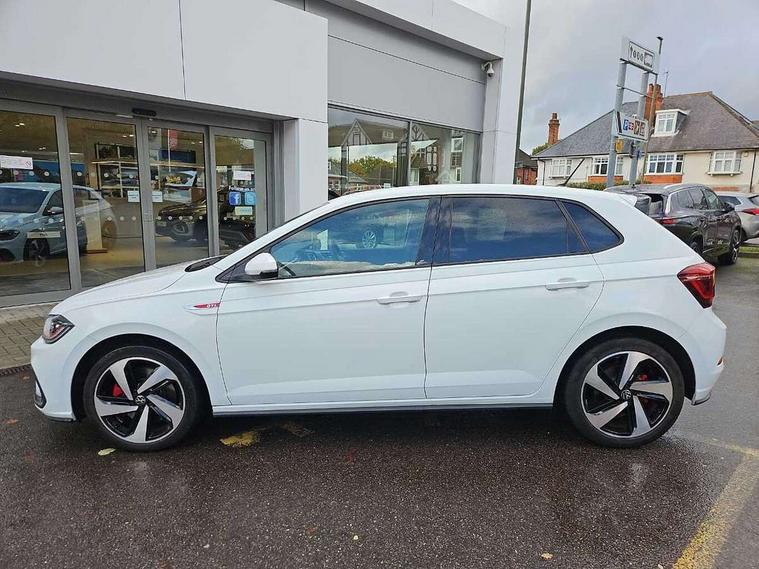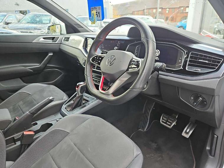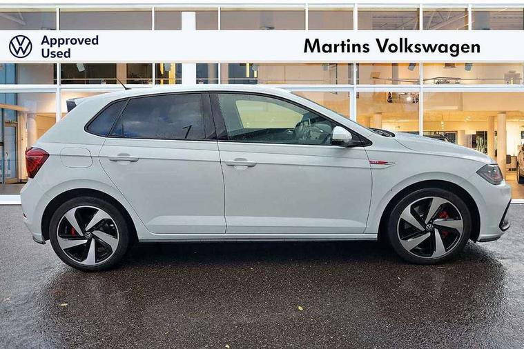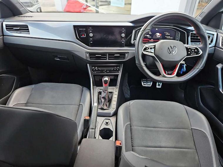 Adaptive cruise control with follow-to-stop and speed limiter, Bluetooth mobile phone interface, Digital Cockpit Pro with 10.25" Display, Driver alert system, Dynamic road sign display, Eco mode, Emergency call service, Power assisted speed sensitive steering, Preparation for We connect and We connect plus, Speedo and rev counter, electronic odometer, trip, service interval display and fuel gauge, Travel Assist - Lane keeping system and traffic jam assist, Travel assist including emergency assist, Trip computer, Warning signal and warning light for front and rear seatbelts not fastened, Washer fluid level indicator, Wireless app connect, Adaptive chassis control, Front wheel drive, Heavy duty rear axle, Rear shock absorpion sports version, Sports select suspension lowered by 15mm, Start-stop system with battery regeneration (recuperation - energy recovery during braking), DAB Digital radio, Diversity antenna for FM reception, Front and rear 6 speakers, Body colour bumpers, Body colour door handles, Electric front windows, Front scuff plates in aluminium with GTI logo, Heat insulating darkened glass in side and rear windows, Heat insulating glass windscreen, Power folding adjustable/heated exterior mirrors and front passenger exterior mirror lowering function, Rear electric windows, Rear fog light, Rear side wing doors, Rear windscreen washer and wiper with interval delay, Sport bumpers with air intakes with honeycomb structure, Third brake light, Twin chrome exhaust tailpipes, 12V power socket in centre console, 2 USB-C ports in the front, 2 USB-C charging sockets on the center console in the rear, 3 rear head restraints, 60/40 split folding rear seat and rear seat bench not split, Air care climatronic air conditoning system with active combination filter and 2-zone temperature control, Black roof lining, Ceramique headliner, Chrome plated radiator grille inserts, air vent surrounds and light switch surrounds, Door and side trim panel, Driver and front passenger seat height adjustment, Driver/passenger sunvisors with illuminated vanity mirrors, Front + rear carpet mats, Front centre armrest, Front footwell illumination, Front seat backrest storage pockets, GTI sports gearshift knob in aluminium leather, Handbrake lever handle in leather, Isofix child seat preparation easy-fit (for two outer rear seats, and front passenger seat) compatible with I-size, LED interior light with switch off delay and dimmer, 2 reading lights front and rear, Luggage compartment cover, Luggage compartment floor, Luggage compartment lighting, Single front passenger seat, Stainless steel pedals, Standard pedal cluster, Three spoke leather wrapped multifunction sports steering wheel with shifting paddles, IQ LED matrix headlights pack - Polo, Light and sight pack - Polo GTI, Sports suspension pack - Polo, 3 point height adj front seatbelts + pretensioners, 3x3 point rear seatbelts, ABS, Driver and front passenger airbag with front passenger airbag deactivation, Drivers and front passengers safety optimised head restraints, ESC (Electronic stability control) + EDL (Electronic Differntial lock) and ASR (Traction control), Extended and predictive pedestrian/ cyclist protection, Front and rear disc brakes with red brake calipers, Front curtain and side airbags with center airbag, Hill hold control, Manual child lock in rear doors, Two tone horn, Tyre pressure loss indicator, Alarm with interior protection, Anti-theft alarm system with interior monitoring, backup horn, and towing protection, Anti-theft wheel bolts, Electronic engine immobiliser, Chrome applications on rotary light, mirror adjustment, window regulator switches, outlet with frame in black, Low rolling resistance tyres,