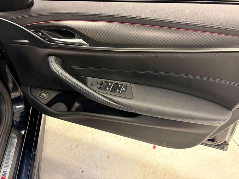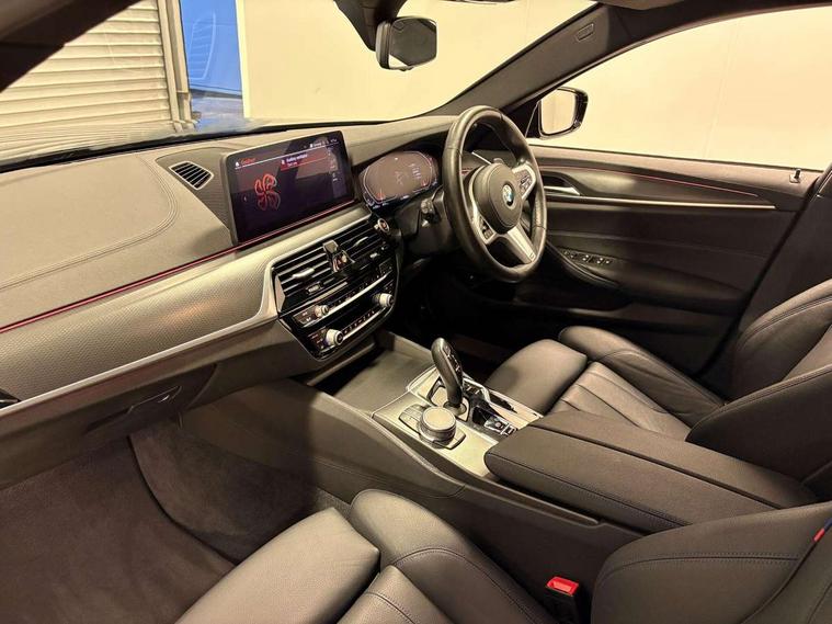 32GB hard disc drive (HDD) memory, Active Guard, BMW ConnectedDrive online services, BMW Live Cockpit Professional sat nav system with 12.3" instrument display and high resolution control display, BMW Teleservices, Brake pad wear indicator, Cruise control with brake assist, Driving experience switch, Electric boot lid - electrically opening/closing rear tailgate, Electric Power Steering (EPS) with Servotronic, iDrive touch controller with shortcut buttons, Intelligent emergency call, Multifunctional instrument panel, Oil sensor for level and grade, On board computer inc. average speed, fuel consumption, liquid crystal Info display, journey computer, outside temperature display, personal profile, On-board diagnosis - OBD, Powered by Operating System 7.0, Service interval indicator, Speed limiting function, Stop/start button, 48V Mild hybrid technology, Drive performance control with ECO PRO comfort + sport mode, Engine cover with twin turbo designation, M sport suspension, Petrol Particulate Filter, Steptronic transmission with gearshift paddles on steering wheel, DAB Digital radio, Favourite buttons, Acoustic glazing, All round anti-corrosion system, Automatically dimming rear view mirror, BMW Individual high gloss shadow line includes exterior mirror frame, window frame surround, B pillar finish, air breather in high gloss black, BMW Individual high gloss shadow line roof rails, Body colour door handles, Body coloured bumpers, Door handle illumination, Dynamic brake lights with LED technology, Electric front and rear windows with fingertip open/close + anti-trap facility and comfort closing function, Electrically adjustable and heated exterior mirrors includes integrated direction indicators and automatic parking function, Follow me home headlight function, Heated windscreen washer jets, High gloss black active air stream kidney grille, Independent opening for tailgate window, Interior rear view electrochromatic mirror with automatic anti dazzle function, LED daytime running lights, LED third brake light, M designation on front side panels, left and right in chrome, Rain sensor with automatic headlight activation, Trapezoidal visible exhaust tailpipes, 12V power socket in front and rear, 40/20/40 split folding rear seats with additional mechanism in luggage compartment, Armrest - front and rear integrated door trim, centre console includes storage compartment, rear centre includes 2 cupholders, Child seat ISOFIX attachment with rear outer seats includes top tether, Cup holders (2 front and 2 rear), Front and rear footwell lights, Front reading lights, Height and length adjustable steering column and activation via lateral lever on the steering column, Illuminated M door sill finishers, Lockable glove compartment with light, M specific pedals, M specific velour floor mats, Multifunction controls for leather steering wheel, Rear headrests, Retractable luggage compartment dividing net, Three spoke sport M leather steering wheel, Through loading system with 40/20/40 split folding rear seat, Ambient lighting pack - 5 Series, Connected package professional - 5 Series, Expanded exterior mirror pack - 5 Series, M Aerodynamic pack - 5 Series, 3x3 point rear seatbelts, Airbags - driver/front passenger, rear and side, first and second row seats head airbags, front passenger seat airbag deactivation + knee airbag, Anti-lock braking system (ABS), Automatic Stability Control (ASC), Brake assist function, Brake energy regeneration, Cornering brake control (CBC), Crash sensor activating central locking release, hazard warning lights, fuel cut off and interior lighting, Deformation zones - front and rear with door reinforcements and bumpers up to 2.5 mph, DSC - Dynamic Stability Control, Dynamic brake control, Dynamic Traction Control - DTC, Electromechanical parking brake with automatic drive away release and auto hold function, Electronic brake force distribution, Engine drag torque control, Front and rear brake discs with interior ventilation, Front head restraints with anti-whiplash, Hill start assist, Mechanical child proof lock on rear doors, Passive protection for pedestrians, Side impact protection, Three point seat belts for all four seats, Two tone horn, Tyre pressure indicator, Warning triangle and first aid kit, Alarm system (Thatcham 1) with remote control and electronic engine immobiliser, Locking wheel bolts,