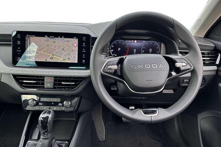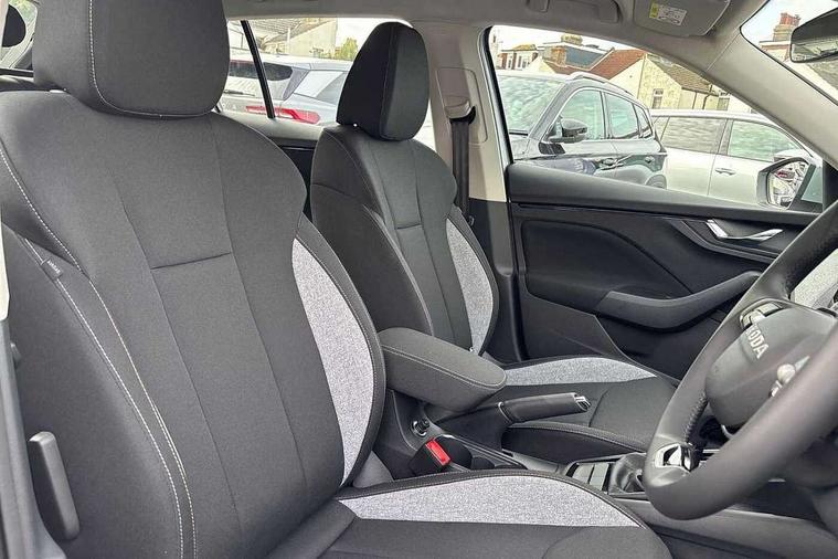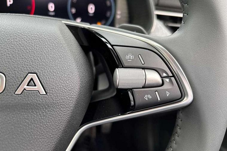 Advanced driver attention and drowsiness monitor, Bluetooth, e-Call (emergency call), Front assist system, PAS, Rear parking sensors, Rear view camera, Speed limiter, Tailgate, Traffic sign recognition, Virtual Cockpit - 10.25" digital display, Wireless smartlink, 4 USB C ports, 8 Speakers, 9.2" Skoda navigation display, DAB radio, Auto dimming rear view mirror, Automatic headlight control with manual coming and leaving home feature, Automatic intermittent wipers, Black window frames, Body colour bumpers, Body colour door mirrors and handles, Chrome moulding around grille, Front and rear electric windows, Full LED headlights, Heated rear window, LED 3rd brake light, LED daytime running lights, LED front turning lights, LED high beam, LED low beam, Rear LED fog light, Rear side wing doors, Rear wiper, Tinted windows, Unique dark chrome design logo on alloy wheels, 12V socket in luggage compartment, 3 seat bench in 2nd row, Black / Grey armrest stitching, Black hotstamping, Cargo elements, Chrome inner door handles, Door inserts in satin black, Driver and passenger sun visors with vanity mirror, Dual zone climate control, Front and rear roof lights, Front centre armrest, Front head restraints, Glasses storage in roof liner, Height adjustable driver seat, Height adjustable passenger seat, Ice scraper, Illuminated glove compartment, Inner circulation control with pollen filter, ISOFIX for front passenger seat, Isofix preparation for back seats, Leather gearknob and handbrake lever, Loft cloth upholstery, Luggage net under rear parcel shelf, Manual lumbar support for front seats, Net package and top tether hooks in boot space, Pocket on the back of both front seats, incl. mobile phone pockets, Single front passenger seat, Skoda lettering on steering wheel, Textile floor mats, Third rear headrest, Ticket holder, Top tether for front passenger seat, Umbrella in driver's door, 3x3 point rear seatbelts, ABS, Child locks, Curtain airbags and front side airbags, Disc brakes, Driver and front passenger airbags, ESP, Hill hold control, Manual leather parking brake, One tone horn, Passenger airbag switch off function, Seatbelt reminder for driver and front passenger, Tyre pressure monitoring system, Anti theft alarm system with interior monitoring, backup horn and towing protection, Anti-theft wheel bolts, Remote central locking with 2 remote folding keys, SAFE function for remote central locking, Decord pad, door inserts Kota uni,