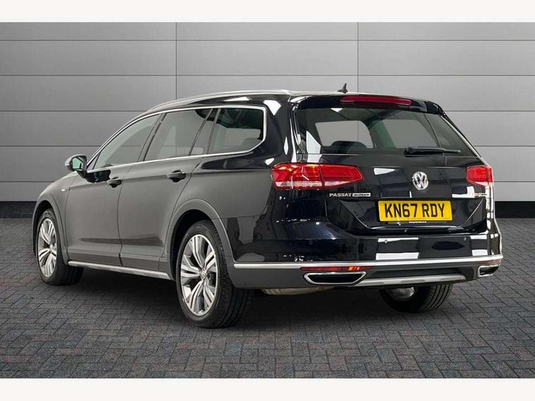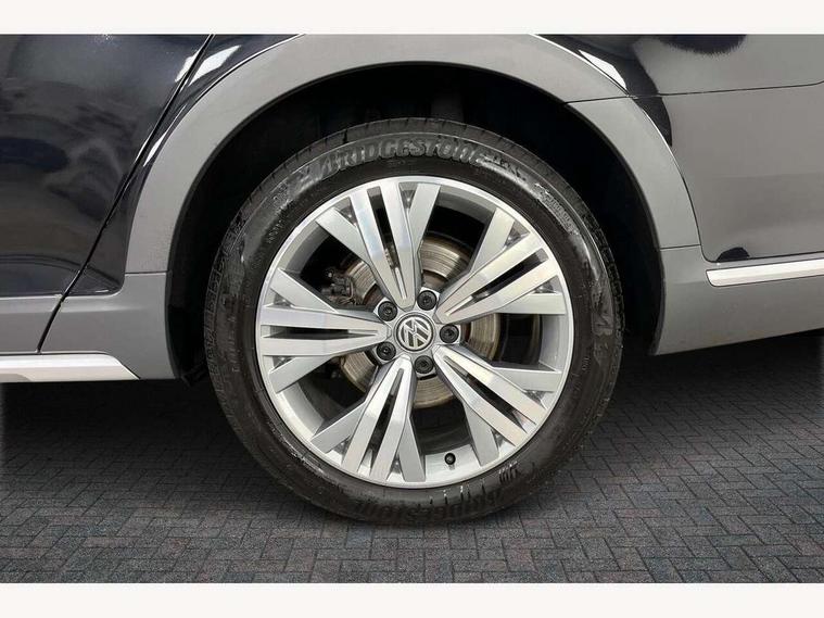 Adaptive cruise control, Analogue clock, Door/tailgate open warning lights, Driver alert system, Driver profile selection, Exterior temperature gauge with frost alarm, Low washer fluid warning light, Multi function display colour screen, Multifunction computer, Remote fuel flap release, Remote tailgate release, Rev counter with fuel gauge, Service interval indicator, Speed limiter, Speed sensitive power steering, Warning buzzer and light for front seatbelts unfastened, Off road suspension, Auxiliary socket for external device, Composition media system with Radio/CD/MP3, DAB Digital radio, MDI with USB/iPod connection cables, SD card slot, Auto dimming driver's door mirror, Auto dimming rear view mirror, Automatic activation of hazard warning lights, Automatic coming/leaving home lighting function, Automatic headlights with dusk sensor, Body colour bumpers, Body colour door handles, Chrome fog light surround, Chrome louvres in grille, Chrome side sills, Chrome side window surrounds, Chrome surround for air intake, Electric front windows, Electric rear windows, Electrically adjustable and heated door mirrors, Front and rear underbody protection, Front fog lights with static cornering function, Fully galvanised body, Gloss black finish on B pillar, Headlight range control, Heated rear window, LED rear lights, LED rear number plate lights, Load sill protection, Matt chrome door mirrors, Off-road style bumpers, Rain sensor, Rear wiper, Remote folding door mirrors and puddle lights, Reverse activated kerb-view adjustment on passenger's door mirror, Silver roof rails, Trailer stability assist, Twin Trapezoidal tailpipes, Wheel arch protectors, Windscreen wipers/ intermittent wipe + 4 position delay, 12V Accessory socket in centre console, 12V socket in luggage compartment, 3 rear head restraints, 3 Zone electronic climate control with automatic air recirculation, 4 boot load lashing points, 40:20:40 split folding rear bench seat, Driver's cushion tilt adjust, Entry lights on doors, Front + rear carpet mats, Front and rear interior lighting with delay and dimming function, Front centre armrest with storage compartment, Front comfort seats, Front cupholders x2 with covers, Front door pocket bottle holders, Height adjustable head restraints, Height/reach adjust steering wheel, Leather gearknob, Leather multifunction steering wheel, Load through provision, Lockable, illuminated, cooled glovebox, Luggage compartment cover, removable, Luggage compartment lighting, Rear centre armrest with cupholder and storage, Stainless steel pedals, Storage compartment in driver's door, Storage compartment in passenger's door, Storage compartment in rear doors, Storage compartment in roof console, Storage pockets in backrests of front seats, Sunvisors with illuminated vanity mirrors, Variable boot floor, Ambient lighting pack - Passat, 3 rear 3 point seatbelts, ABS, brake assist and EBD, Automatic post collision braking, Curtain airbags, Door open warning reflectors, Driver/Front Passenger airbags, Driver/Front passenger WOKS head restraints, Drivers knee airbag, Electronic parking brake with auto hold, ESP with EDL + ASR, First aid kit, Front assist including city emergency braking, Front side airbags, Height adjustable front 3 point seatbelts + pretensioners, Hill descent control, Hill hold function, Passenger airbag deactivation system, Pre crash system, Rear seatbelt warning indicator, Rear side airbags, Warning triangle, Alarm with interior protection, Electronic engine immobiliser, Keyless Start, Remote central locking with 2 remote folding keys, Chrome air vent and instrument surround, White instrument dials,