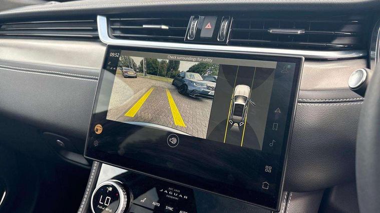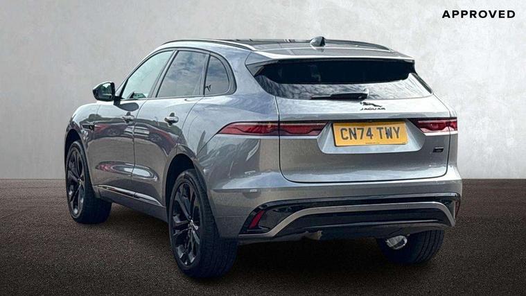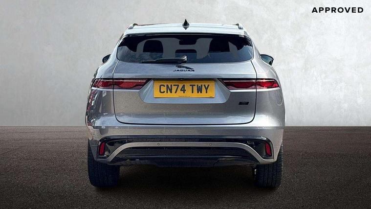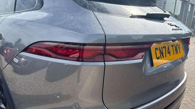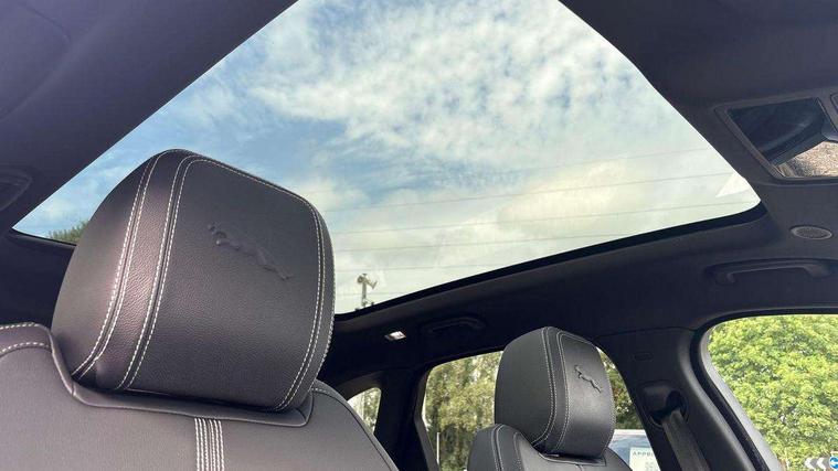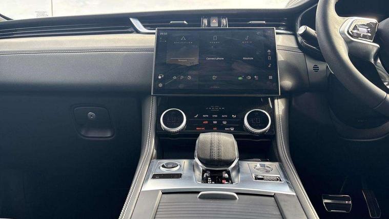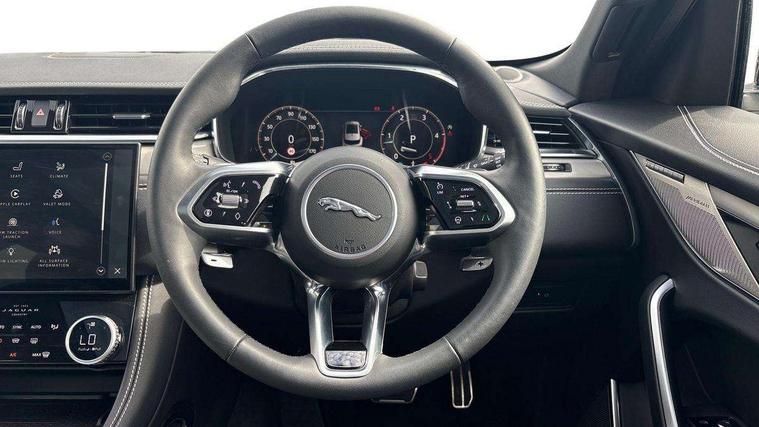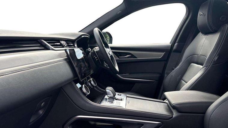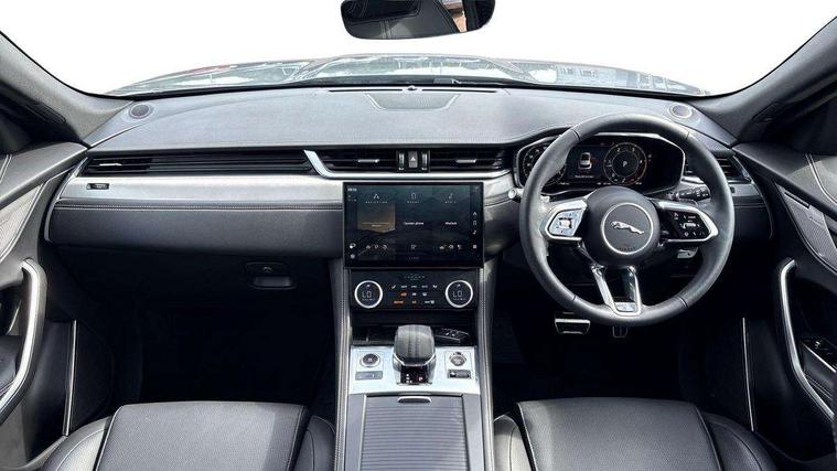 11.4" touchscreen, Android Auto, Apple car play, Blind spot assist, Bluetooth connectivity, Clear exit monitor, Driver alert system, Driver condition monitor, eCall emergency call system, Eco driving style assistant, Electric power assisted steering, InControl remote, Interactive driver display digital with 12" TFT display, Jaguar Toggle shift selector, Lane departure warning system, Lane keep assist, Outside temperature gauge, Personalisation profile management, Pivi pro connected navigation system with app interface and media storage, Pro services and wifi hotspot, Push button starter, Rear traffic monitor, Service interval indicator, Speed proportional steering, Start up sequence with movement in dials and lighting, Traffic sign recognition with adaptive speed limiter, Trip computer, Voice control system, Wireless device charging, 8 speed automatic transmission, All terrain progress control, All Wheel Drive (AWD), Open differential with torque vectoring by braking, AM/FM radio, Bluetooth streaming, DAB Radio (Digital Audio Broadcasting), Dynamic volume control, InControl apps, InControl protect, iPod integration, 3 flash lane change indicators, 90th Anniversary Edition Badge, AHBA and animated directional indicators, Approach Illumination, Auto dimming rear view mirror, Auto high beam assist, Automatic headlights, Electric heated/power fold memory door mirrors with approach lights and auto dimming driver side, Electric windows with one touch open/close and anti trap, F-Pace and R Dynamic badge, Green tinted glass, Heated front windscreen + heated washer jets, Heated rear window with timer, Jaguar script and leaper, LED High level third brake light, LED tail lights, Metal load space scuff plates, Non acoustic front windscreen, Privacy glass (rear side windows and rear screen), R Dynamic badge on side door, Rain sensor windscreen wipers, Rear fog lights, Rear metal tread plates, Rear side wing doors, Rear wiper, Trailer stability assist, Variable front intermittent wipers, 12V power point front, 3 rear headrests, 3 seat bench in 2nd row, Additional power sockets - Two additional USB sockets in rear centre console and one 12V socket in trunk, Air distribution speed, Bright metal foot pedals, Centre armrest console, Centre console with side storage, Configurable cabin lighting, Deletion loadspace storage rails, Door sill tread plates, Fold flat front seats, Front centre armrest with storage compartment, Front door storage space, Glovebox finisher with jaguar script, Heated steering wheel, Hooks in loadspace, Illuminated glovebox, Interior front door handles with separate locking switches, ISOFIX on outer rear seats, Jaguar sense, Leather steering wheel, Luggage tie downs in loadspace, Mist sensing, Multifunction steering wheel, Overhead lighting console, Overhead stowage for sunglasses, Passive front head restraints, Premium carpet mats, Rear air vents, Rear armrest with twin cupholders, Rear centre headrest, Rear door storage space, Reversible boot floor, Satin chrome gearshift paddles, Shopping bag hook, Single front passenger seat, Sunvisors with illuminated vanity mirrors, Twin front cupholders with cover, Online Pack with data plan - F-Pace, 355mm front brakes and 325mm rear brakes, 3x3 point rear seatbelts, ABS, All surface progress control (ASPC), Brake pad warning light, DSC - Dynamic Stability Control, Electric parking brake (EPB), Emergency brake assist, Front airbags with passenger seat occupant detector, Front and rear seatbelt reminder, Front side airbags, Full length side window curtain airbag, Hill launch assist, Power operated child locks, Traction control, Tyre pressure monitoring system, Immobiliser, Keyless entry, Keyless Start, Locking wheel nuts, Perimeter alarm, Remote central locking, Valet mode,