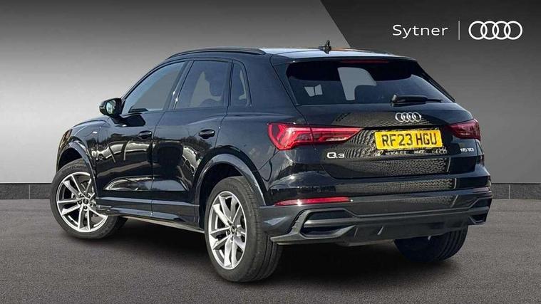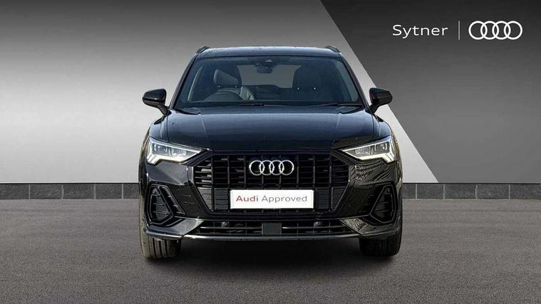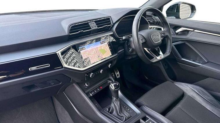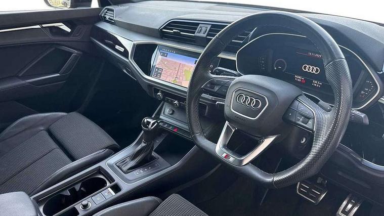 Amazon alexa Integration, Audi drive select, Audi lane departure warning, Audi smartphone interface includes wireless Apple carplay/Android Auto, Audi Virtual Cockpit - 10.25" display, Bluetooth interface, Camera based traffic sign recognition, Legal emergency call, MMI Navigation Plus with high resolution 10.1 inch touchscreen colour display, Power operated tailgate, Progressive steering, Service interval indicator, Start stop system with recuperation, Voice control system with natural language interaction, Diesel particulate filter, Sports suspension, 2 USB-C ports with charge and data functions, 6 passive loudspeakers, DAB digital radio module, Acoustic windscreen, Auto dimming frameless rear view mirror, Black roof rails, Electrically folding, adjustable and heated door mirrors with integrated LED side indicators and kerb view function for passenger side, Front and rear electric windows, Front fog lights, Grille vertical bars in aluminium silver/Matt, High gloss black finish B and C pillars, LED Dynamic rear indicators, LED headlights with LED daytime running lights, LED rear lights, LED third brake light, Privacy glass dark tinted rear and rear-side windows (from B-pillar backwards), Rain and light sensors, Rear diffuser grille in grained matt black, Rear diffuser strip in matt anthracite black, Rear side wing doors, Rear wiper, S line bumpers in contrasting Manhattan grey, Variable front intermittent wipers, 12V socket in rear centre console, 3 seat bench in 2nd row, 40:20:40 folding with manual adjustment for 60:40 forwards/backwards position and backrest angle, Adjustable rear seat bench/backrest with centre armrest and cupholder, Black cloth headlining, Dual zone electronic climate control, Front and rear black floor mats with contrast stitching in rock grey, Front and rear headrests, Front and rear roof module including reading lights, Front centre armrest, Glove compartment lighting, Height and reach adjustable steering wheel, Illuminated door sill trims with S logo, ISOFIX child seat mounting for front passenger with airbag deactivation and outer rear seat including top tether attachment point for outer rear seats, Luggage compartment light, Manual front seats with height adjustment, Perforated leather gearknob, Single front passenger seat, Stainless steel luggage compartment sill finisher, Stainless steel pedals, Ambient lighting pack - Q3, Black styling pack - Q3, Non smoking pack - Q3, 3x3 point rear seatbelts, 6 airbags - Driver, front passenger, curtain and side windows, Audi pre-sense front with pedestrain and cyclist recognition, Electrically operated child locks on rear doors, Electromechanical parking brake, Electronic stabilisation control including ABS, ASR and EDL, Front seatbelt reminder, Hill descent control, Hill hold assist, Pre sense basic, Seatbelt monitoring, Tyre pressure warning, Warning triangle and first aid kit, Anti theft alarm, Anti theft wheel bolts, Immobiliser, Remote central locking, Aluminium look interior elements, Detail dashboard around MMI touch colour display in glass look, black with surround in aluminium look, Leatherette door armrest, Piano black inlay, 19" 5 twin arm design diamond cut audi sport alloy wheels in matt grey look,
