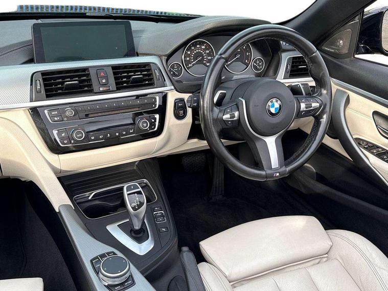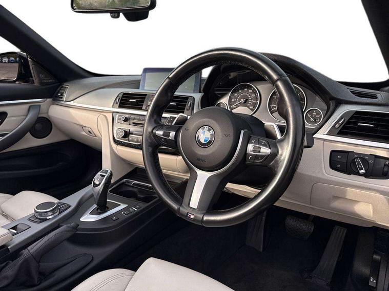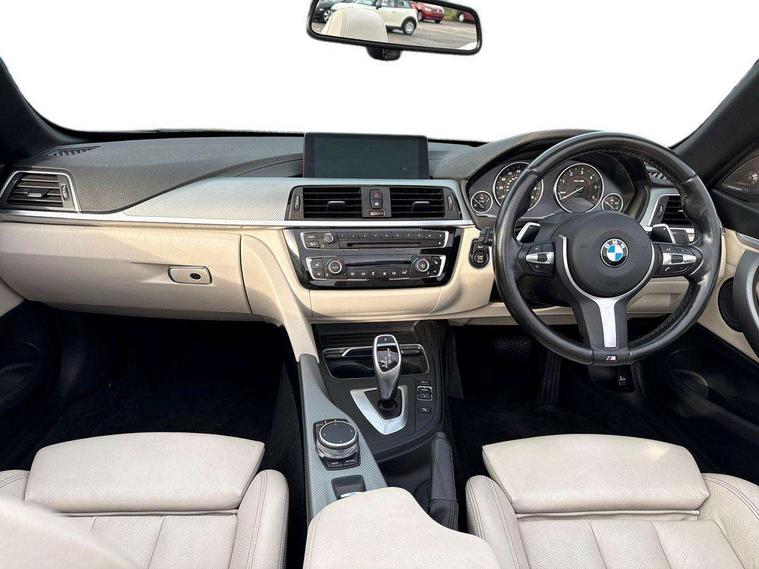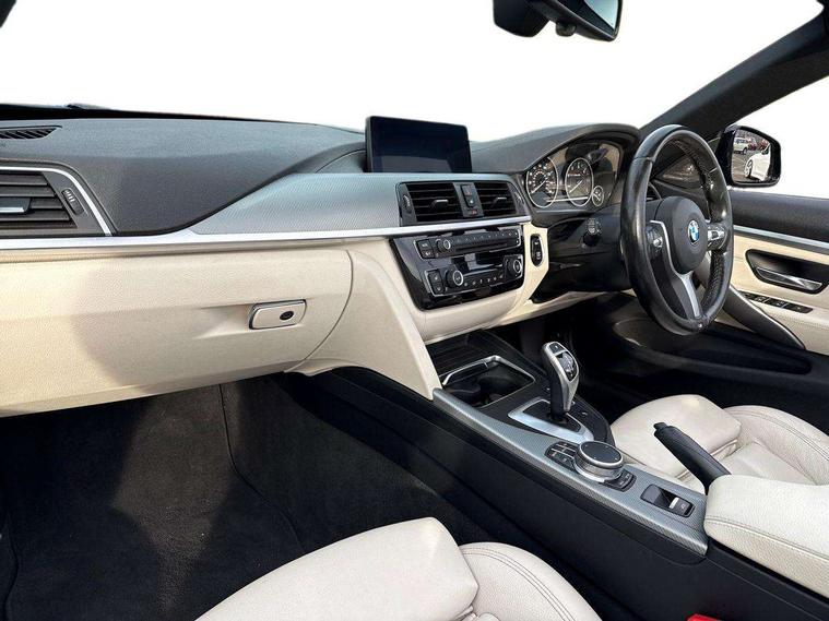 BMW Online services, BMW remote services, BMW Teleservices, Brake pad wear indicator warning light, Check control system, Door/boot open warning, Front/rear Parking distance control, iDrive controller and display with 6.5" monitor, Lights on warning, Oil temperature gauge, On board computer, Outside temperature display, Real time traffic information, Run flat indicator, Service interval indicator, Stop/start button, Diesel particulate filter, Drive Performance Control, Electronic differential lock, Sports function on gearbox with steering wheel mounted gearshift paddles, Bluetooth audio streaming, BMW professional radio/CD/MP3, DAB Digital radio, 2 speed adjustable intermittent wipers with wash/wipe function, Auto dimming rear view mirror, Body colour bumpers, Body colour door handles, Body colour door mirrors, Body colour roof mouldings, Chrome kidney grille with black vertical slats, Door sill finishers, Dual chrome exhaust, Electric adjustable heated door mirrors, Electric front windows/one touch facility, Follow me home headlights, Heat insulating tinted glass, Heated windscreen washer jets, High gloss shadow line, LED daytime running lights, LED front fog lights, M aerodynamic bodystyling, Rain sensor including auto headlights activation, Welcome lighting, Windscreen with grey shadeband, 12V sockets in front centre console and passenger footwell, 3 spoke leather M sport multifunction sports steering wheel, Anthracite Velour floor mats, Dual zone climate control, Folding front centre armrest with storage compartment, Folding storage compartment with glasses holder + coin tray, Front cupholders x 2, Front door storage with bottle holder, Front head restraints, Front sports seats with electric side bolster adjustment, Front/rear armrests within door panels, Glovebox with lid, Heated front seats, Integrated rear head restraints, ISOFIX child seat preparation+airbag deactivation, Lashing eyelets in boot, Leather handbrake grip, Reach + rake adjustable steering column, Rear centre armrest, Storage compartment behind rear seat, Storage compartment in centre rear seat base, Storage compartment in rear centre console, Toolkit located in luggage compartment, Extended lights package - 4 Series, 3 point seatbelts on all seats, ABS/EBD, Automatic Stability Control (ASC), BMW emergency call, Brake energy regeneration, Cornering brake control (CBC), Crash Sensor - activates hazard/interior lighting + unlocks doors, Driver seatbelt warning indicator, Driver/Front Passenger airbags, DSC+, Dynamic brake control, Dynamic Traction Control - DTC, Front passenger airbag deactivation, Front seatbelt force limiters, Front seatbelt pretensioner, Front side airbags, Hill start assist, Roll over protection, Side impact protection, Tyre pressure monitor, Warning triangle and first aid kit, Central locking including fuel filler and boot, Drive away door locking, Electronic immobiliser, Remote control Thatcham category 1 alarm,