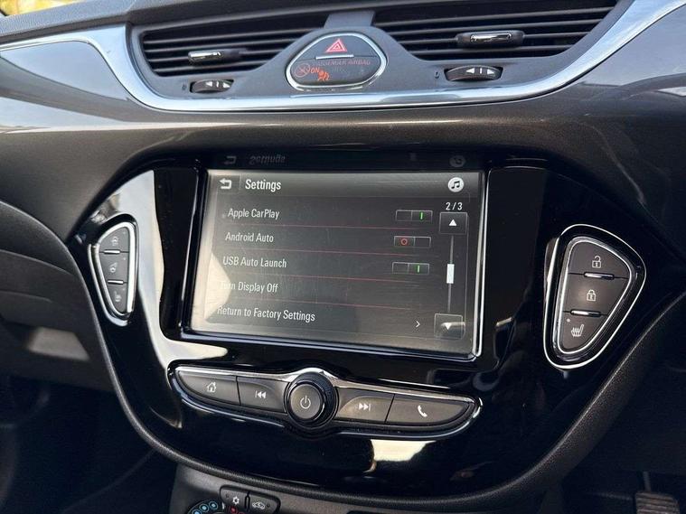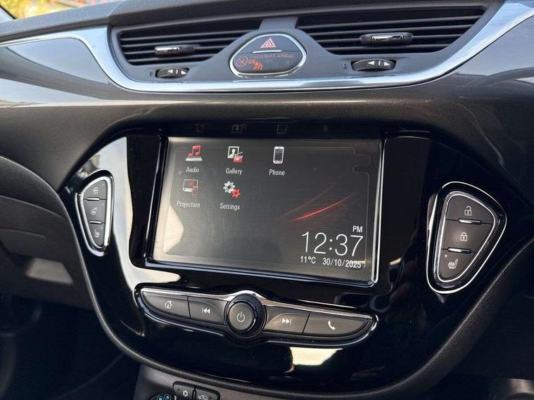 Apple car play/Android Auto, Bluetooth system, City assist mode for power steering, Cruise control + speed limiter, Exterior temperature gauge, Lights on warning, Low fuel level warning light, Multi function display, Rev counter, Service indicator, Speed sensitive power steering, Speed warning indicator, Trip computer, 6 speakers, Black fog light surrounds, Body colour bumpers, Body colour door handles, Body coloured door mirrors, Chrome front grille, Coming home function, Electric adjustable door mirrors, Electric front windows/one touch facility, Headlamp levelling, Heated door mirrors, Heated rear window, Heated windscreen, Laminated windscreen, LED daytime running lights, Rear wiper, Two speed windscreen wipers, 12V power outlet, 2 height adjustable rear headrests, Air recirculation system, Centre console with cupholders, Chrome gear knob, Chrome interior door handles, Delay courtesy light function, Driver/passenger reading lights, Driver/passenger sunvisors and vanity mirrors, Easy entry reclining front seats with memory, Electric reach + rake adjustable steering column, Front door pockets, Front seat belt pre-tensioners with load limiters, Glovebox, Grab handles, Height adjustable driver's seat, Height adjustable front headrests, Illuminated luggage compartment, ISOFIX on outer rear seats, Load restraining lashing points, Luggage compartment cover, Mora seat cloth upholstery, Multi function steering wheel, Pollen filter, Rear bottle holder, Reclining front seats, Sight and light Pack - Corsa, Winter pack - Corsa, ABS + EBD + EBA, Brake assist function, Driver/passenger 2 stage auto adaptive airbags, ESP + traction control, Front and rear curtain airbags, Front and rear seatbelt reminder, Front seat side impact airbags, Height adjustable front seatbelts, Hill start assist, Passenger airbag deactivation system, Side impact protection beams, Three 3 point rear seatbelts, Tyre pressure monitoring system, Deadlocks, Immobiliser, Key left in ignition audible warning, Locking wheel bolts, Radio frequency remote central locking, Rhutenium facia with chrome effect inserts,