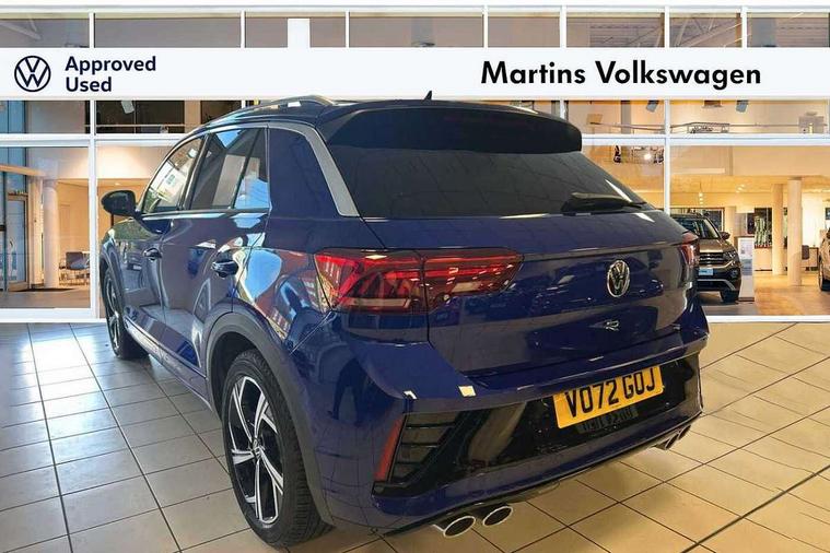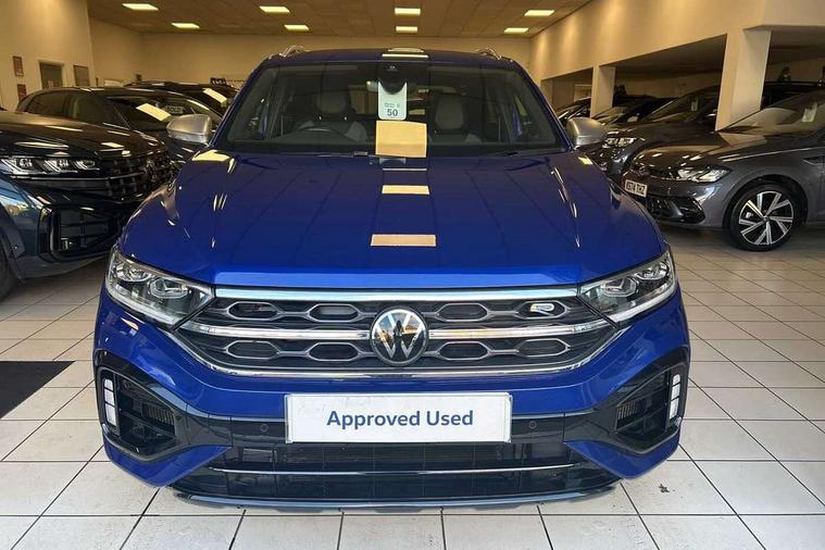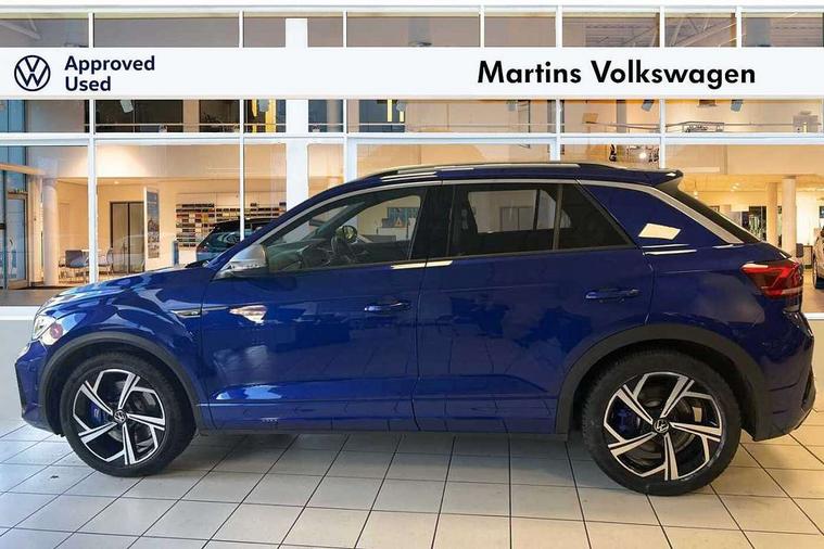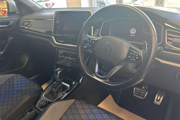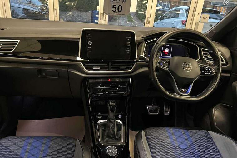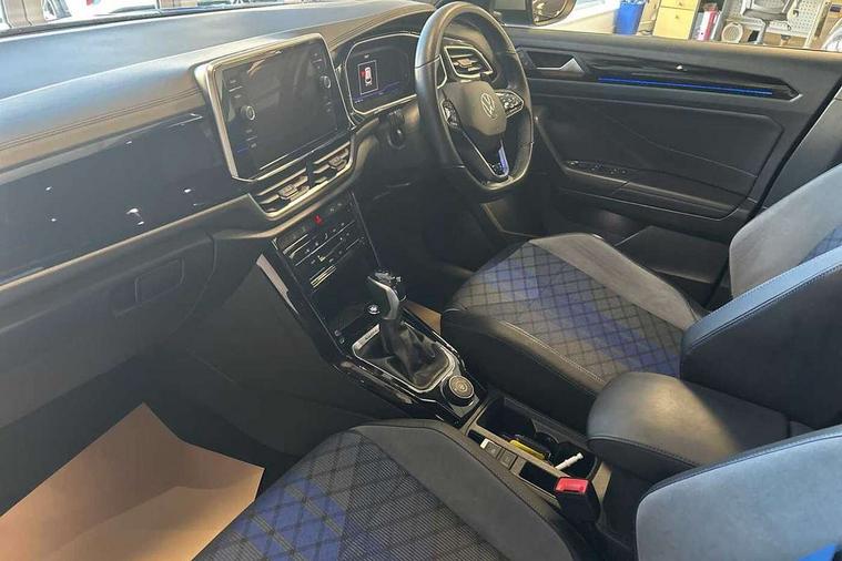 10.25" Digital cockpit pro, Bluetooth mobile phone interface, Driver alert system with fatigue detection, Driver tips and journey analysis, Emergency call service, Lane keeping system Lane Assist, Modified key software - reduce switch off time for key status change to Long no motion, Online services, Park assist including front and rear parking sensors, Service interval indicator, Tailgate/trunk lid release from outside, Think blue trainer driver tips and journey analysis, Warning sound and light for front seatbelts unfastened, Wireless app connect, Battery regeneration during braking, Four wheel drive, Start/stop function with battery regeneration, Diversity antenna for FM reception, Front and rear 6 speakers, Music playback - MP3, WMA and AAC files, Premium USB cable in choice of either Apple or Android smartphone compatibility, SD card slot, Simultaneous pairing of 2 compatible mobile devices, Title and cover art display, We Connect and We Connect Plus functionality, 3rd brake light, Auto dimming interior rear view mirror, Automatic hazard lights activation under emergency braking, Automatic headlight control with LED separate daytime running lights with coming/leaving home function, Extended roof spoiler, Exterior mirrors aspherical on driver side, convex on front passenger side, External USB type C socket and charging sockets, Front windscreen wiper with intermittent wipe and 4 position delay, Heated rear window, LED Plus headlamps, LED rear combination lamps, LED rear number plate lights, LED tail lamp rear comination lamps, Power windows with comfort operation and circuit breaker, Privacy glass for rear side windows and rear window, R-Line design body coloured bumpers, Rain sensor, Rear fog light on one side and reversing lights on both sides, Rear side wing doors, Rear wash/wipe with intermittent wipe setting, Remote electrically foldable door mirrors, puddle lights and reverse activated passenger's door mirror, 12V power socket in centre console, 3 rear head restraints, 3 seat bench in 2nd row, 4 load lashing points in luggage compartment, Air care climatronic air conditoning system with active combination filter and 2-zone temperature control, Ambient lighting - 10 colour (blue), Black roof lining, Chrome plated radiator grille inserts, air vent surrounds and light switch surrounds, Door and side trim panel with leatherette insert, Drawer under drivers seat, Driver/front passenger seat height adjustment, Front + rear carpet mats, Front centre armrest, Front cupholders x 2, Front footwell illumination, Front scuff plates with R logo in door apertures, Front sport seats, Heated leather wrapped multi function sports steering wheel with tiptronic, Instrument lighting, white adjustable panel illumination, Interior light delay, Isofix child seat preparation, Leather gearshift handle, LED interior light with switch off delay/dimmer and 2 front/rear LED reading lights, Load-through provision with cup holder when folded down ('Unsplit rear seat bench, split folding backrest, with centre armrest), Luggage compartment lighting, Lumbar support for driver's and front passengers seat, Non-folding front passenger seat backrest, R-logo stitching in floor mats, Single front passenger seat, Stainless steel pedals, Storage compartment in left and right luggage area, Storage compartment in rear doors, Storage compartments in driver and front passenger doors, Sunvisors with illuminated vanity mirrors, Variable boot floor, height adjustable and removable, Driver assistance pack without proactive passenger protection - T-Roc, R styling pack - T-Roc, 3 point height adj front seatbelts + pretensioners, 3 point seatbelts in outer rear with ECE label, ABS, Child locks on rear doors, Driver and front passenger airbag with front passenger airbag deactivation, Driver and front passenger safety-optimised head restraints, Drivers seatbelt reminder, Electronic parking brake, Electronic Stability Control (ESC) inc EDL (Electronic Differential Lock) and ASR (Traction Control), Front and rear passengers curtain airbag system including front side airbags, Front assist with city emergency braking and pedestrian monitoring, Front seat side impact airbags, Hill descent control, Hill start assist, Predictive pedestrian protection, Rear disc brakes, Single tone horn, Tyre pressure loss indicator, Volkswagen roadside assistance, Alarm with interior protection, Anti-theft alarm system with interior monitoring, backup horn, and towing protection, Keyless entry and start, Remote central locking with SAFELOCK, radio remote control with 2 remote control folding keys, Trims for alloy wheels,