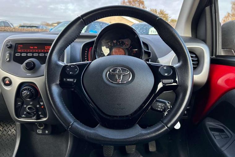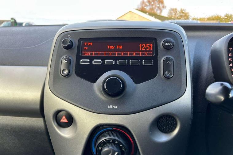 Bluetooth system, Digital clock, Electric power steering, Fuel indicator with low level warning, Lights on warning, Speed limiter, Tachometer, Vehicle Stability Control (VSC), 4 speakers, Auxiliary input socket, DAB Digital radio, Stereo radio, USB connection, 2 speed wipers/variable intermittent/mist function, Black front X, Body colour bumpers, Body colour door handles, Body colour door mirrors, Carbon rear diffuser, Electric adjustable door mirrors, Electric front windows, Green tinted glass, Headlamp levelling, Heated door mirrors, Heated rear windscreen, LED daytime running lights, Rear spoiler, Rear window demister, Rear wiper, Roof mounted aerial, 12V Accessory socket, 3 spoke leather steering wheel, 50/50 split folding rear seat, Air conditioning, Air recirculation system, Centre console storage, Chrome insert to gearknob, Chrome interior door handles, Driver and passenger sunvisors, Driver's seat height adjuster, Driver/passenger seat recline/slide adjust, Driver/passenger vanity mirrors with covers, Front and rear door pockets, Front cupholder, Front map reading lights, Gleam cloth upholstery, Glovebox, Height adjustable front head restraints, Isofix system on outer rear seats, Leather gear knob, Pollen filter, Rear cupholders, Rear headrests, Steering wheel mounted radio/phone controls, Stepless tilt adjustable steering column, Storage bins on all doors, Tonneau cover, ABS, Driver and passenger airbags, ESP, Fasten seatbelt reminder, Front side airbags, Height adjustable front seatbelts with pre-tensioners and load limiters, Hill start assist, Passenger airbag deactivate switch, Rear child proof door locks, Side curtain airbags, Tyre pressure warning, Engine immobiliser, Lockable fuel cap, Remote central locking, Grey dashboard trim, Tyre repair kit,