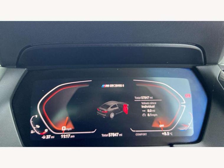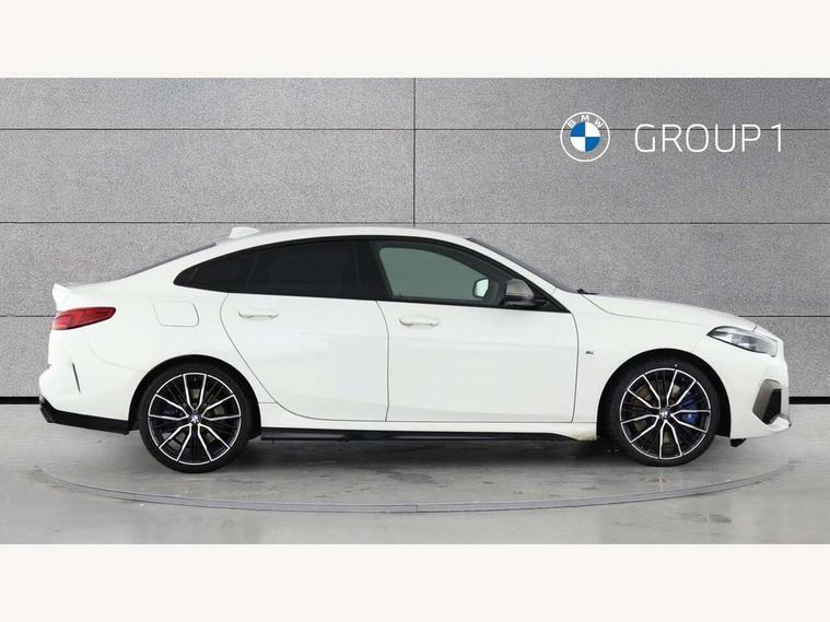 Active guard plus, Attentiveness assist, Auto start-stop, BMW Intelligent Personal Assistant, BMW Live Cockpit Professional with 10.25" high resolution instrument and control display, BMW Online services, BMW operating system with 7.0 mid interface, BMW Teleservices, Check Control warning system for monitoring of lights and door/luggage compartment open warning, Electro hydraulically controlled multi plate clutch in rear axle, Energy efficient operating strategy, iDrive controller with touch function and 7 short cut favourite buttons on centre console, Integrated navigation data with map data via USB +features such as 3D landmarks and micro city models, Integrated owners handbook, Intelligent voice assistant, M Sport steering with M235i xDrive M performance specific settings, On board computer - average speed+fuel consumption, service interval, clock/date, odometer/trip meter, outside temperature display and ice warning, Optimum shift indicator, Personal Profile, Pull away assistant, Speed limiting function, 2 balance shafts, 8 speed sport automatic transmission with electronic selector lever, auto P function, coasting idle, race track, sport, gearchange display manual mode, Aluminium lightweight construction, Double VANOS, Drive performance control with ECO PRO comfort + sport mode, Electronic differential lock, Engine cover with M performance designation, High precision injection, Larger fuel tank capacity (50 litres), Launch control, M235i specific heavily de-throttled engine intake air guide, M235i specific high-performance cooling package, M235i specific larger turbocharger with integrated divert-air valve, Petrol Particulate Filter, Power transmission of front wheel drive on the rear axle via angle transmission on the front axle differential and two part cardan shaft, VALVETRONIC engine management, Variable, stepless and infinitely adjustable distribution of drive torque between the front and rear axles, xDrive intelligent all wheel drive with M235i specific reinforced components, 2x USB Type C ports (for charging and data transfer), 4G LTE Connectivity with hard wied 4G network sim card, DAB digital radio, MP3 players and RDS double tuner, Automatically dimming rear view mirror, Body colour door handles, Direction indicator side lights integrated exterior mirrors, Electric windows - front and rear, with open/close fingertip control and trap release, Exterior mirrors - electrically folding with anti-dazzle, Fading support, Follow me home headlights, Front and rear bumper system with replaceable deformation elements, Front door sill finishers in black plastic with M235i designation, Heated, electrically adjustable exterior mirror aspheric on driver side, convex on passenger side, High gloss black B pillar finish, High gloss shadow line exterior trim, High level third brake light, LED daytime running lights, LED front fog lights, Lightweight engineering, M Performance exhaust system with valve control and minimised exhaust back pressure, M rear spoiler, Model designation on right side of tailgate includes xDrive designation onleft handside for M235i xDrive, Preparation for high beam assistant, Rain sensor with automatic headlight activation, Rear fog lights, Reinforced crank drive, new pistons and adapted con rods, Reversing light in rear light cluster, Welcome lighting, 12V power socket in centre console, 2 cupholders in front centre console, 3 rear seat head restraints, 3 spoke M sports design leather steering wheel finished in nappa leather with specific M badge, Additional under floor storage in luggage compartment, Anthracite finished floor mats with contrasting surround, Anthracite headlining, Automatic two zone climate control air conditioning, Child seat ISOFIX attachment for two outer rear seats and front passenger seat with anchorage points, Conditioned based service, Driver and front passenger seat heating, Front and rear door pockets including bottle trays, Front and rear side armrests integrated into door trim, Front armrest foldable with integrated storage compartment, Front centre interior light over interior mirror and rear centre automatic interior light when door is opened/ignition switched off or via remote key, Front head restraints, Front M Sport seats, Glove compartment, Glovebox with light, Luggage compartment lighting, Manually adjustment steering wheel column, Multi-function controls for steering wheel, Shift-by-wire selector shift, Steering wheel paddles, Sun visors with vanity mirrors and insert tab, Through loading system with 40/20/40 split folding rear seat, Two lashing eyes, Connected pack professional - 2 Series Gran Coupe, Extended Lighting pack - 2 Series Gran Coupe, Extended storage pack - 2 Series Gran Coupe, M Sport exterior styling aerodynamics pack - 2 Series Gran Coupe 235i, 2 tone horn, Airbag - Front driver and passenger, front and rear head, front side, curtain head protection, manual deactivation of front passenger airbag possible, Anti lock braking system (ABS) with cornering brake control, BMW emergency call, Brake drying, Braking readiness, Crash sensor activating of airbags, Unlocking doors, hazard warning lights, interior light, safety battery terminal, Dynamic stability control + (DSC+), Dynamic Traction Control - DTC, Electrically operated hand brake, Integrated torsen mechanical limited slip differential on front axle, M Sport braking system in blue high gloss + blue painted brake calipers with M designation, M sport seatbelt, Rear brake discs, Rear child proof door locks, Seat belt security check for driver and front passenger, Seatbelt warning, Side impact protection, Three point seat belts on all seats including front belt stopper, pyrotechnic belt tensioners and belt force limiters, Trailer stability control, Tyre pressure monitoring system, Ventilated front disc brakes, Warning triangle and first aid kit, Central locking switch for all doors, fuel filler cap and luggage compartment, Deadlocking function system to all doors, Dri
