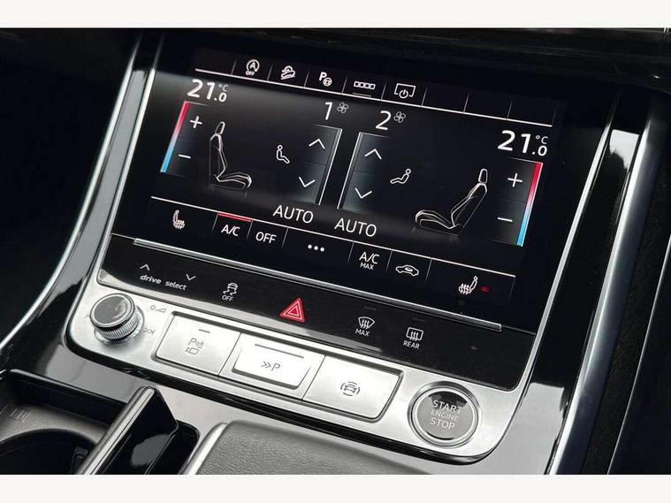 10.1" and 8.6" Dual colour touchscreens, Audi connect safety and service (e-call), Audi connect with Amazon Alexa Integration, Audi drive select, Audi parking system plus includes 360 degree display with front and rear sensors, Audi phone box light with wireless charging, Audi virtual cockpit - 12.3" high resolution LCD display with fully customisable instrument cluster, Automatic start/stop system, Electro-mechanical PAS, Low washer fluid indicator, MMI - Multi Media Interface control system, MMI navigation plus with MMI touch, Natural voice recognition, On board computer, Operating buttons in black, glass look with haptic feedback, Power operated tailgate, Rear view camera, Service interval indicator, Smartphone interface includes wireless Apple carplay/Android Auto, 48V Mild hybrid technology, Adaptive sport air suspension, Diesel particulate filter, Quattro all wheel drive with self locking centre differential, Audi music interface with 2 USB ports with charge and data functions, Audi sound system with 6 channel amplifier, 180 watt amplifying capacity and 10 loudspeakers including subwoofer, Aux-in socket, DAB Digital radio, 3rd brake light, Acoustic windscreen, Aluminium window trim, Audi beam, Audi HD Matrix LED headlights with dynamic front and rear indicators, Auto dimming frameless rear view mirror, Black Audi rings and black badging, Coming/leaving home lighting function, Electric front+rear windows, Electrically folding auto dimming/adjustable/heated door mirrors with memory function, LED side indicators and kerb view function for passenger side, Headlight washers, Heat insulating glass in windshield, LED signature daytime running lights, Platinum grey front spoiler lip and diffuser insert with honeycomb grille in black, Privacy glass - dark tinted rear and rear side windows from B-pillar backwards, Rain and light sensors, Rear side wing doors, Rear wiper, 2 zone automatic climate control, 3 bench rear seats in 2nd row, 4-way lumbar support for front seats, 40:20:40 split folding rear bench seat, Audi phone box light, Black cloth headlining, Comfort front centre armrest, Driver seat memory function, Electrically adjustable front seats, Front head restraints, Front/rear floor mats, Heated front seats, ISOFIX child seat mounting for front passenger seat and 2 outer rear seats with top tether child seat mounting for all 3 rear seats, LED interior ambient lighting, Luggage compartment sill protection in stainless steel, Rear centre armrest with 2 cupholders, Rear headrests, Seat cushion displaceable by 100mm in the ratio 60:40, Single front passenger seat, Stainless steel pedals, Sunvisors with illuminated vanity mirrors, 3 point seatbelts on all seats, Audi pre sense front, Child locks on rear doors, Driver and front passenger, front side and curtain airbags, Electromechanical parking brake, Electronic Stability Control (ESC) including ABS, ASR and EDL, Front passenger airbag deactivation, Hill descent control, Hill hold assist, Predictive pedestrian protection, Seatbelt monitoring, Traction control, Tyre pressure loss indicator, Warning triangle and first aid kit, Anti theft alarm with tow away protection, Anti-theft wheel bolts and wheel loosening detection, Immobiliser, Keyless go with remote central locking, Polished oak trim with grey finish inlay, Tool kit, Tyre repair kit,