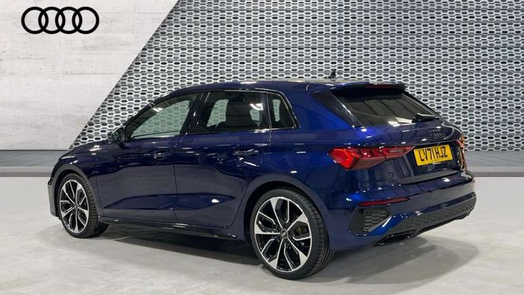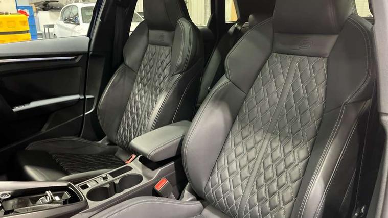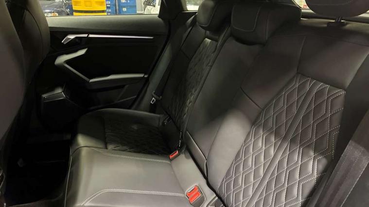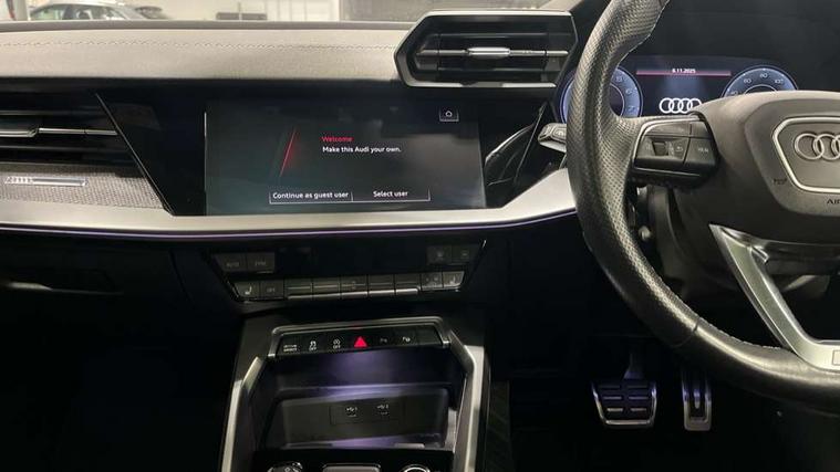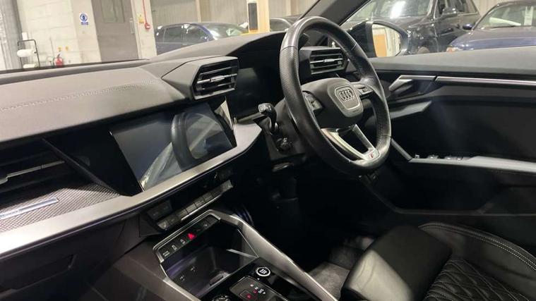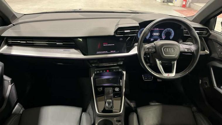 Audi connect emergency call and service, Audi drive select (Auto, Comfort, Dynamic, Efficiency and Individual), Audi smartphone interface, Audi virtual cockpit plus - 12.3" full HD resolution dynamic digital instrument cluster, Automatic start/stop system with recuperation, Bluetooth interface, Collision avoidance assistant, Electromechanical power speed sensitive steering, Head up Display, Lane departure warning system, MMI Navigation Plus with high resolution 10.1" colour touch screen display, Power operated tailgate - Luggage compartment lid opens electrically, Service indicator, Trip computer, Voice control system with natural language interaction, Sports suspension, 2xUSB-C connection with data and charging functions, Bang and Olufsen premium sound system with 3D sound, DAB Digital radio, 3rd brake light, Acoustic glass windscreen, Audi Beam uses LEDs to project Vorsprung logo, Audi matrix LED headlights with LED rear lights + dynamic front and rear indicators, Auto dimming frameless rear view mirror, Body colour front spoiler blade, Electric panoramic sunroof, Electrically adj heated/folding + automatically dimming exterior mirrors + automatic kerb side function for passenger side exterior mirror, Front electric windows, Headlight washers, Illuminated aluminium inserts front door sills with S logo, Integrated LED indicators in door mirrors, LED daytime running lights, Light and rain sensors, Privacy glass - dark tinted rear window, rear door and side windows, Rear diffuser in grained matt black, Rear electric windows, Rear side air outlets in grained matt black, Rear wiper, S roof spoiler, 12V socket and storage compartment in front centre console, 3 spoke multifunction leather steering wheel including paddle shift, 4 way electrically adjustable lumbar support for driver and front passenger, 40/20/40 split folding rear seat bench with cupholder, Black cloth headlining, Dual zone electronic climate control, Electrically adjustable front seats for driver's side, Fine Nappa leather upholstery with front sports seats S embossed logo, Front and rear centre armrest in leather, Front and rear headrests, Front/rear floor mats, Heated front seats, Height and reach adjustable steering wheel, Interior lighting - glove compartment light and right hand side, Luggage compartment floor covering, Seat side bolsters, Stainless steel pedals and front footrest, Aluminium interior elements pack - A3 Sportback, Black styling pack - A3 Sportback Vorsprung, Driver assistance package - A3 Sportback, Extended ambient lighting pack - A3 Sportback, LED interior lighting pack - A3 Sportback Edition 1/Vorsprung, 3x3 point rear seat belts, Driver and front passenger airbag with passenger airbag deactivation, Electronic Stabilisation Control (ESC) including ABS, ASR and EDL, First aid kit with warning triangle and 2 safety vests, Front side airbags with head airbags and interaction airbag, Hill hold assist, Pre-sense front with pedestrian and cyclist detection, Seatbelt monitoring, Tyre pressure loss indicator, Advanced key, Anti theft alarm, Anti-theft wheel bolts, Electronically operated child lock, Immobiliser, Remote control central locking, Carbon inlays, accent surfaces in the dashboard and centre console in platinum grey silk effect paint finish,