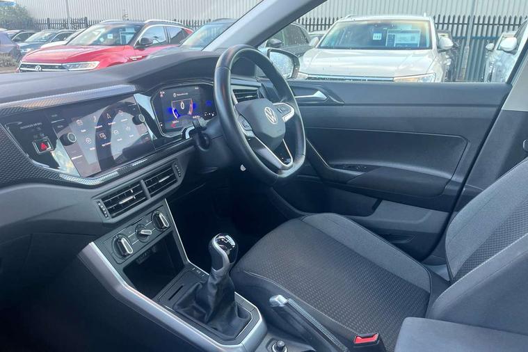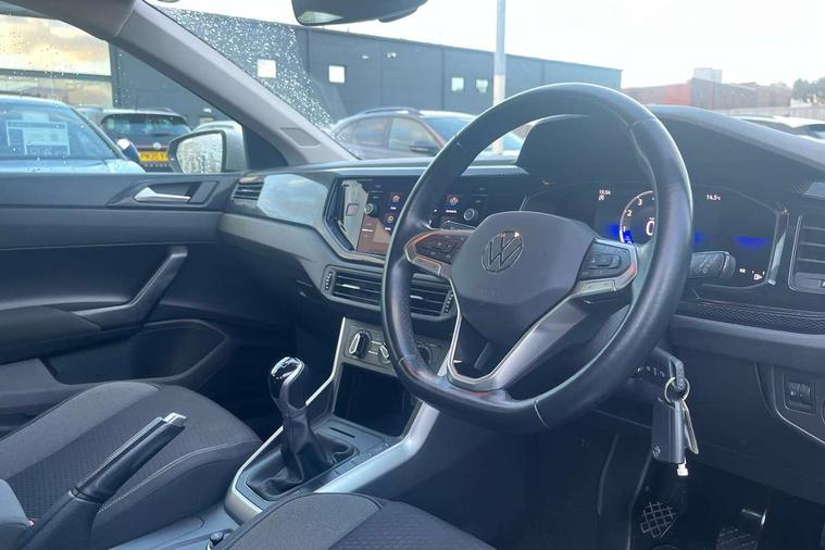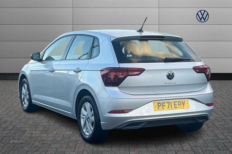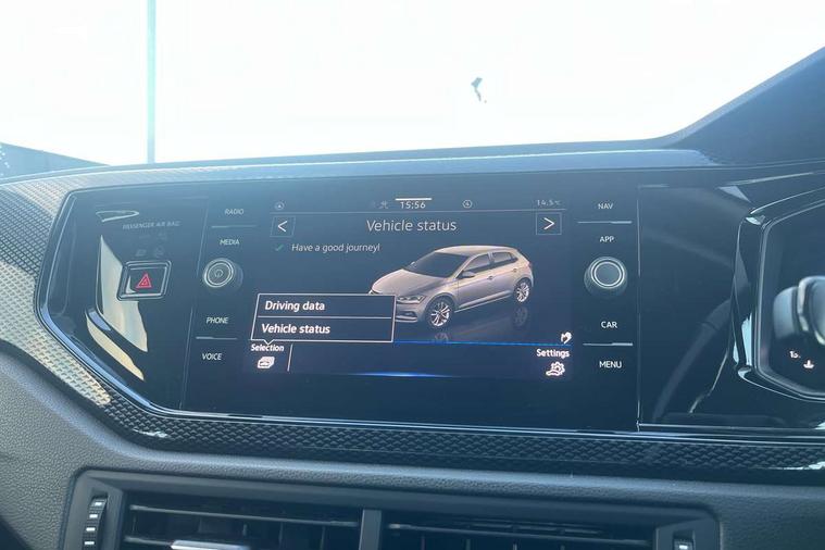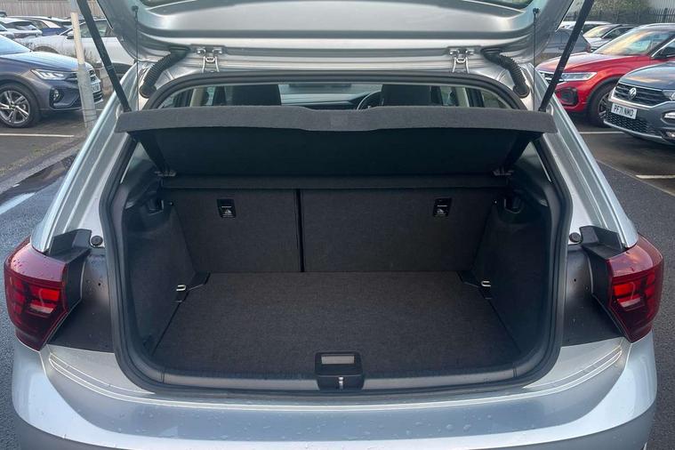 Adaptive cruise control without follow-to-stop and speed limiter, Bluetooth mobile phone interface, Driver alert system, Emergency call service, Front assist system, Power assisted speed sensitive steering, Preparation for We connect and We connect plus, Speedo and rev counter, electronic odometer, trip, service interval display and fuel gauge, Standard rear axle, Travel Assist - Lane keeping system and traffic jam assist, Travel assist including emergency assist, Trip computer, Warning signal and warning light for front and rear seatbelts not fastened, Washer fluid level indicator, Wireless app connect, Front wheel drive, Rear shock absorpion, Start-stop system with battery regeneration (recuperation - energy recovery during braking), DAB Digital radio, Diversity antenna for FM reception, Automatic dimming interior rear view mirror, Body colour bumpers, Body colour door handles, Body colour door mirrors, Electric front windows, Heat insulating darkened glass in side and rear windows, Heat insulating glass windscreen, Power folding adjustable/heated exterior mirrors and front passenger exterior mirror lowering function, Rain sensor, Rear electric windows, Rear fog light, Rear side wing doors, Rear windscreen washer and wiper with interval delay, Third brake light, 12V power socket in centre console, 2 front and 2 rear reading lights, 2 USB-C ports in the front, 2 USB-C charging sockets on the center console in the rear, 3 rear head restraints, 60/40 split folding rear seat and rear seat bench not split, Ceramique headliner, Chrome plated radiator grille inserts, air vent surrounds and light switch surrounds, Door and side trim panel, Driver and front passenger seat height adjustment, Driver/passenger sunvisors with illuminated vanity mirrors, Front centre armrest, Front seat backrest storage pockets, Front standard seats, Handbrake lever handle in leather, Hartley/Thomas cloth upholstery, Isofix child seat preparation easy-fit (for two outer rear seats, and front passenger seat) compatible with I-size, Leather trimmed gear knob, Luggage compartment cover, Luggage compartment floor, Luggage compartment lighting, Multifunction steering wheel, Single front passenger seat, Standard pedal cluster, Light and vision pack - Polo, 3 point height adj front seatbelts + pretensioners, 3x3 point rear seatbelts, ABS, Driver and front passenger airbag with front passenger airbag deactivation, Drivers and front passengers safety optimised head restraints, ESC (Electronic stability control) + EDL (Electronic Differntial lock) and ASR (Traction control), Extended and predictive pedestrian/ cyclist protection, Front curtain and side airbags with center airbag, Front disc brakes, Hill hold control, Manual child lock in rear doors, Rear drum brakes, Single tone horn, Tyre pressure loss indicator, Alarm with interior protection, Anti-theft alarm system with interior monitoring, backup horn, and towing protection, Anti-theft wheel bolts, Electronic engine immobiliser, Lava stone black gloss/matt decorative inserts in dash and front door panels, Low rolling resistance tyres,