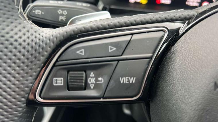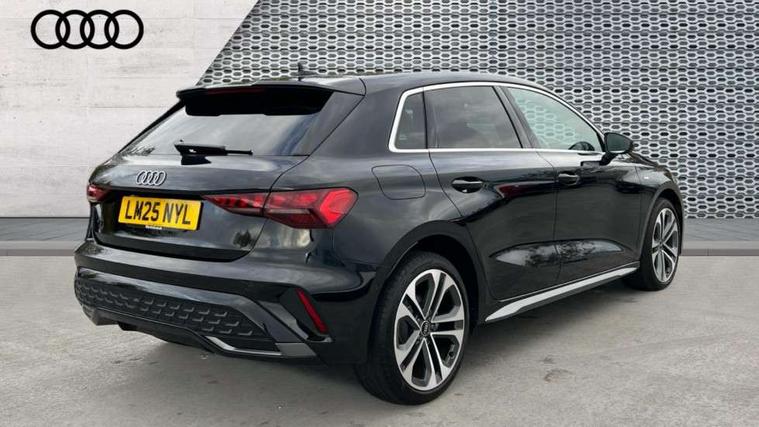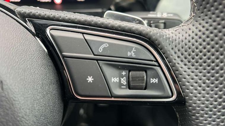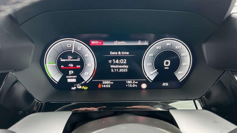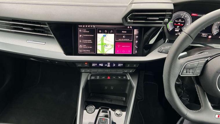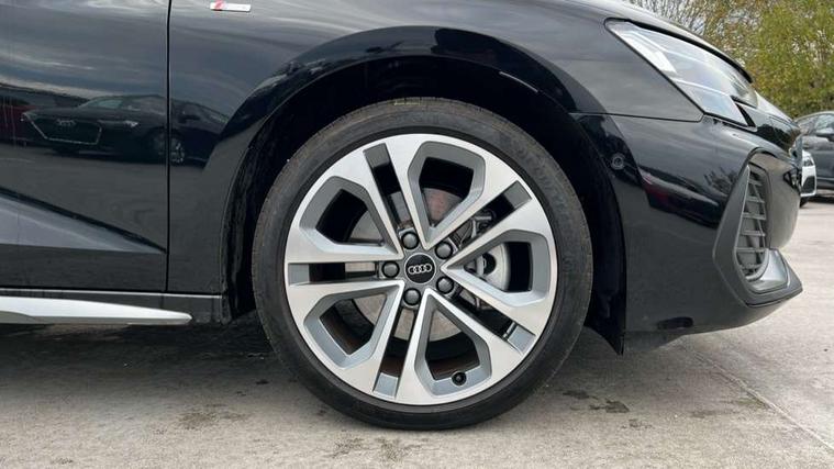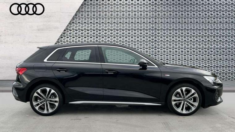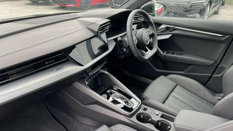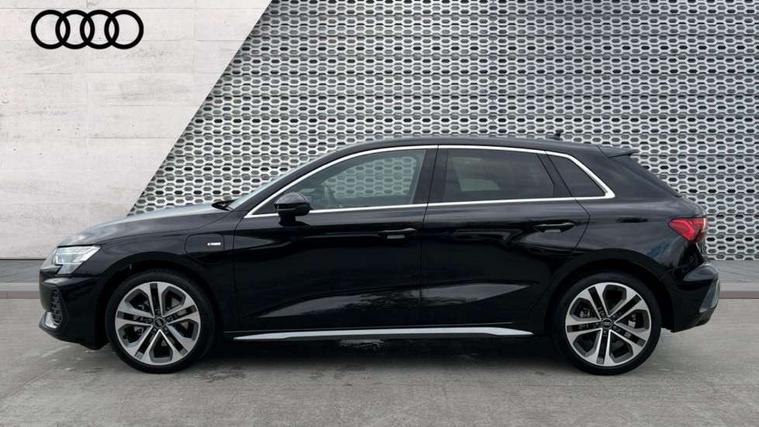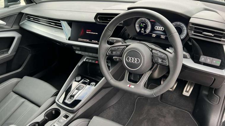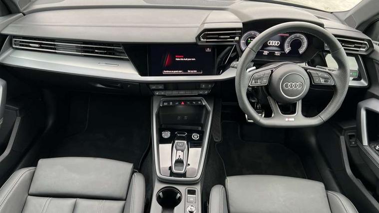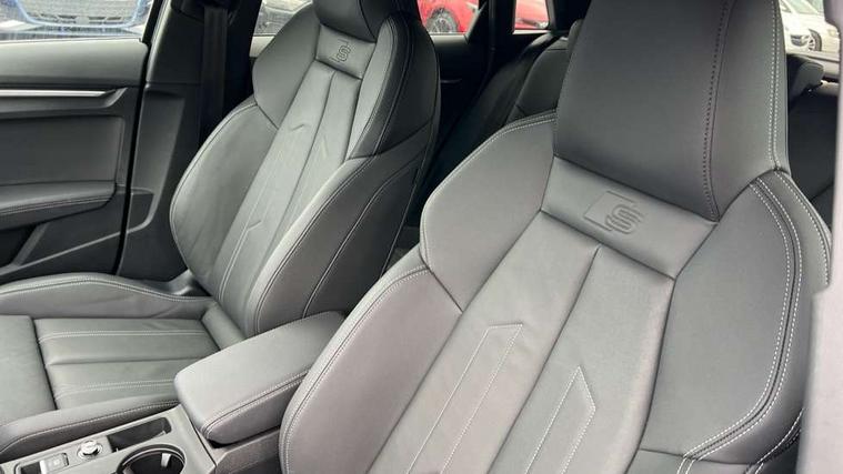 Adjustable speed limiter, Audi drive select, Audi smartphone interface with app store includes wireless Apple carplay, Android auto and Amazon alexa integration, Audi virtual cockpit plus - 12.3" full HD resolution dynamic digital instrument cluster, Automatic start/stop system with recuperation, Bluetooth interface, Camera based traffic sign recognition, Collision avoidance assistant, Cruise control, Distraction and Fatigue warning, e-Call (emergency call), Electromechanical power speed sensitive steering, Emergency assist, Lane departure warning system, MMI Navigation Plus with high resolution 10.1" colour touch screen display, Park Assist with parking system Plus, Service indicator, Trip computer, Voice control system with natural language interaction, 3 pin 10 amp domestic charging cable, CCS socket for DC charging, Charging cable for public charging, mode 3 (type 2), 32 A, Compact charging system, Industrial connector CEE 32 A, 230 V, length 1.6 m, Standard suspension, Type 2 socket for AC charging, Audi Phonebox light with wireless charging, Audi sound system - 10 loudspeakers including centre loudspeaker and subwoofer, DAB Digital radio, USB ports with charging function in the rear, Acoustic glass windscreen, All weather light, Aluminium window trim, Auto dimming frameless rear view mirror, Automatic dynamic range control, Body colour exterior mirrors, Chrome exhaust tailpipes, Dipped beam, main beam, position light and turning light, Electrically adjustable/heated/folding/auto dimming door mirrors with integrated LED indications + kerb view function for passenger side, Exterior model badging, Front and rear side air inlets in grained matt black with dark liquid chrome frame, Front electric windows, Front radiator grill in high gloss dark chrome, Heat insulating glass windscreen, Illuminated door sills with aluminium inserts at the front with S logo, Intersection light, LED 3rd brake light, LED brake lights, LED daytime running x3, LED headlights with LED rear lights and dynamic rear indicators, LED rear number plate lights, LED reverse light, LED tail lights, Light and rain sensors, Manoeuvring light, Motorway light, Privacy glass - dark tinted rear window, rear door and side windows, Rear diffuser and grill in grained matt black with inlay in dark liquid chrome, Rear electric windows, Rear side wing doors, Rear wiper, S line bumpers, S roof spoiler, Side S line emblems on front wings, Side sill trim in dark liquid chrome, Static Cornering lights, 12V socket and storage compartment in front centre console, 3 seat bench in 2nd row, 3 spoke flat bottomed leather multifunction sport steering wheel with gear shift paddles, 3-zone deluxe automatic air conditioning, 4 way electrically adjustable lumbar support for driver and front passenger, 40/20/40 split folding rear seat bench, Black cloth headlining, Black front and rear floor mats, Convenience auxiliary air conditioning, Front and rear centre armrest in artificial leather with contrasting stitching on armrests and instrument panel, Front and rear headrests, Heated front seats, Height and reach adjustable steering wheel, Manual boot compartment lid, Manually adjustable front seats, Rear centre armrest with cupholder, S badging on the steering wheel, Seat side bolsters, Single front passenger seat, Stainless steel pedals and front footrest in black, Twin leather upholstery with front sports seats S embossed logo, Aluminium interior elements pack - A3, Multi-coloured LED interior lighting package with Multi-coloured contour lighting of instrument panel - A3, 3x3 point rear seat belts, Acoustic vehicle alerting system, Driver and front passenger airbag with passenger airbag deactivation, Electronic Stabilisation Control (ESC) including ABS, ASR and EDL, First aid kit with warning triangle and 2 safety vests, Front side airbags with head airbags and interaction airbag, Hill hold assist, Pre-sense front with pedestrian and cyclist detection, Seatbelt monitoring, Tyre pressure loss indicator, Anti theft alarm, Anti-theft wheel bolts, Electronically operated child locks, Immobiliser, Remote central locking with safelock, Black dashboard, Inlay in dark aluminium spectrum, Tyre repair kit,