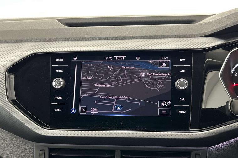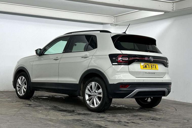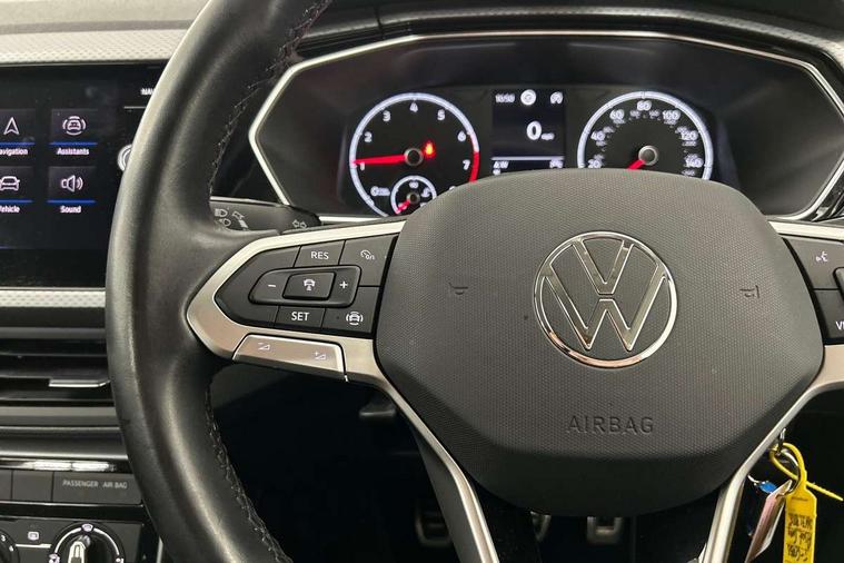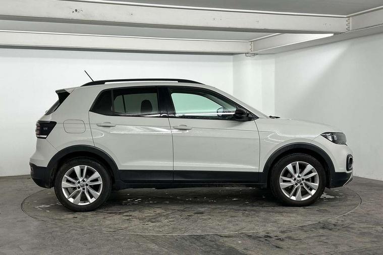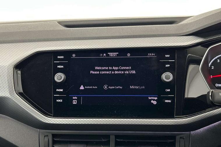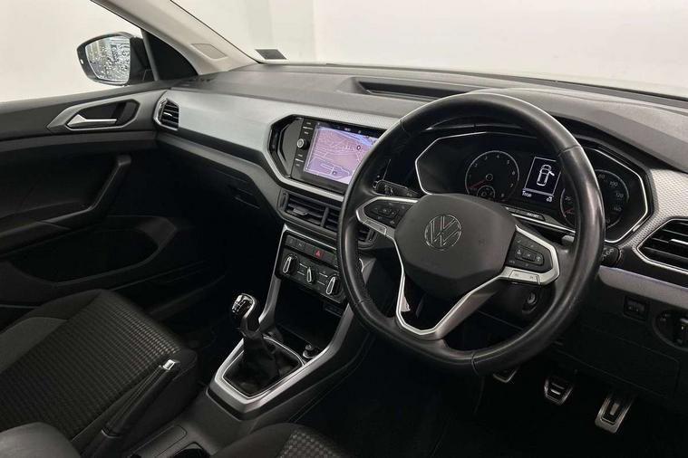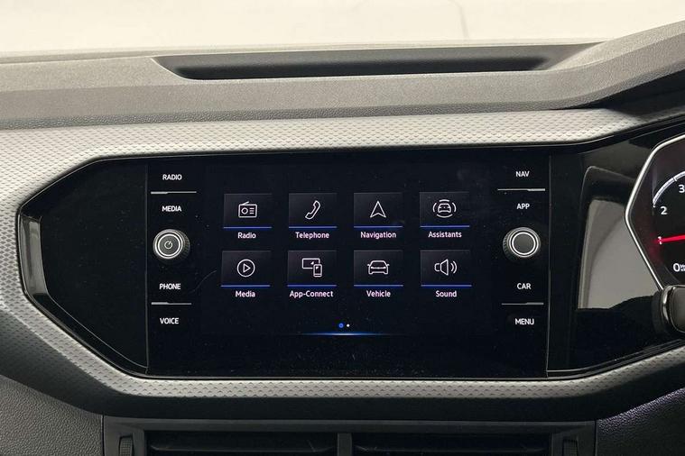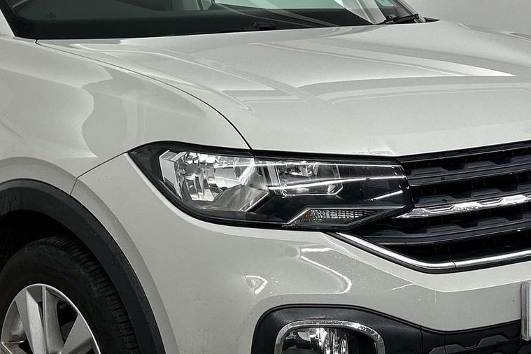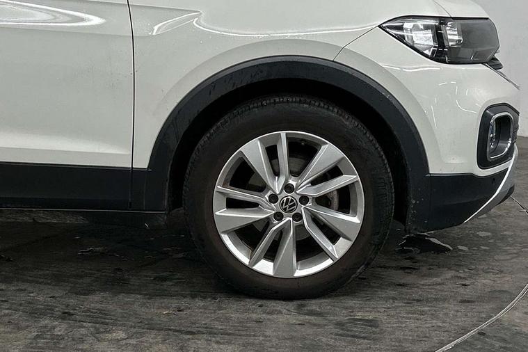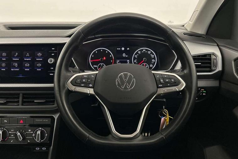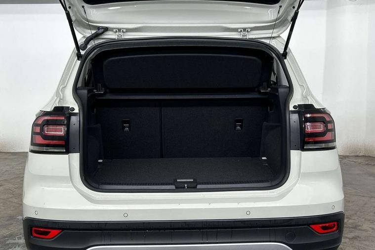 'Lights On' Reminder warning buzzer, Adaptive cruise control including front assist, forward collision warning, autonomous emergency braking, speed limiter, Blind spot monitoring, Bluetooth telephone and audio connection for compatible devices, Car information display, Driver alert system, eCall emergency call system, Lane assist, Low washer fluid warning light, Multifunction computer with visual gear change recommendation for fuel consumption, Operating permit alteration, Power assisted speed sensitive steering, Speedo, rev counter, electronic odometer, trip, service interval display, exterior temperature and fuel gauge, Stop/start system, Warning sound and light for doors and tailgate open, Warning sound and light for front seatbelts unfastened, We Connect Go Dongle, Wireless Car net app connect with Apple CarPlay, combined functionality of Apple CarPlay/Android Auto and MirrorLink, Battery regeneration during braking, Misfuel prevention device, 2x USB connection with USB charging sockets and in rear centre console, DAB Digital radio receiver, Diversity antenna for FM reception, Multi device interface (MDI) with USB connection, Music playback - MP3, WMA and AAC files, Premium USB cable for Apple or Android smartphone compatibility, Simultaneous pairing of 2 compatible mobile devices, Title and cover art display, 3D active badge on B-pillar, Active door sills, Active sill panel trims, Automatic hazard lights activation under emergency braking, Black roof rails, Body colour door handles, Body coloured bumpers, Dusk sensor + automatic driving lights, Electrically foldable, adjustable and heated door mirrors with reverse activated kerb view adjustment on passenger's side, Front and rear electric windows, Front fog lights with static cornering function, Galvanised body, Heated rear window, High level 3rd brake light, Lower door sills and door pillars in black, Radiator grille with high gloss surface and chrome strip, Rear fog light on one side, reversing light on both sides, Rear lights incorporating LED technology, Rear side wing doors, Rear tinted glass 65% approx light absorbing from B pillar backwards, Rear window aerial, Rear windscreen washer and wiper with interval delay, Reflectors in all doors, Tailgate with integrated roof spoiler, Windscreen wipers/ intermittent wipe + 4 position delay, 12V Accessory socket in centre console, 3 rear head restraints and 3 rear three point seat belts with ECE label, 3 seat bench in 2nd row, 60/40 split folding rear seat backrest, Ambient lighting and sourround lighting, Brushed stainless steel pedals, Drawer under drivers seat, Driver and front passenger sunvisor with vanity mirror, Driver's sunvisor with ticket holder, Dust and pollen filter, Front + rear carpet mats, Front and rear reading lights X 2, Front centre armrest with storage compartment, Front seat back storage pockets, Front seats with adj lumbar support, Glovebox, Heating and fresh air system with 4 stage blower, Height/reach adjust steering wheel, Instrument lighting white adjustable panel illumination, Interior light with delay, Isofix child seat preparation for 2 rear child seats, Luggage compartment cover, Luggage compartment lighting, Moveable and foldable Rear bench seat, Single front passenger seat, Storage compartment in drivers and front passengers door, Three spoke multi-function leather trimmed steering wheel and gearknob, Trapeze cloth upholstery, Variable boot floor, Winter pack - T-cross, Anti-lock Braking System (ABS) with Hydraulic Brake Assist (HBA), Automatic post collision braking system, Driver and front passenger safety-optimised head restraints, Drivers and Front Passengers airbags with front passengers airbag deactivation switch, ESC with EDL, ASR, EDTC and trailer stabilisation function, Extended and proactive pedestrian protection, Front and rear curtain airbags, Front seat side impact airbags, Height adjustable 3 point automatic front seatbelts with pretensioners, Hill start assist, Pre crash preventive occupant protection, Rear door child safety locks, Rigid safety cell with front and rear crumple zones, Single torn horn, Tyre pressure loss indicator, Volkswagen roadside assistance, Alarm with interior protection and deactivation via infotainment system, Child security locks in rear doors, Electronic engine immobiliser, Remote tailgate unlocking using key fob, Decorative strips in doors in matt silver/ center console, 17" Clayton alloy wheels + anti theft wheel bolts, Breakdown kit,