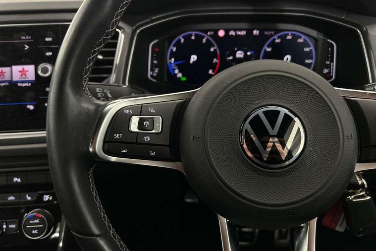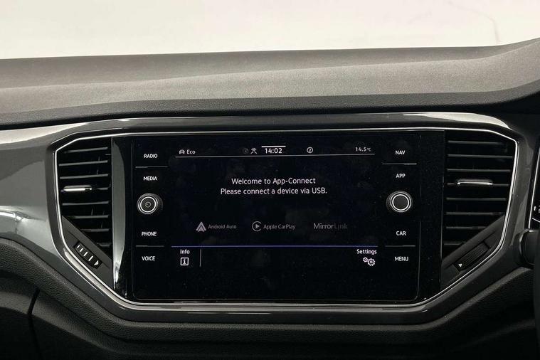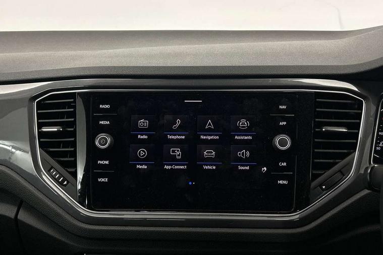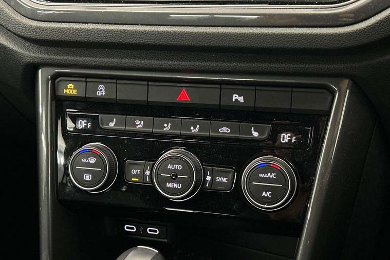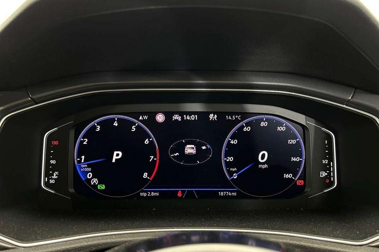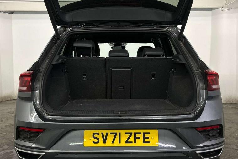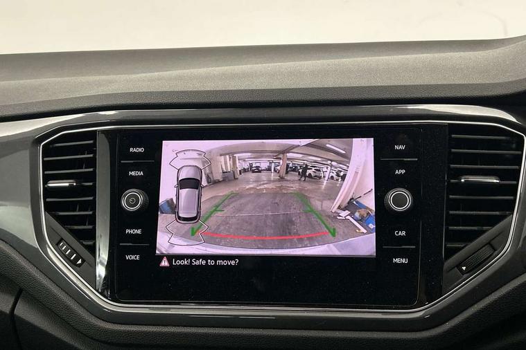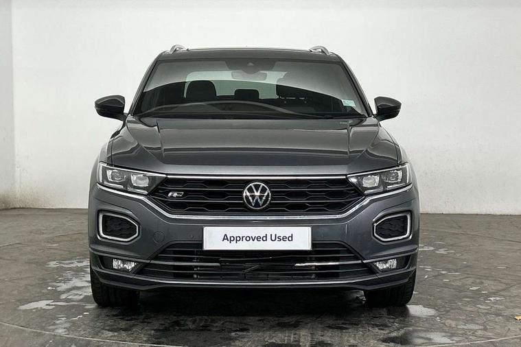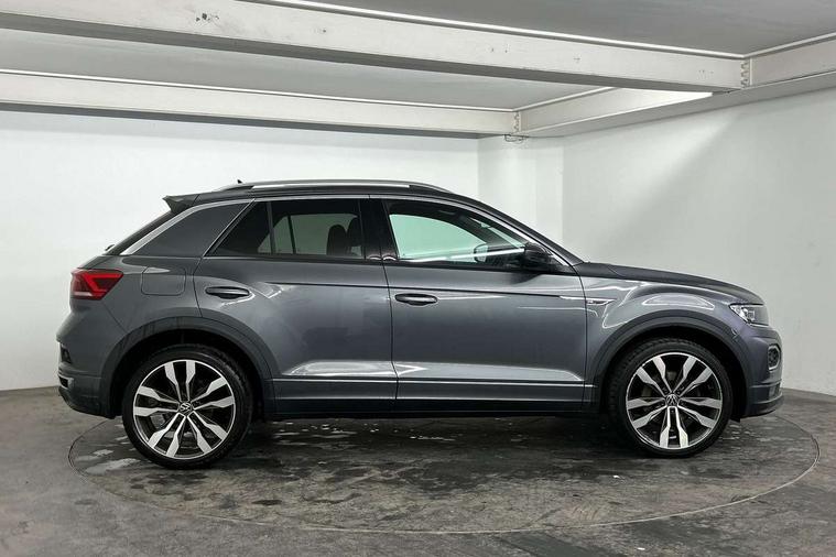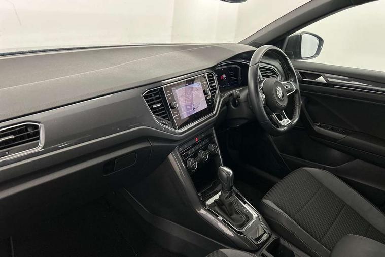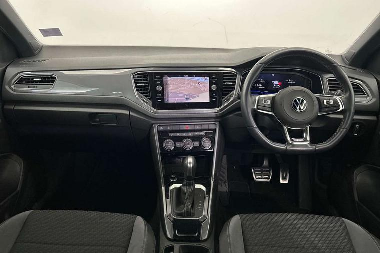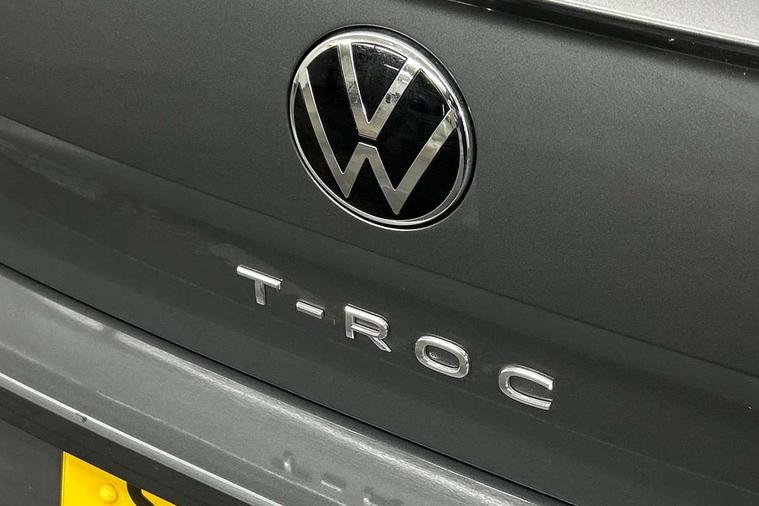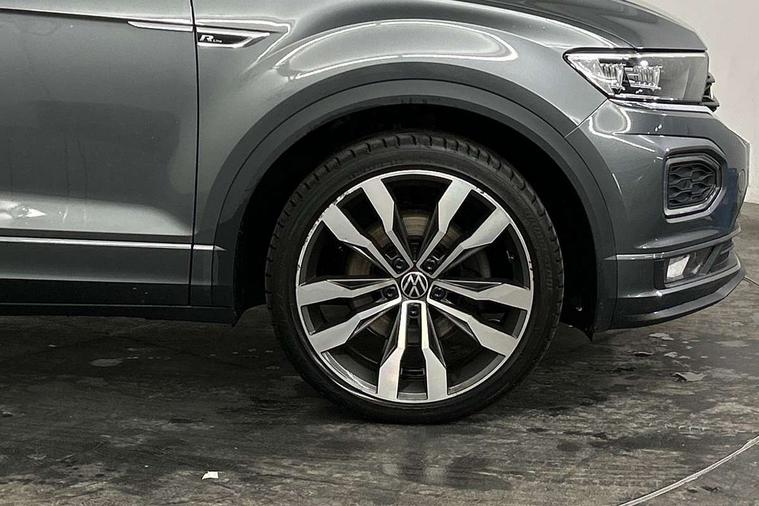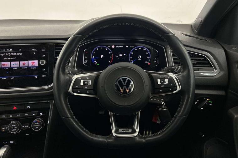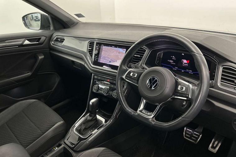 'Lights On' Reminder warning buzzer, Adaptive cruise control, Bluetooth telephone and audio connection for compatible devices, Car information display, Digital Cockpit Pro - Active info display, Driver alert system with audible and visual fatigue detection system, Driver tips and journey analysis, Emergency call service, Lane assist with warning text instrument cluster, Modified key software - reduce switch off time for key status change to Long no motion, Multifunction camera, Multifunction computer with visual gear change recommendation for fuel consumption, Navigation system discover media including streaming and internet, Service interval indicator, Think blue trainer driver tips and journey analysis, Traffic sign recognition, Voice activation, Warning sound and light for front seatbelts unfastened, Wireless app connect for apple carPlay, Battery regeneration during braking, Rear shock absorption for sports version, Start/stop function with battery regeneration, DAB Digital radio, Disk brakes in front, Diversity antenna for FM reception, Music playback - MP3, WMA and AAC files, Premium USB cable in choice of either Apple or Android smartphone compatibility, SD card slot, Simultaneous pairing of 2 compatible mobile devices, SMS functionality - read, compose and send SMS messages using touch-screen display, Storage compartment with longitudinal and height adjustable in armrest and two rear air vents, Three route options - Fast, Short, Eco, Title and cover art display, USB-C Interface and USB charging socket, Auto dimming interior rear view mirror, Automatic coming/leaving home lighting function and daytime running lights, Automatic hazard lights activation under emergency braking, Black grained lower door protectors, Body colored door lower parts, Body colour door handles, Body colour rear roof spoiler, Chrome effect left and right trapezoid exhaust tailpipe fascia surround, Chrome plated moldings, Chrome trim on upper and lower radiator grille, Dusk sensor, Dynamic headlight range control with self adjusting whilst driving, Electrically foldable, adjustable and heated door mirrors with puddle lights and reverse activated kerb-view adjustment on passenger's door mirror, External USB type C socket and charging sockets, Front and rear electric windows, Front fog lights with static cornering function, Front windscreen wiper with intermittent wipe and 4 position delay, Fully galvanised body, Heated rear window, Heated windscreen washer jets, High level 3rd brake light, LED darkened rear light clusters, LED headlamps with automatic range adjustment and unique signature LED separate daytime running lights, LED rear number plate lights, LED tail lamp rear comination lamps, Privacy glass, R-Line design body coloured bumpers, Rain sensor, Rear tinted glass from B-pillar backwards approx 65% tinted, Rear wash/wipe with intermittent wipe setting, Silver anodised roof rails, Volkswagen roundel, 12V socket in centre console storage area, 3 rear head restraints, 4 load lashing points in luggage compartment, Aluminium pedals, Black roof lining and sun visors, Branded points of interest, Carbon flag cloth upholstery, Chrome plated radiator grille inserts, air vent surrounds and light switch surrounds, Climate control - 2 zone electronic air conditioning with automatic air recirculation and allergy filter, Door and side trim panel, Door and side trim panel in foam film, insert in leatherette, Drawer under drivers seat, Front + rear carpet mats, Front centre armrest, Front cupholders x 2, Front seat back storage pockets, Front sports seats with R-Line logo on seat backrest, Glovebox, Heated front seats, Height adjustable front seats, Height/reach adjust steering wheel, Instrument lighting, white adjustable panel illumination, Interior light delay, Interior light in footwell, Isofix easy fit child seat preparation for 2 outer rear seats, Leather gearshift knob, Leather multi function sport steering wheel with gear change selection via paddle shift on steering wheel, LED interior light with switch off delay/dimmer and 2 front/rear LED reading lights, Load through provision with single cup holder when folded down, Luggage compartment cover, removable, Luggage compartment lighting, R Line badge, Scuff plates in door apertures, Split folding rear seat backrests with centre armrest, Stainless steel pedals, Storage compartment in left and right luggage area, Storage compartment in rear doors, Storage compartments in driver and front passenger doors, Sunvisors with illuminated vanity mirrors, Unique R Line door sill protectors, White ambient lighting, R line styling pack - T-Roc, Winter pack - T-Roc, 3 rear three point seatbelts, ABS, Curtain airbags, Driver and front passenger safety-optimised head restraints, Drivers and front passengers airbags with passengers deactivation switch, Drivers seatbelt reminder, Electronic parking brake with auto hold, Electronic stability control (ESC) includes ASR, EDL, EDTC and trailer stabilisation function, Front assist with city emergency braking and pedestrian monitoring, Front seat side impact airbags, Hill start assist, Predictive pedestrian protection, Rigid safety cell with front and rear crumple zones, Single tone horn, Three point height adjust front seatbelts + pretensioners, Tyre pressure loss indicator, Ventilated front and rear disc brakes, Volkswagen roadside assistance, Alarm with remote central locking and interior protection, Electronic engine immobiliser, Remote central locking with SAFELOCK, radio remote control with 2 remote control folding keys, Shadow grey decorative inserts in dash, centre console and door panel, 19" Suzuka alloy wheels with low rolling resistance tyres and anti wheel bolts,