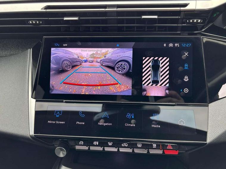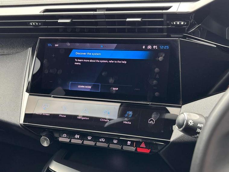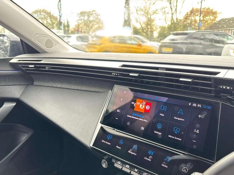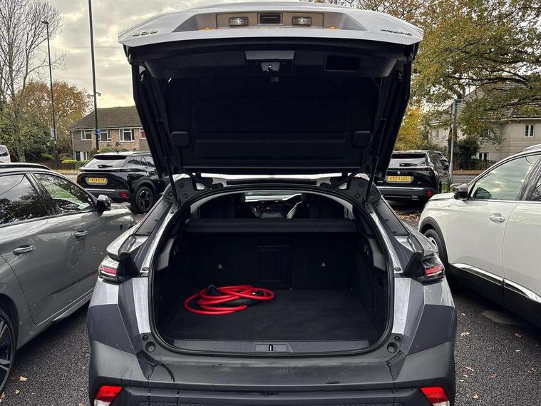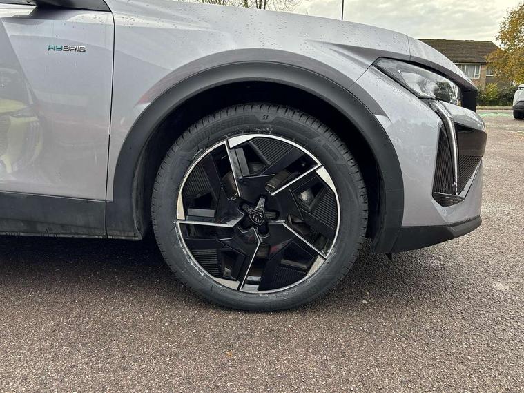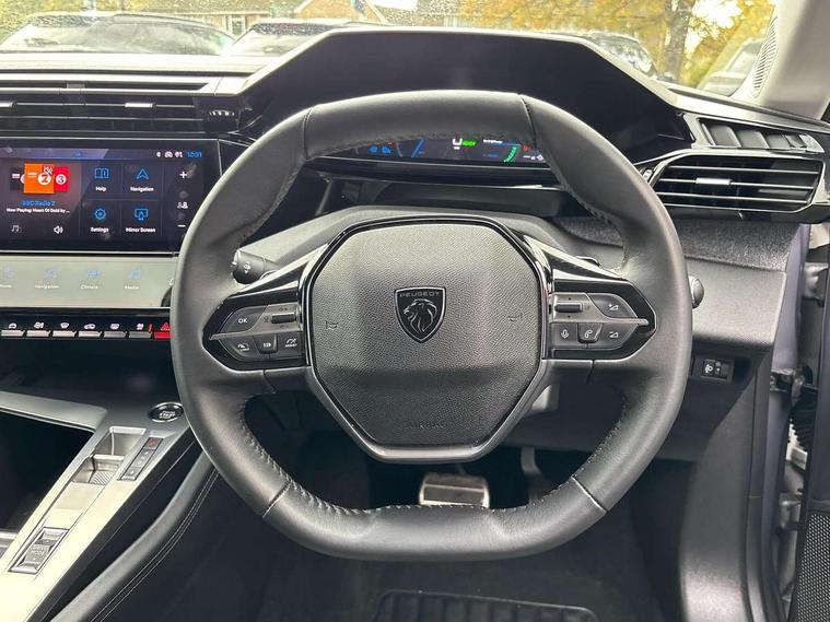 Bluetooth telephone facility, Compact automatic gearbox impulse selector, Driver attention warning, Driver's profile setting, e-remote Control for charge management and cabin pre-conditioning, Emergency call service, Extended traffic sign recognition, Exterior temperature indicator with ice warning, Front and rear parking sensors, Intelligent speed adaptation, Lane keep assist, Multi driving mode selector - Electric/HYBRID /Sport mode, Multi function trip computer, PEUGEOT i-Cockpit with 10" digital instrument panel display, PEUGEOT i-Cockpit with 10.0" high definition (HD) capacitive touchscreen, PEUGEOT i-Cockpit with compact steering wheel, PEUGEOT i-Connect Advanced - Over the air updates, Programmable cruise control and speed limiter, Speed limit recognition and recommendation, Wireless apple car play/android Auto, Mode 3 type 2 cable for wallbox charging, 2x USB sockets in front, 2x USB sockets in rear, DAB Digital radio, High performance loudspeakers including 4 woofers (165mm) in doors and 2 tweeters (25mm) in A-pillars, PEUGEOT i-Cockpit with PEUGEOT configurable i-Toggles, 3rd brake light, 408 Model designation badges on front and rear, Acoustic laminated front windows, Acoustic tinted windscreen, Automatic hazard light activation upon heavy brake application, Body colour door handles, Body colour rear spoiler, Dark tinted rear side and tailgate windows, EcoLED headlights, Electric heated and power folding door mirrors with courtesy approach lighting, Electrochrome rear view mirror, Front and rear electric windows with one touch/anti pinch, Front grille with horizontal chrome stamping, Gloss black finish B pillar, Gloss black rear cluster connecting strip, High beam assist, LED rear number plate lights, LED side indicator lights integrated into door mirrors, Lower body and wheel arch "SUV style" protection, Nera black door mirrors, PEUGEOT signature LED front daytime running lights incorporating indicators, Rear bumper grained black, Rear full LED 3D peugeot signature claw effect lights with daylight function, Rear Hybrid badging, Rear reversing lights, Rear side wing doors, Roof mounted 'fin' style antenna, Tailgate with heated rear windscreen and wiper blade, 1/3 to 2/3 split folding rear seats, 2x 12V sockets, 3 seat bench in 2nd row, 4 Grab handles retractable and damped, Ambient lighting linked to drive mode on door panels, Central front armrest with storage compartment, Driver and passenger seat manual adjustment for height, slide and backrest angle, Driver seat lumbar adjustment, Dual Zone automatic air conditioning with AQS 3, Dynamic front seats, Electric power steering with reach and rake adjustable steering column, Fractil embossed fabric with Isabella leather effect trim and cloth upholstery, Front central console with two cup holders, Front passenger seat, Gloss black waistbelt (window weather strips), Glovebox with LED lighting, Multifunction split leather and gloss steering wheel, Rear central armrest with cupholder, Roof lining - light grey, Seatbelt unfastened on the move audible and visual alert for front and rear seats, Ski hatch with central rear armrest with cup holder, Steering wheel mounted gearshift paddles, Sunvisor with concealable vanity mirrors with LED lighting, Drive assist plus pack - 408, Visibility pack - 408, 2x Isofix child seat fitting on outer rear seats, 3x3 point rear seat belts, ABS + EBD + EBA, Active safety brake with night function/cyclists/pedestrians, Adaptive driver and front passenger airbags with passenger airbag deactivation function, Automatic post collision braking, Child locks on rear doors, Driver/front passenger side airbags, Electronic parking brake, ESP, Front and outer rear seatbelts with pyrotechnic pretensioners, Front and rear curtain airbags, Front and rear disc brakes, Front optimised safety headrests and rear retractable headrests (x3), height adjustable, Front three point retractable seatbelts with force limiters, Hill start assist, Indirect tyre under inflation detection, 2x keys, Acoustic vehicle alert system (AVAS), Anti-theft wheel bolts, Automatic door locking when moving off, Deadlocking system, Electronic code immobiliser, Peugeot open and go system includes keyless entry with push start button, Thatcham cat. 1 alarm with anti lift sensor, 19" Graphite diamond cut alloy wheels in Onyx black gloss, Alloy wheel 'star' centre cap, Tyre puncture repair kit,