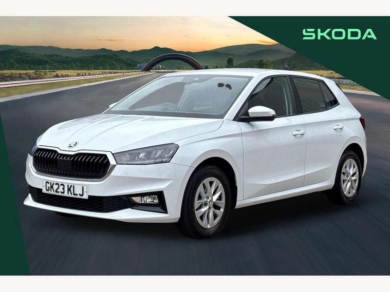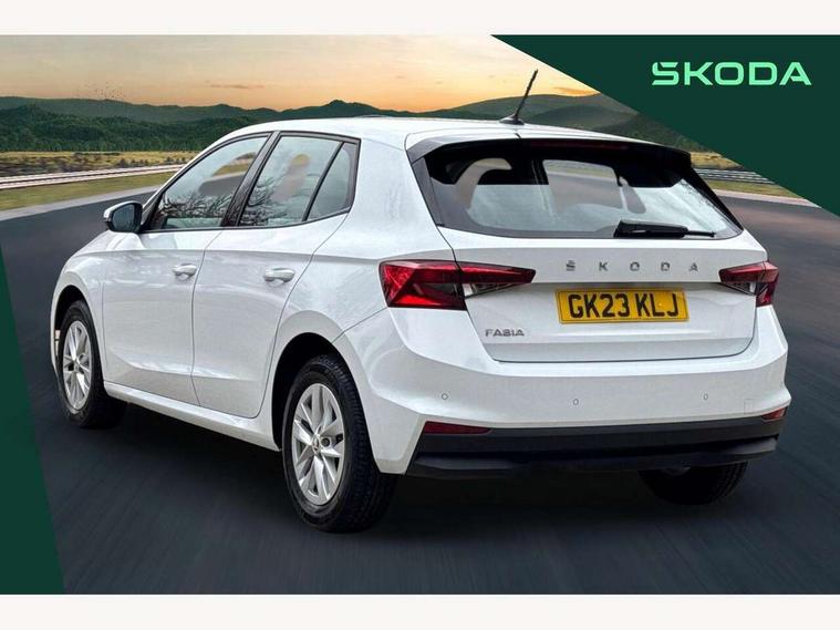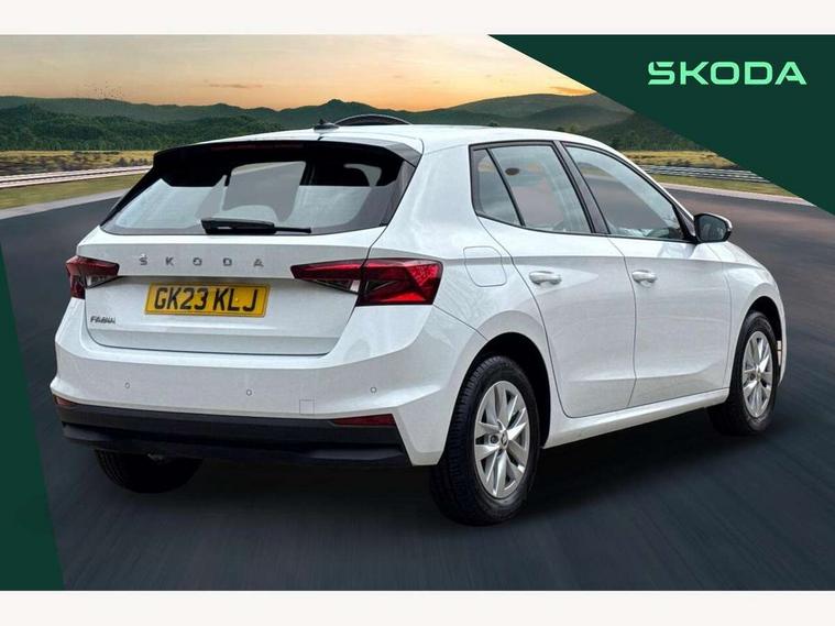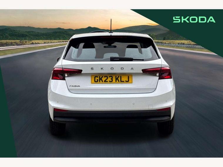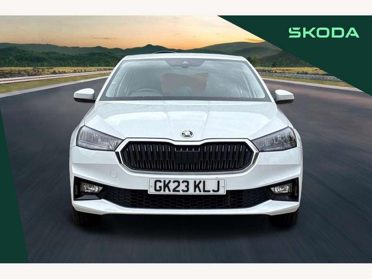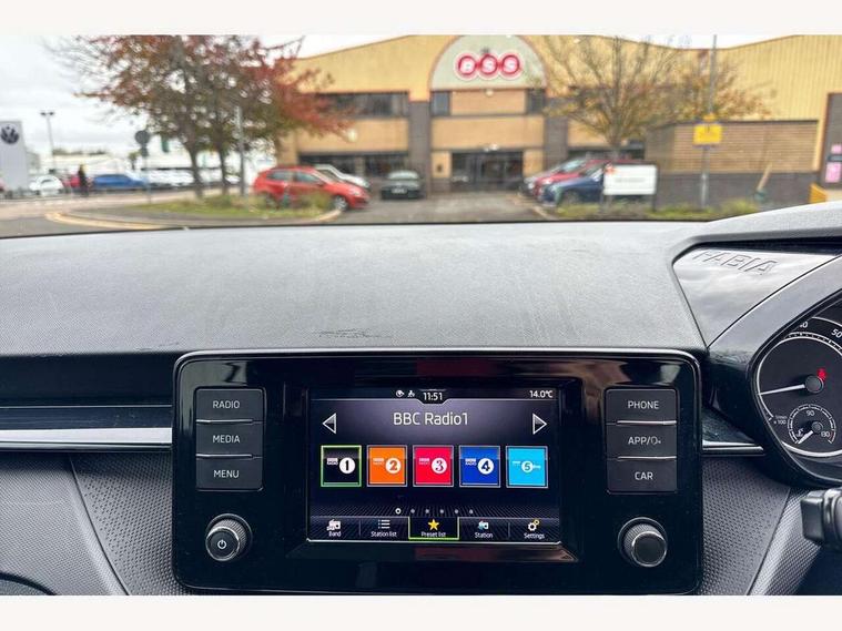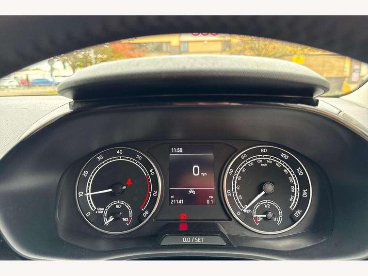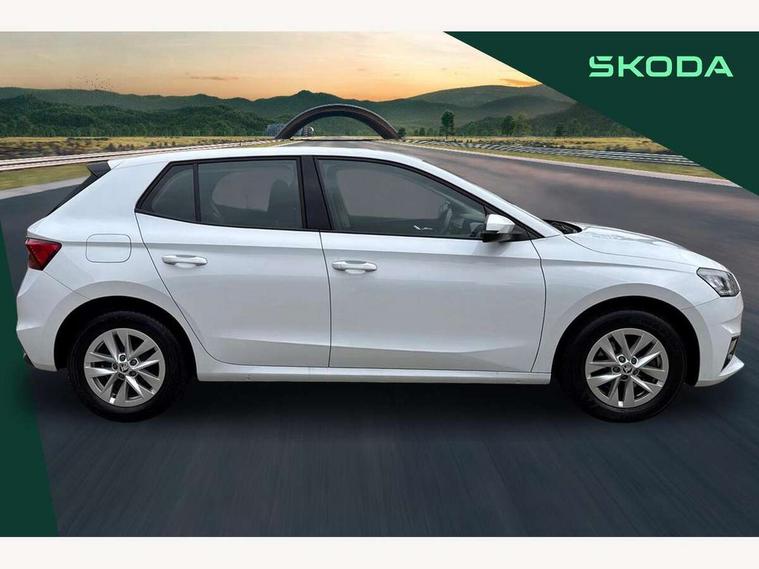 Bluetooth connection, Driver alert system - DAS, Electromechanical power steering, Exterior temperature gauge, Lane assist including road edge detection, Multifunction trip computer in black and white, Service interval indicator, Speed limiter, 2x USB-C in the front (for data transmission and charging), 4 speakers in front, Auxiliary socket for external MP3 player, DAB digital radio reception, Radio Swing with 6.5" colour display, Basic LED Headlights, Basic rear lights, Body colour door mirrors, Body coloured bumpers, Dimming rear view mirror with black frame, Door mirror integrated indicators, Electrically adjustable and heated door mirrors, Electrically adjustable front windows with function auto up/down, Front fog lights, Front window wiper intermittent control, Headlight range control - Automatic, Ice scraper in fuel cap, LED daytime running lights with coming and leaving home feature, Mechanical adjustable rear windows, Rain sensor, Rear LED fog light, Rear side wing doors, Rear window wiper with washing nozzles, Roof mounted spoiler, SKODA tailgate lettering in chrome, Third brake light, 2 reading lights in front and 2 reading lights in rear, 2 spoke leather multifunction steering wheel, 3 rear headrests, Backrest split and folding, Central console with fixed cup holder and storage box, Chrome handbrake release button, Fabric upholstery, Gearshift knob/handle in leather, Grain satin black interior door handles, Hand brake lever handle in leather, Height adjustable front headrests, Height adjustable front seats, Height adjustable steering wheel, ISOFIX and TopTether anchorage points to the outer rear seats, ISOFIX and TopTether on the front passenger seat, Luggage compartment lighting, Manual air conditioning, Manually adjustable lumbar support in front seats, Pollen filter, Rear seat bench unsplit, Single front passenger seat, Storm grey headlining, Sun visors with mirror and airbag label on passenger side, Ticket holder, 3-point height adjustable front seats belts with pretensioner and force limiter, Automatic warning lights in case of crash, Driver and passengers airbag with switch off function, e-Call+, ESC including ABS, MSR, ASR, EDS, HBA and XDS, Front and rear seat belt warning, FRONT ASSIST (AEB City and AEB Inter Urban), Front side airbags, Head airbags, One tone horn, Pedestrian protection, Three rear 3-points safety seat belts with pretensioner and force limiter including stop function for outer rear seat belts, Tyre pressure monitoring system, Anti-theft alarm system including immobiliser, interior monitoring, backup horn, and towing protection, Central locking with radio remote control, interior controls, SAFE function and 2 foldable keys, Black painted air vents, Glossy black decorative trim, Grain satin black central console cover, Grain satin black lower decorative trim, Satin black door and side trim panel in front, Anti-theft wheel bolts protection, Super-low rolling resistance tyres,