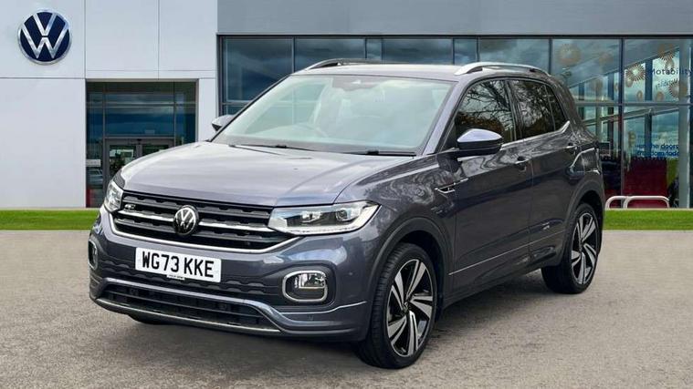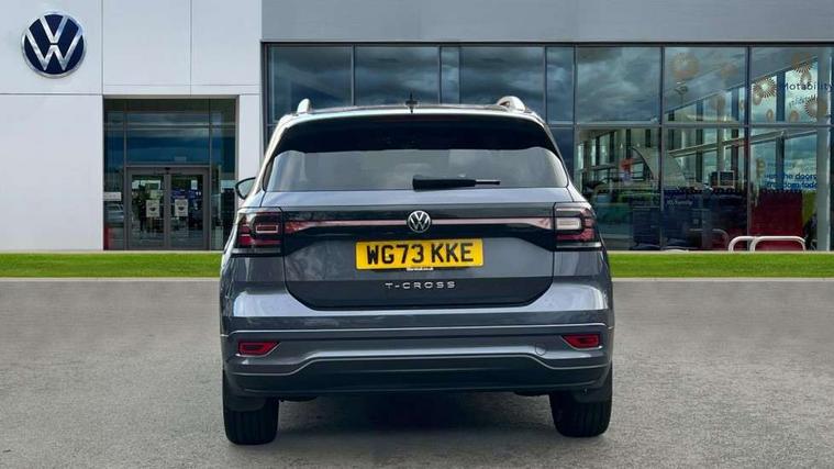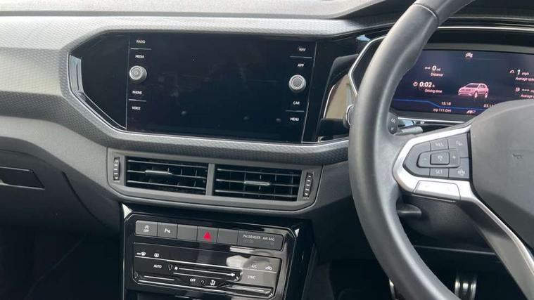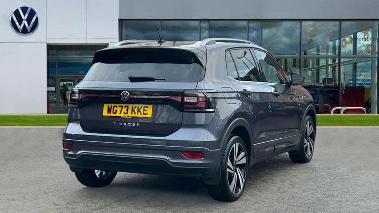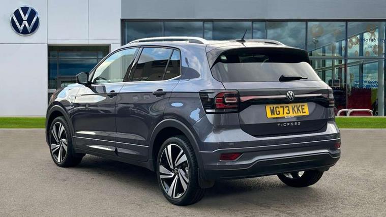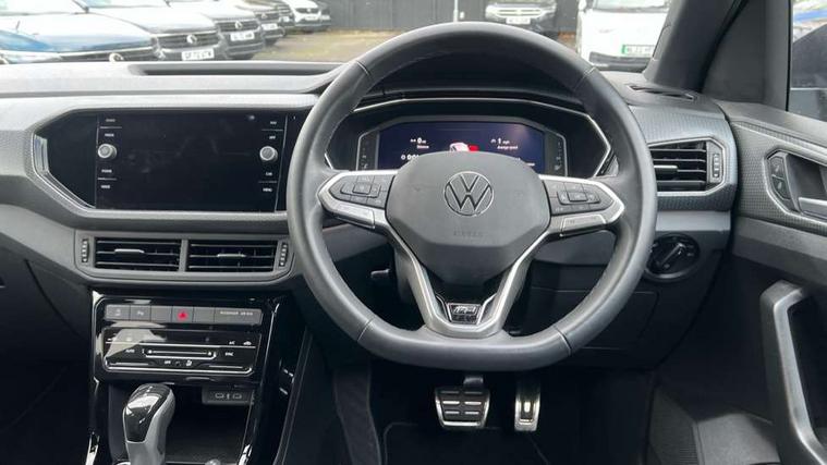 'Lights On' Reminder warning buzzer, 2D/3D map view, Active info display - 10.25" High resolution TFT dash display screen, Adaptive cruise control including front assist, forward collision warning, autonomous emergency braking, speed limiter, Blind spot monitoring, Bluetooth telephone and audio connection for compatible devices, Car information display, Driver alert system, eCall emergency call system, Lane assist, Low washer fluid warning light, Multifunction computer with visual gear change recommendation for fuel consumption, Operating permit alteration, Power assisted speed sensitive steering, Speed limit display, Speedo, rev counter, electronic odometer, trip, service interval display, exterior temperature and fuel gauge, Stop/start system, Tailgate, Warning sound and light for doors and tailgate open, Warning sound and light for front seatbelts unfastened, We connect plus preparation, Wireless Car net app connect with Apple CarPlay, combined functionality of Apple CarPlay/Android Auto and MirrorLink, Battery regeneration during braking, Misfuel prevention device, 2x USB connection with USB charging sockets and in rear centre console, DAB Digital radio receiver, Diversity antenna for FM reception, Multi device interface (MDI) with USB connection, Music playback - MP3, WMA and AAC files, Premium USB cable for Apple or Android smartphone compatibility, Simultaneous pairing of 2 compatible mobile devices, SMS Functionality, Three route options - Fast, Short, Eco, Title and cover art display, Automatic hazard lights activation under emergency braking, Body colour door handles, Body colour door mirrors with integrated indicators, Body colour rear roof spoiler, Body coloured bumpers, Dusk sensor + automatic driving lights, Electrically foldable, adjustable and heated door mirrors with reverse activated kerb view adjustment on passenger's side, Front and rear electric windows, Front fog lights with static cornering function, Galvanised body, Heated rear window, LED third brake light, Lower door sills and door pillars in black, Radiator grille with chrome trim and chrome bezel front fog lamp, Rear fog light on one side, reversing light on both sides, Rear lights incorporating LED technology, Rear side wing doors, Rear tinted glass 65% approx light absorbing from B pillar backwards, Rear window aerial, Rear windscreen washer and wiper with interval delay, Reflectors in all doors, Silver roof rails, Stainless steel door sill protection, Tailgate with integrated roof spoiler, Unique R Line badging, Windscreen wipers/ intermittent wipe + 4 position delay, 12V Accessory socket in centre console, 2 Front and rear reading lights incorporating LED technology, 2 Zone electronic climate control with automatic air recirculation, 3 rear head restraints and 3 rear three point seat belts with ECE label, 3 seat bench in 2nd row, 60/40 split folding rear seat backrest, Ambient lighting and sourround lighting, Black headlining, Branded points of interest, Brushed stainless steel pedals, Carbon flag cloth upholstery, Drawer under drivers seat, Driver and front passenger sunvisor with vanity mirror, Driver's sunvisor with ticket holder, Dust and pollen filter, Front and rear carpet mats with contrast stitching, Front centre armrest with storage compartment, Front footwell illumination, Front seat back storage pockets, Front seat R Line logo with rear seat backrest, Front sports seat with height and lumbar adjustment, Glovebox, Heating and fresh air system with 4 stage blower, Height/reach adjust steering wheel, Instrument lighting white adjustable panel illumination, Interior light with delay, Isofix child seat preparation for 2 rear child seats, Leather trimmed three spoke multifunction steering wheel with contrast stitching and aluminium inserts with R Line logo, Luggage compartment cover, Luggage compartment lighting, Moveable and foldable Rear bench seat, Scuff plates in door apertures, Steering wheel paddle shift, Storage compartment in drivers and front passengers door, R Line styling pack - T-cross, 3-point seat belts in front with electric tensioner + height adjustment, Anti-lock Braking System (ABS) with Hydraulic Brake Assist (HBA), Automatic post collision braking system, Driver and front passenger safety-optimised head restraints, Drivers and Front Passengers airbags with front passengers airbag deactivation switch, ESC with EDL, ASR, EDTC and trailer stabilisation function, Front and rear curtain airbags, Front seat side impact airbags, Hill start assist, Pre crash preventive occupant protection, Proactive passenger protection system in combination with front assist, Rear door child safety locks, Rigid safety cell with front and rear crumple zones, Single torn horn, Tyre pressure loss indicator, Volkswagen roadside assistance, Alarm with interior protection and deactivation via infotainment system, Child security locks in rear doors, Electronic engine immobiliser, Remote tailgate unlocking using key fob, Race decorative inserts in dash and doors, 18" Nevada black alloy wheels, Breakdown kit,