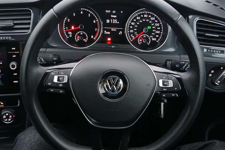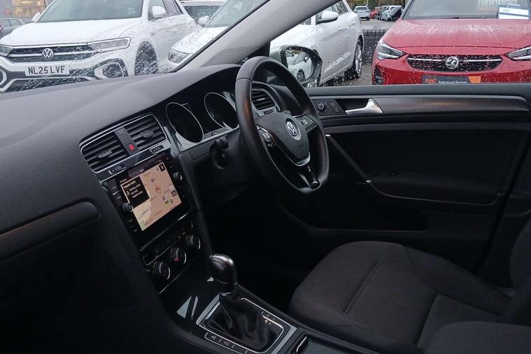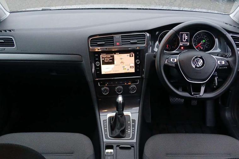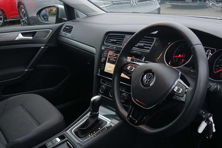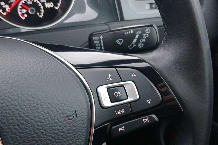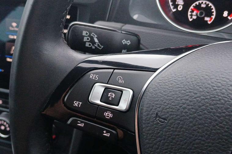 'Lights On' Reminder warning buzzer, ACC - Adaptive cruise control with front assist, forward collision warning, distance monitoring, city emergency brake and speed limiter, Bluetooth telephone and audio connection for compatible devices, Brake pad wear indicator warning light, Driver alert system, Driver profile selection, Driving Mode Selection with four preset modes - Eco, normal, sport or individual modes, Instrument cluster in white, Multifunction computer with visual gear change recommendation for fuel consumption, Power assisted speed sensitive electro-mechanical steering, Push tank flap, Speedo, rev counter, electronic odometer, trip, service interval display, exterior temperature and fuel gauge, Stop/start system, Warning buzzer and light for front seatbelts unfastened, Battery regeneration during braking, XDS electronic differential lock, Composition media system, DAB Digital radio receiver, Driver Personalisation profile selection, MP3/WMA compatability, Multi device interface (MDI) with USB connection, Personalisation 1.1 profile for media, Premium USB cable in choice of either Apple or Android smartphone compatibility, SD card slot, SMS Functionality, USB and SD card connectivity, Black front air intake and radiator grille with chrome insert, Black rear diffuser, Black roof rails, Body colour bumpers, Body colour door handles, Body colour door mirrors with integrated indicators, Dusk sensor + automatic driving lights, Electric front windows, Electric rear windows, Electrically adjustable and heated door mirrors, Fully galvanised body, Heated rear windscreen, Hidden exhaust pipe, High level 3rd brake light incorporating LED Technology, LED daytime running lights, LED front fog lights with static cornering light function, LED rear lights, Rear fog lamp, Rear tinted glass 65% light absorbing from B pillar backwards, Rear window aerial, Rear window wash/wipe with intermittent wipe, Reflectors in all doors, Tailgate with integrated rear roof spoiler, Windscreen wipers/ intermittent wipe + 4 position delay, 12V socket in luggage compartment, 3 rear headrests, 4 load lashing points in luggage compartment, 60/40 split folding rear seat backrest, Auto fold down lever in rear seat backrest, Bag hook in luggage compartment x 2, Cooled glovebox, Cupholder cover, Dust/pollen filter, Front and rear reading lights incorporating LED technology, Front centre armrest with storage compartment and two rear air vents, Front seat back storage pockets, Grab handles front x 2, rear x 2 with integrated coat hooks, Height adjustable driver's seat, Height and reach adjustable steering wheel, Illuminated vanity mirrors, Instrument lighting white adjustable panel illumination, Interior light delay, Isofix preparation for 2 rear child seats, Load through provision with rear centre armrest and cupholders x2, Luggage compartment lighting, Overhead storage box, Passenger underseat drawer, Pearl grey headlining, Storage box in luggage compartment, Storage compartment in roof console with cover, Storage compartments in centre console, Storage compartments in front doors, Storage compartments in rear doors, Stowable luggage compartment cover, Sun visors, Variable boot floor, height adjustable and removable, Convenience Pack - Golf, Light and Sight pack - Golf, Mirror pack - Golf, 3 rear three point seatbelts, Airbags - Driver's and front passenger's, curtain airbag, Driver's knee, front side impact and passenger's airbag deactivation switch, Anti-lock Braking System (ABS) with Hydraulic Brake Assist (HBA), Automatic post collision braking system, Child locks on rear doors, Driver/Passenger optimised head restraints, Electronic parking brake with auto hold, Electronic stability control (ESC) including Electronic differential lock (EDL) and ASR (Traction control) with deactivation via infotainment system, Front ventilated disc brakes and rear disc brakes, Pre crash preventive occupant protection, Three point height adjustable front seatbelts with tensioners, Tyre pressure loss indicator, Alarm with interior protection and deactivation via infotainment system, Electronic engine immobiliser, Remote central locking with 2 remote folding keys, Brushed dark silver decorative inserts in dash and door panels, Chrome plated air vent surround, Chrome plated electric mirror adjustment light switch surround, Polar night black centre console, Steel space saver spare wheel,