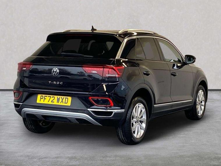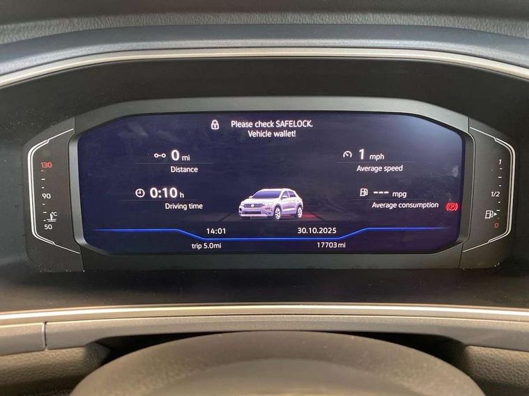10.25" Digital cockpit pro, Bluetooth mobile phone interface, Driver alert system with fatigue detection, Driver tips and journey analysis, Dynamic road sign display, Emergency call service, Lane keeping system Lane Assist, Modified key software - reduce switch off time for key status change to Long no motion, Online services, Park assist including front and rear parking sensors, Power assisted speed sensitive steering, Service interval indicator, Tailgate/trunk lid release from outside, Think blue trainer driver tips and journey analysis, Warning sound and light for front seatbelts unfastened, Wireless app connect, Battery regeneration during braking, Front shock absorption, Rear shock absorption chassis with increased ride height, Start/stop function with battery regeneration, Diversity antenna for FM reception, Front and rear 6 speakers, Music playback - MP3, WMA and AAC files, Premium USB cable in choice of either Apple or Android smartphone compatibility, SD card slot, Simultaneous pairing of 2 compatible mobile devices, Title and cover art display, We Connect and We Connect Plus functionality, 3rd brake light, Auto dimming interior rear view mirror, Automatic hazard lights activation under emergency braking, Automatic headlight control with LED separate daytime running lights with coming/leaving home function, Body colour sports bumpers with silver metallic underbody fascia, Dynamic headlight range control with self adjusting whilst driving, Extended roof spoiler, Exterior mirrors aspherical on driver side, convex on front passenger side, External USB type C socket and charging sockets, Front windscreen wiper with intermittent wipe and 4 position delay, Heated rear window, LED Plus headlamps, LED rear combination lamps, LED rear number plate lights, LED tail lamp rear comination lamps, Light mode for poor weather, rain, fog or snow, Power windows with comfort operation and circuit breaker, Rain sensor, Rear exhaust tailpipe, Rear fog light on one side and reversing lights on both sides, Rear side wing doors, Rear wash/wipe with intermittent wipe setting, Remote electrically foldable door mirrors, puddle lights and reverse activated passenger's door mirror, 12V power socket in centre console, 3 rear head restraints, 3 seat bench in 2nd row, 4 load lashing points in luggage compartment, Air care climatronic air conditoning system with active combination filter and 2-zone temperature control, Chrome plated radiator grille inserts, air vent surrounds and light switch surrounds, Door and side trim panel with leatherette insert, Drawer under drivers seat, Front + rear carpet mats, Front centre armrest, Front comfort sports seats, Front cupholders x 2, Front footwell illumination, Instrument lighting, white adjustable panel illumination, Interior ambient lighting and surround lighting, Interior light delay, Isofix child seat preparation, Leather gearshift handle, LED interior light with switch off delay/dimmer and 2 front/rear LED reading lights, Load-through provision with cup holder when folded down ('Unsplit rear seat bench, split folding backrest, with centre armrest), Luggage compartment lighting, Non-folding front passenger seat backrest, Single front passenger seat, Storage compartment in left and right luggage area, Storage compartment in rear doors, Storage compartments in driver and front passenger doors, Sunvisors with illuminated vanity mirrors, Variable boot floor, height adjustable and removable, Driver assistance pack without proactive passenger protection - T-Roc, 3 point height adj front seatbelts + pretensioners, 3 point seatbelts in outer rear with ECE label, ABS, Child locks on rear doors, Driver and front passenger airbag with front passenger airbag deactivation, Driver and front passenger safety-optimised head restraints, Drivers seatbelt reminder, Electronic parking brake, Electronic Stability Control (ESC) inc EDL (Electronic Differential Lock) and ASR (Traction Control), Front and rear passengers curtain airbag system including front side airbags, Front assist with city emergency braking and pedestrian monitoring, Front disc brakes, Front seat side impact airbags, Predictive pedestrian protection, Rear disc brakes, Single tone horn, Tyre pressure loss indicator, Volkswagen roadside assistance, Alarm with interior protection, Anti-theft alarm system with interior monitoring, backup horn, and towing protection, Remote central locking with SAFELOCK, radio remote control with 2 remote control folding keys, Trims for alloy wheels,