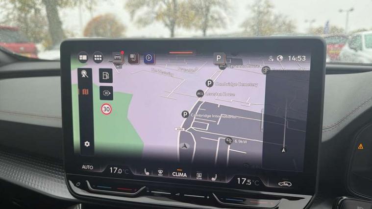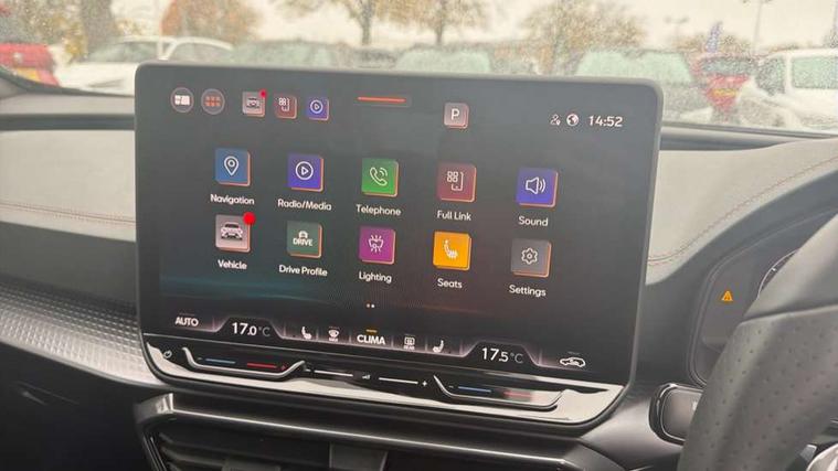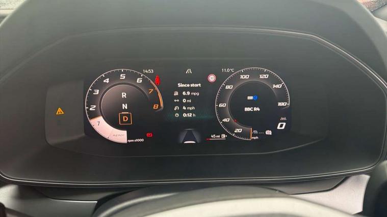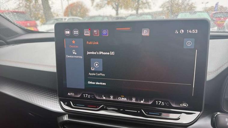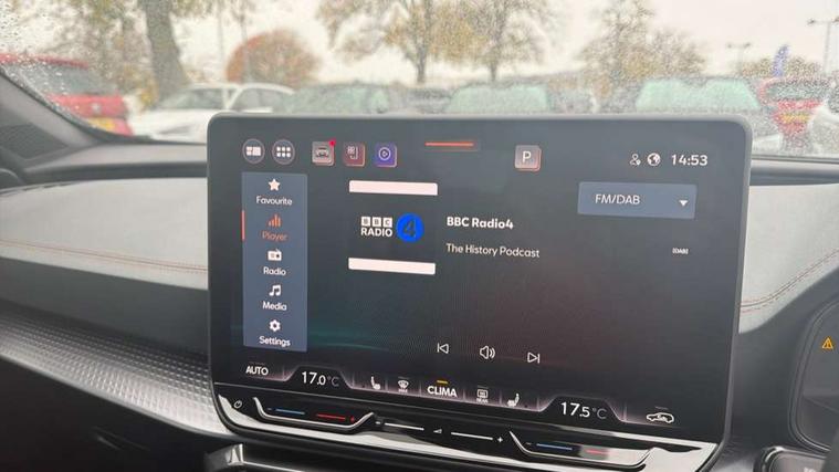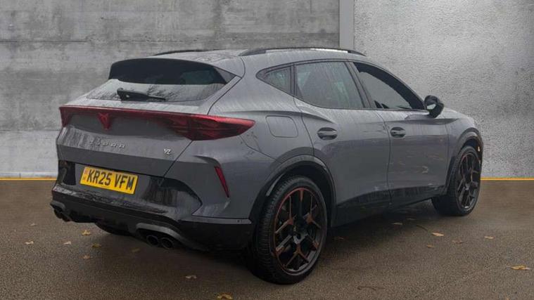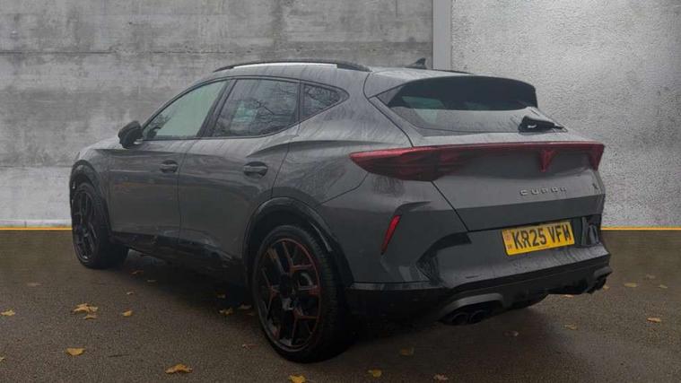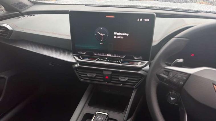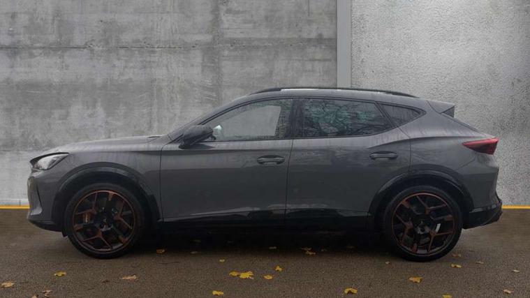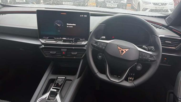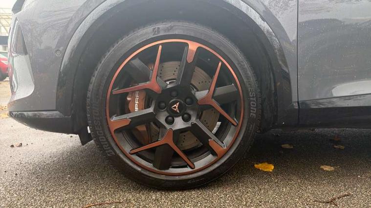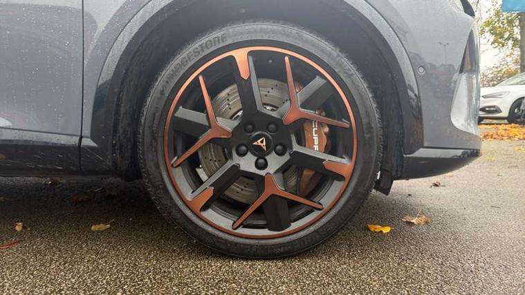 10.25" digital cockpit and configurable dashboard, Adaptive cruise control with follow-to-stop and speed limiter, Advanced driver alert system, Advanced lane assist with semi-automatic vehicle control in a medical emergency and traffic jam assist, Dynamic chassis control with driving profile selection (Comfort, Sport, CUPRA, Individual), Dynamic road sign display, Emergency steering support with turn assist, Forward collision warning with automatic braking, Full link phone integration, Intelligent park assist, RPM, trip computer, outside temp gauge, instrument light brightness, low fuel warning light, lights on reminder, gearshift indicator, Service interval indicator, Side and exit assist, Speed sensitive power steering, Start/stop system with regenerative braking, Top view camera, Virtual pedal and electric tailgate, Voice control system, Wired Android Auto, Wireless apple carplay, Wireless phone charger, Adaptive chassis control with continuous operation, CUPRA sport suspension, Electronic locking differential and dynamic traction support, 2 front and 2 rear USB type C sockets, Immersive by Sennheiser TM - 10 speakers, 1 central speaker, 1 subwoofer, Media system with navigation, 12.9" touchscreen display, voice control, DAB, steering wheel mounted controls, Auto dimming rear view mirror, Black roof spoiler, Body colour door handles, Body coloured bumpers, Dark grey wing mirror, Daytime running light with automatic headlight control and coming home feature, Door panel ambient lighting, Dynamic headlight range control, Electric front/rear windows, Electrically adjustable heated and folding door mirrors with memory function, Gloss black roof rails and window surrounds, High beam assist, LED 3rd brake light, LED front fog lamps with cornering function, LED Taillights with dynamic indicator, Matrix LED headlights with multifunction camera, Rain sensing wipers, Rear diffuser with twin exhaust pipe on each side, Rear fog lights, Rear side wing doors, Rear wash/wipe, Side skirts, Tinted rear windows, Welcome lights (within exterior mirror housing), 12V socket, 2 front and 2 rear reading lights, 3 seat bench in 2nd row, 60/40 split rear bench seat with armrest and mechanical seat release, Black headlining, Black interior roof lining, Cupra sports pedals, Dust/pollen filter, Electrically adjustable front seats with lumbar support and memory function, Front and rear head restraints, Front centre armrest, Heated front seats, Heated supersports multifunction leather steering wheel with satellite buttons and gear shift paddles, Height/reach adjust steering wheel, Illuminated aluminium doorsteps, Illuminated interior front door sills, Illuminated sunvisor with mirror, Isofix, Leather dashboard, door insert and side trim panel, LED smart wraparound lighting, PVC/Textile upholstery + cup bucket seats, Satellite steering wheel, Single front passenger seat, Three zone climate control with control panel in rear, Variable luggage/load compartment floor, 3 point seatbelts on all rear seats, ABS, Akebono brakes, Brake control system - ESC and brake booster, Child proof door locks, Driver and front passenger airbags with front passenger airbag de-activation, Driver and front passenger knee airbag, Electronic parking brake, Hill hold control, Performance brakes with front brembo calipers, Pre-crash front and rear seat belt tensioner, window closure and hazard lights, Public e-call, Seat belt reminder for front and rear seats, Side airbag for front and rear with curtain airbags, Tyre pressure monitoring system, Anti theft alarm system, KESSY Advanced - Keyless start, keyless entry with SAFELOCK, Locking wheel bolts, Copper and aluminium interior detailing, 19" Hailstorm forged machined R black and copper alloy wheels, Breakdown and tool kit,