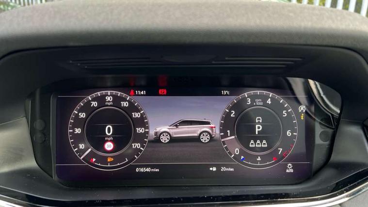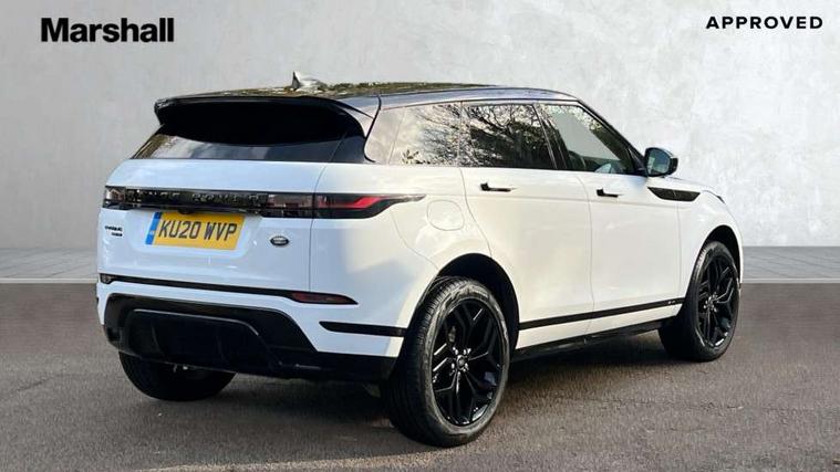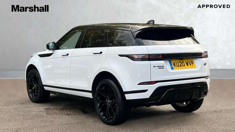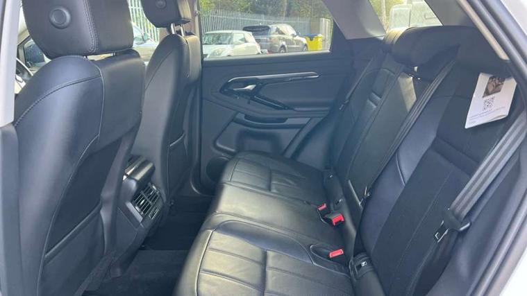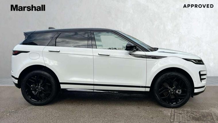 360 degree parking aid, Android Auto, Apple car play, Bluetooth connectivity, Brake pad wear indicator warning light, Clear exit monitor, Driver condition monitor, Duo touch pro, Electronic power assisted steering (EPAS), InControl remote, Interactive Driver display instrument cluster, Land Rover InControl apps, Lane keep assist, Navigation pro system, Park assist - Parallel, perpendicular and parking exit, Pro services and wifi hotspot, Push button starter, Rear traffic monitor, Smart settings, Traffic sign recognition with adaptive speed limiter, Voice control system, All terrain progress control, Efficient Driveline, Large fuel tank, Passive suspension, Terrain Response 2 Auto, Digital Audio Broadcast radio-DAB, Steering wheel mounted controls, Automatic headlight levelling, Electric windows with one touch open/close and anti trap, Evoque and R-Dynamic badge, Flush deployable exterior door handles, Heated rear window with timer, Heated washer jets, Heated windscreen, Power fold, auto-dimming, heated door mirrors with memory and approach lights, Rain sensing windscreen wipers, Rear fog lights, Shadow atlas bonnet and tailgate script, Tailgate spoiler, 40:20:40 split folding rear seats, Black gearshift paddles, Bright metal pedals, Isofix system on outer rear seats, Overhead lighting console, Overhead stowage for sunglasses, Passive front head restraints, Rear air vents, Rear centre headrest, Sunvisors with illuminated vanity mirrors, Twin front cupholders with cover, Twin sliding front centre armrest, 3 rear 3 point seatbelts, Anti-lock braking system (ABS), Customer configurable autolock, DSC - Dynamic Stability Control, Electronic brake force distribution, Electronic parking brake, Electronic traction control, Front and rear seatbelt reminder, Hill descent control, Hill launch assist, Low traction launch, Power operated child locks, Roll stability control, Six airbags - Driver and passenger airbags/driver knee airbag/front side airbag and curtain airbags, Torque vectoring brake, Tyre pressure monitoring system, Alarm, Immobiliser, Intrusion sensor, Locking wheel nuts,