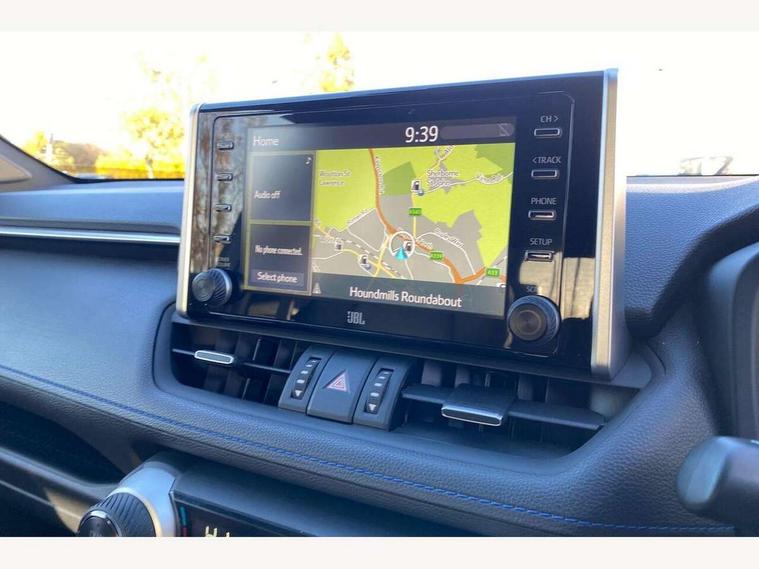 7" colour TFT display, Adaptive cruise control with lane trace assist, Adjustable speed limiter, Apple car play and Android auto, Blind spot monitoring with rear cross traffic alert, Bluetooth system, Cyclist Detection, Drive mode selector, eCall emergency call system, ECO-driving indicator, Electric power steering, EV audible alert, Hybrid system indicator, Lane departure warning system, Lights on warning, Night Time Pedestrian Detection, Pedestrial detection, Power boot opening and closing, Rear parking camera, Rear parking sensors, Remote boot door release in cabin, Tachometer, Touch 2 Go navigation system including 3D maps and voice control, Traffic sign recognition, Trip computer, Voice control system, Vehicle Stability Control (VSC), 6 speakers, 8" Multimedia display touch screen, Auxiliary socket for external MP3 player, DAB audio, Steering wheel mounted audio controls, Toyota touch media system, USB connection, Auto dimming interior mirror, Auto high beam, Automatic headlamp levelling, Automatic headlights, Automatically retractable door mirrors, Bi-tone black roof, Black door mirrors, Black rear spoiler, Black roof rails, Black Shark-fin antenna, Body colour door handles, Body coloured bumpers, Door mirror puddle lights, Electric adjustable door mirrors, Emergency brake-light signal (EBS), Follow me home headlights, Front fog lights, Gloss black front bumper insert, Gloss black rear bumper insert, Headlight cleaners, Heated door mirrors, LED daytime running lights, LED High mounted stop lamp, LED rear lights, Meshed upper front grille, Power front windows, Power rear windows, Privacy glass, Projector LED headlights, Rear screen wiper - intermittent, Rear windscreen defogger, Silver front under-run, Silver rear under-run, Trailer Sway Control, Turning signal integrated indicators in door mirrors, 3 rear headrests, 60/40 split fold rear seat back, Black roof lining, Boot light, Clean air filter, Driver and front passenger personal light, Driver and front passenger Whiplash Injury Lessening seats, Driver and passenger sunvisors with illuminated vanity mirrors, Dual sided deck board in boot, Dual zone automatic air conditioning, Floor mats, Folding rear centre armrest, Front and rear bottle holders, Front centre armrest, Front footwell lights, Front headrests, Front seat and rear pockets, Front sport seats, Front/rear roof mounted assist grips, Heated driver and front passenger seats, Isofix child seat preparation, Leather gear shift with chrome surround, Light blue ambient lighting on front cupholders and open tray, Manual telescopic and tilt 3-spoke leather steering wheel with Chrome insert, Manually reclining and sliding front passenger seat, Pollen filter, Power height-adjustable sliding reclining and lumbar support for driver seat, Rear coat hooks, Rear door armrests, Rear passenger air vents, Reclining rear seats, Satin chrome interior door handles, Sunglasses holder, Synthetic leather upholstery, 3x3 point rear seatbelts, ABS/EBD, Adjustable front driver and passenger seat belt extender, Brake assist function, Child proof door locks, Collision mitigation braking system, Driver/Front Passenger airbags, Driver/front passenger side airbags, Drivers knee airbag, Electronic parking brake, Electronic Stability Programme (ESP), Emergency brake light system (EBS), Front and rear curtain airbags, Front and rear seatbelt reminder, Hill start assist, Passenger airbag cut-off device, Seatbelt pretensioners with load limiters, Traction control, Tyre pressure warning, Alarm/immobiliser, Glass-breaking alarm sensors, Light - on and Key in reminder, Remote central locking, Smart entry + Smart start, Speed sensitive auto door locking, Tilt detection sensors, Piano black centre console with silver insert, Soft-touch black lower dashboard, Soft-touch black upper dashboard with silver insert, Full size spare wheel,