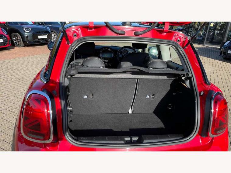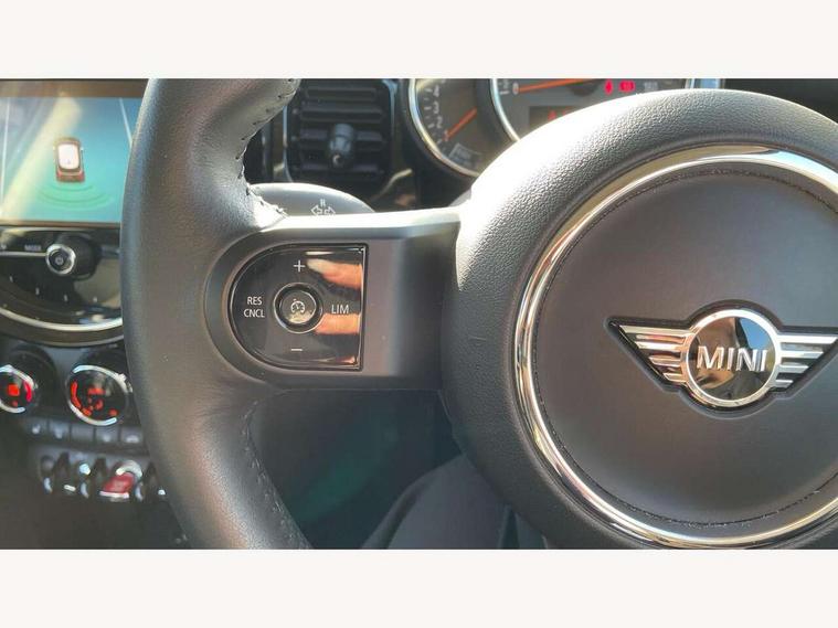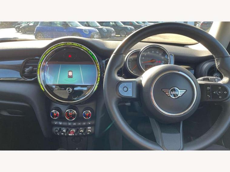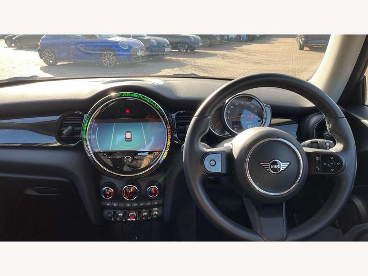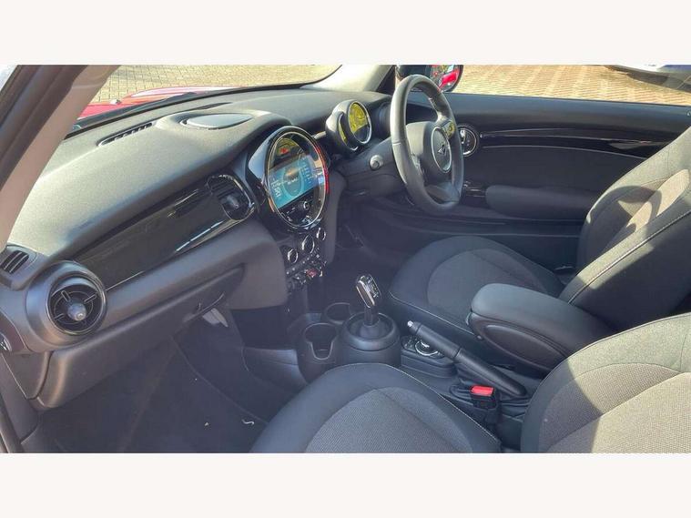 Apple CarPlay, Automatic start/stop function with brake energy recuperation, Compatible mobile phone bluetooth with audio streaming, Cruise control with brake assist, Electro-mechanical speed dependant steering assistance, Flexible car sharing preparation, Instrument cluster, Mini E-call, MINI TeleServices, On board computer, Service interval indicator, Double Vanos system, Fully variable valve control, High precision injection, Performance Control, Steptronic transmission with double clutch, 8.8" touchscreen with LED ring, FM tuner and DAB digital radio, 3rd brake light, Automatic headlight activation switch, Body colour fuel filler cap, Chrome border high gloss black slats radiator grille, Dynamic brake lights, Electric front windows, Exhaust tailpipe on left with chrome finisher, Heated rear window, Heated windscreen washer jets, LED headlight with closed ring and daytime driving lights, Metal door sill strips with MINI imprint, Model logo Cooper on right of tailgate, Rain sensor window wipers, Rear fog lights, Rear LED lights with union jack design, Rear window wiper, Side scuttle panel with integrated indicator, Sun/heat protection glass, White indicator lenses, 12V Accessory socket in centre console, 2 seat bench in 2nd row, 4 lashing eyes in luggage compartment, 60/40 split folding rear seat, Ambient lighting, Carbon black colour line - Knee roll and door armrest, Chrome interior highlights, Cupholders, Front and rear head restraints, Front and rear isofix with front passenger airbag deactivation, Front floor mats in velour, Glove compartment, Height and length steering column adjustment, Interior lighting with 12 different colours across the dashboard, underneath door bezel with illuminated laser-engraved design on central display, Leatherette gearshift lever and handbrake gaiters, LED reading lights, vanity mirror lights, front foot well light and spotlight on front seats, Manual air conditioning, Mechanical seat adjustment - forward/back & backrest for front seats and driver seat height adjust, Multifunction steering wheel, Passenger seat height adjuster, Satellite grey headlining including grab handles and clothes hooks, Single front passenger seat, Sport leather steering wheel with speed limiter and audio/communication controls, Storage compartments in doors, Sunvisors with vanity mirrors, 3 point seatbelts on all four seats, 6 Airbags - front, side, head and seat belt tensioners, Anti-lock braking system (ABS), DSC - Dynamic Stability Control, Front and rear disc brakes, Single tone fanfare horn, Tyre pressure monitoring system, Alarm system with tilt sensor, monitoring doors, bonnet interior and tailgate, Electronic vehicle immobiliser, Start/stop toggle with keyless go, Piano black interior trim, Tool kit, Tyre repair kit,