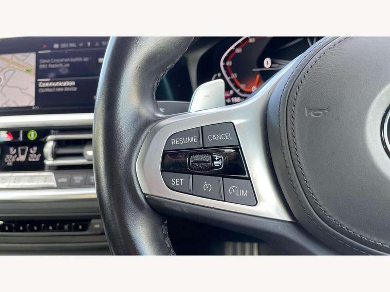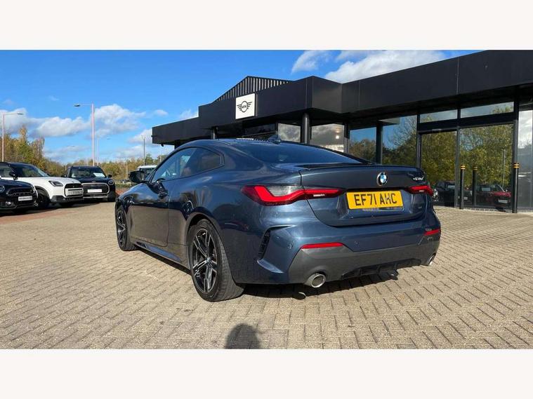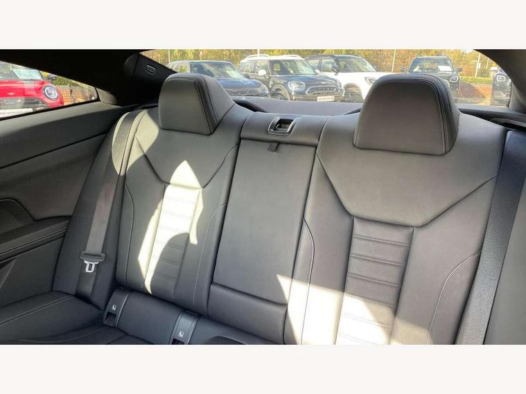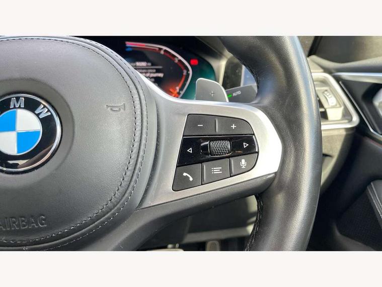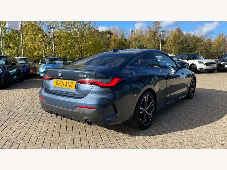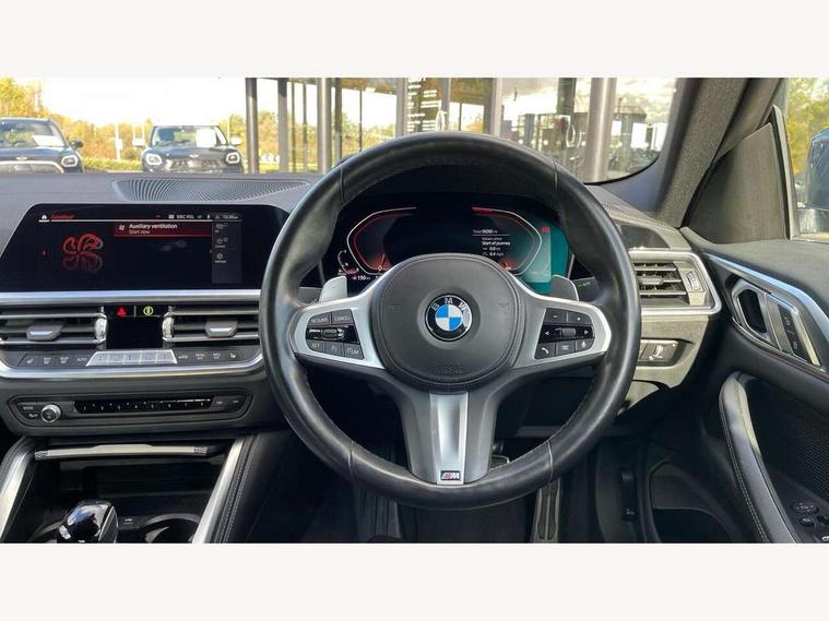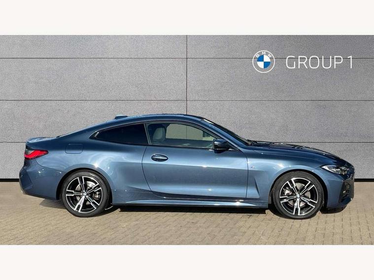 Active guard plus, Attentiveness assist, Auto start-stop, Bluetooth hands free facility with USB audio interface with audio streaming, BMW ConnectedDrive online services, BMW iDrive controller on centre console, BMW Live Cockpit Professional Nav with 12.3" instrument display + 10.25" display, Intelligent Voice Assist, BMW OS 7, HDD, 2USB, 4G LTE connect, BMW service history, BMW Teleservices, Brake pad wear indicator in front and rear, Check Control warning system for monitoring of lights and door/luggage compartment open warning, Condition based service, Cruise control with brake assist, Electric power steering with Servotronic steering optimised at all speed ranges, Gearshift time display in manual mode, Instrument cluster with speedometer with mph readout, tachometer, fuel gauge and oil temperature gauge, Integrated owners handbook, Oil sensor for level and grade, warning by check control system, On board computer - average speed, fuel consumption, outside temp display with acoustic warning, clock/date, service interval, odometer/trip meter, Optimum shift indicator, Reverse Assistant functionality for BMW Live Cockpit Professional Nav, Touch control functionality for BMW Live Cockpit Professional Nav, Variable sport steering, 48V Mild hybrid technology, 8 speed automatic steptronic transmission with gearshift paddles, Balanced 50/50 weight distribution, Diesel particulate filter, Drive performance control - ECO PRO, comfort and sport modes, Incorrect fuelling protection, Low centre of gravity, M sport suspension, Stroke dependent dampers, DAB tuner, Electronic service booklet, 3rd brake light, Acoustic glazing, Automatic headlight beam throw control with load dependent regulating reaction, dynamic compensation of braking dive and acceleration squat, Automatic windscreen wipers and automatic headlight, Automatically dimming electrochromatic rear view mirror, BMW emblem on engine compartment lid and tailgate, BMW kidney grille with mesh grille front side of the nuggets in matt aluminium and frame in chrome high gloss, Body colour fuel filler flap, Body colour M sport rear spoiler, Body colour roof fin, Brushed aluminium inserts in the front door sill finishers with BMW designation, Daytime running lights, Dynamic brake lights, Electric windows - front and rear, with open/close fingertip control, anti trap facility and comfort closing function all round, Exhaust tailpipe - split left and right, Exterior mirrors - electrically folding with anti-dazzle, Fading support, Front and rear bumper system, Front apron plastic in body colour, Green tinted heat protection glazing, High gloss shadow line exterior trim, Illuminated bow type door handles in body colour drivers side with door lock, Interior rear view electrochromatic mirror with automatic anti dazzle function, LED front fog lights, Licence plate panel integrated into front bumper and tailgate, Lightweight engineering, M designation on front side panels, left and right, Model designation on right side of tailgate, One piece front bumper cover including towing eye cover in body colour, Preparation for high beam assistant, Rear boot, Side frame decorative moulding black matt, Two part LED tailights in L-shape with components in smoked glass, brake light, LED turn indicator and rear fog light, Visible VIN plate, Welcome lights in interior and door handle area, Widened track and increased camber values for max transverse dynamics, agility and steering precision, Window recess cover black high gloss, Windscreen wipers with integrated washing jets, 12V power socket in front centre console, 2 front cupholder in centre console with clamping elements and matt black inlay, 2 Rear seat headrests, 2 seat bench in second row, 3 spoke M sport leather multifunction steering wheel, 3 zone automatic air conditioning, 4 pieces lashing eyelets in luggage compartment, 40:20:40 split folding rear seat and rear centre armrest with two cupholders, Ambient lighting with welcome carpet light, Anthracite headlining, Armrest integrated in front and rear door trim + front centre console armrest, Four grab handles integrated in roof lining, Front and rear door exit lighting (left / right), Front and rear door pockets, Front and rear footwell lights, Front and rear reading lights, Front headrests, Front passenger seat, Front seat backrest width adjustment, Front sport seats, Heated driver and front passenger seats, Height adjustable mechanically and infinitely variable steering column, Illuminated armrest storage compartment, Illuminated glove compartment with separate small compartment, Luggage compartment light, Make-up mirror lights, Storage compartment in rear centre console, Sunvisors with vanity mirrors and ticket pocket, Toolkit located in luggage compartment, Velour front floor mats, Vernasca leather upholstery, Connected professional package - 4 Series, M sport exterior styling pack - 4 Series, Park assist pack - 4 Series, 2 x 3-point rear seatbelts, Battery safety cut-off, BMW emergency call, Brake energy regeneration, Braking pre-tensioning, Child seat ISOFIX attachment for the two outer rear seats, Coasting in idle in ECO PRO mode, Cornering brake control (CBC), Crash sensor activating of airbags, Unlocking doors, hazard warning lights, interior light, safety battery terminal, Driver and front passenger side airbags, integrated in the door side seat backrest bolsters for all seat variants, Driver/Front Passenger airbags, Dry braking, Dynamic brake control, Dynamic stability control + (DSC+) - Anti-lock Braking System (ABS) with brake assist and cornering brake control + Automatic Stability Control (ASC), Dynamic Traction Control - DTC, Electric parking brake including automatic hold function and automatic release of the parking brake when driving off, Electronic differential lock control (EDLC), Front and rear ventilated brake disc, Front passenger manual airbag deactivation, Head airbags for all 4 outer seats, Hill start assistant, Seat belt security che