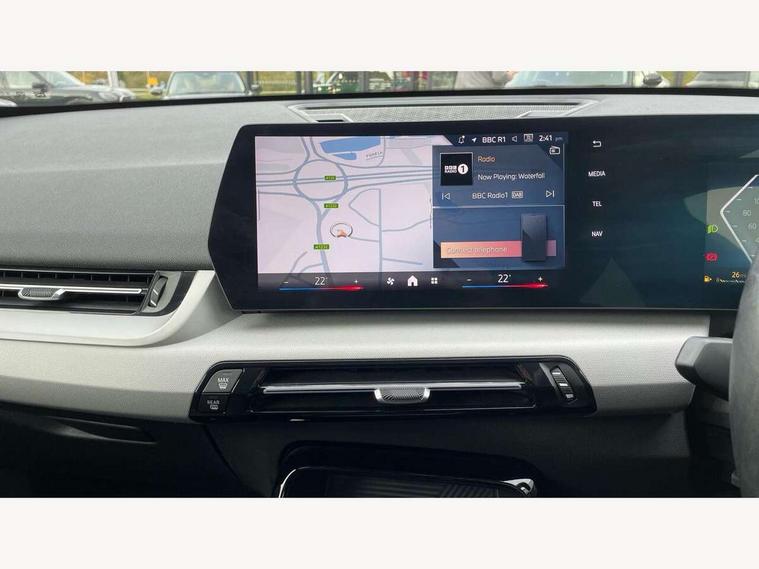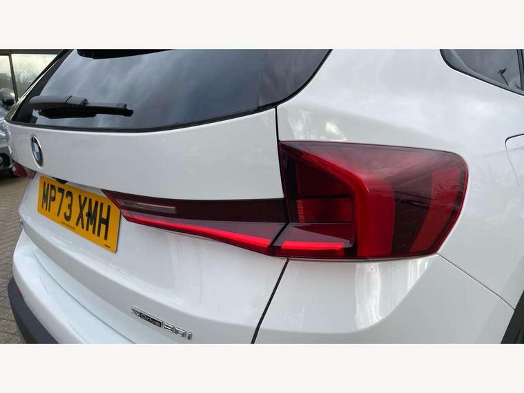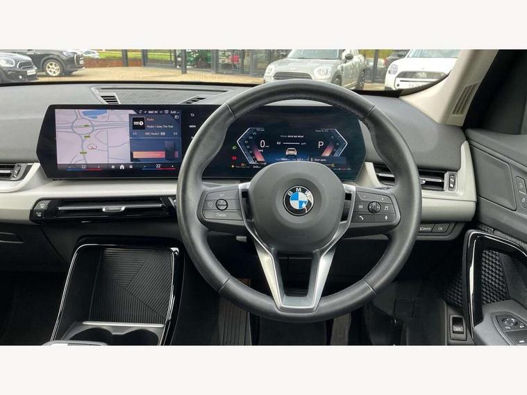 Attentiveness assist, Automatic start/stop function, BMW Operating system 9 with BMW Maps, real-time traffic information, in-car experiences, remote services and smartphone integration, BMW Teleservices, Brake pad wear indicator, Condition based service, Connected eDrive Services, Drive off assistant, Electrically opening/closing tailgate with opening/closing with remote control and contactless opening and closing, iDrive controller, Language version English, My Modes, Personal Profile - automatic lock when driving away selectable, Servotronic PAS, Tyre puncture warning system, Widescreen display, EU6 emissions management, Performance Control, Petrol Particulate Filter, Standard suspension, Steptronic transmission with double clutch, DAB Digital radio, Badge on engine compartment lid and tailgate, BMW radiator grille with grille struts, end face black high-gloss, radiator grille frame chrome high-gloss, Dynamic brake lights, Electric adjustable heated door mirrors, Electric windows - front and rear, with open/close fingertip control, anti-trap facility and comfort closing, Folding door handles integrated flush with surface, Follow me home headlights, Front bumper panel with air inlet in matt black, Front door exit lights, Heated rear window, High gloss shadow line incl A/B/C-pillar panel/window frame/recess finish strip/window rail front door/mirror frame/cover panel in high gloss black, Invisible exhaust tailpipe, LED 3rd brake light integrated in rear spoiler, LED daytime running lights, LED number plate light, M roof rails high gloss shadow line, Matt black roof strips, Rain sensor including auto headlights activation, Rear bumper panel with two L-shaped trims In pearl chrome, Rear side wing doors, Rear wiper, Sill cover in body colour, Trailer stabilisation logic, Windscreen washer nozzle for rear view camera, Windscreen wipers front with heated washer nozzles, 12V - Power sockets with front centre console and luggage compartment, 2 bag hooks in luggage compartment, 2 cup holders in front, 2 x USB Type C ports for charging and data transmission (front centre console) and 2 x USB Type C ports for charging (rear centre console), 3 rear headrests, 3 seat bench in 2nd row, 3 upper retaining strap clips integrated into rear panels of seat backrests, 40:20:40 split folding rear seats, Ambient interior lighting, Anthracite Velour front and rear floormats, Bottle trays in all doors, Child seat ISOFIX attachment for two outer rear seats and front passenger seat with anchorage points, Clothes hook rear, Dual zone automatic air conditioning, Front and rear door pockets, Front centre console storage compartment, Front/rear adjustable head restraints, Glove compartment, Light on right in luggage compartment, Manual steering column height and depth adjustment, Map pockets, Middle centre console storage compartment, One piece parcel shelf opens together with tailgate and removable, Rear armrest in door trim panel, Single front passenger seat, Sport leather multifunction steering wheel with thumbrests and operation of instrument display, audio, telephone and driver assistance, Storage compartment net in left side trim panel, Storage compartment with folding cover under centre console armrest cushion, Storage tray in right side trim panel, Tilt adjustment incl. cargo function of 2nd row of seats, Trim elements on steering wheel spokes in pearl chrome, ABS/EBD, Automatic hold function, Automatic Stability Control (ASC), BMW emergency call, Braking readiness, Cornering brake control (CBC), Crash Sensor - activates hazard/interior lighting + unlocks doors, Driver/Front Passenger airbags, Driver/front passenger side airbags, Dry braking, Dynamic brake control, Dynamic stability control + (DSC+), Electromechanical parking brake, Energy recovery system, First aid kit, Front and rear brake discs, Front and rear head airbags, Front passenger airbag deactivation, Integrated brake system, PC iBrake PostCrash approach control warning with light braking function, Rear door child safety locks, Three point seat belts in all seats, Tyre pressure monitor, Warning triangle, Alarm system with tilt sensor, monitoring doors, bonnet interior and tailgate, Closing system with central locking, Locking wheel bolts, Tyre repair kit (including Tyre sealant and 12V Compressor),