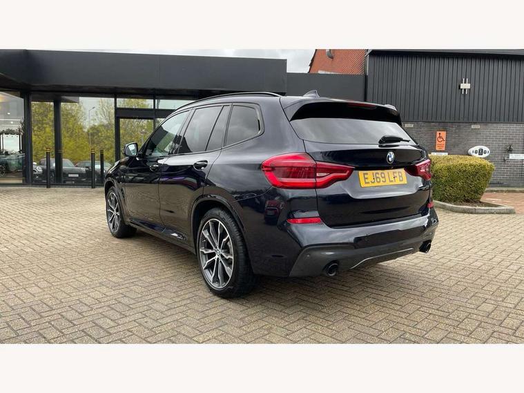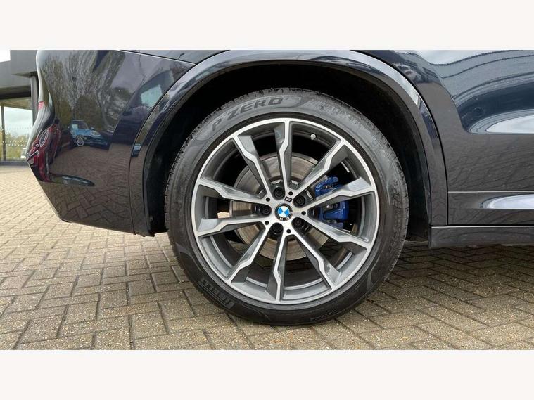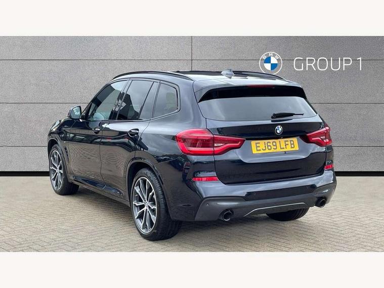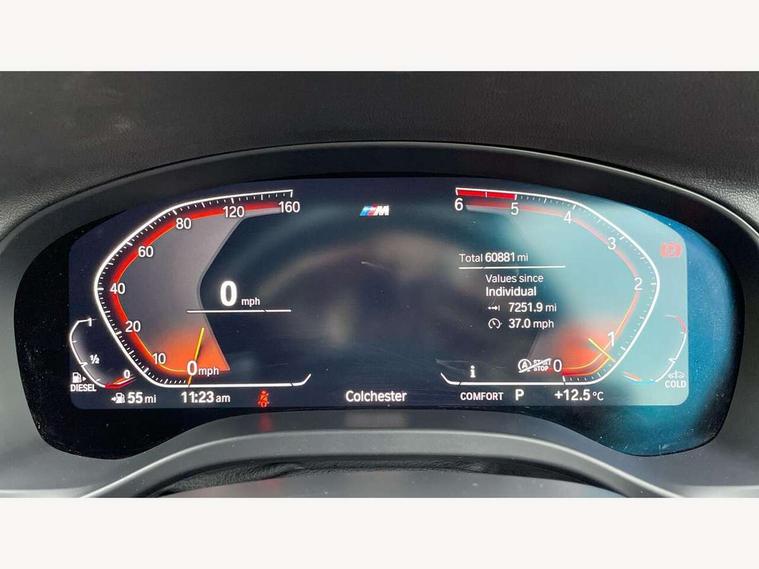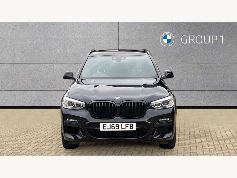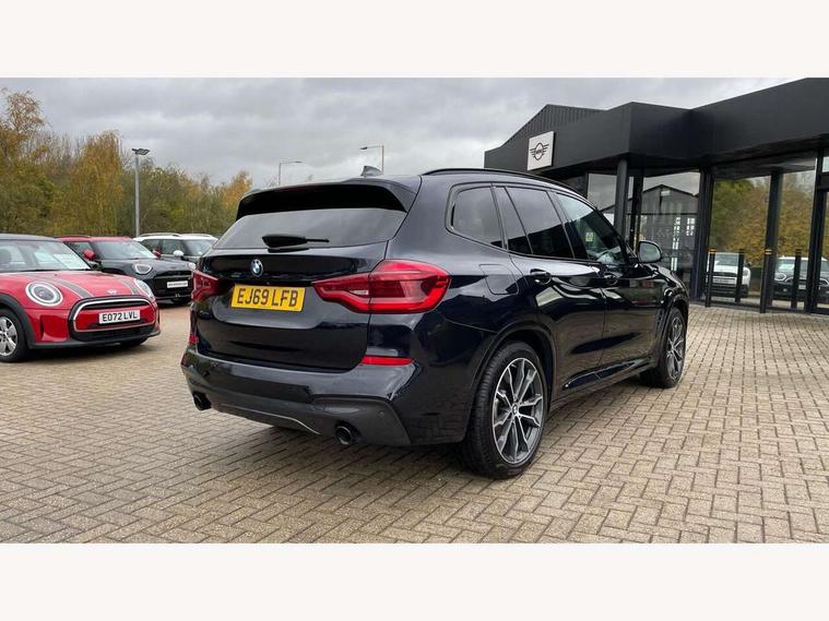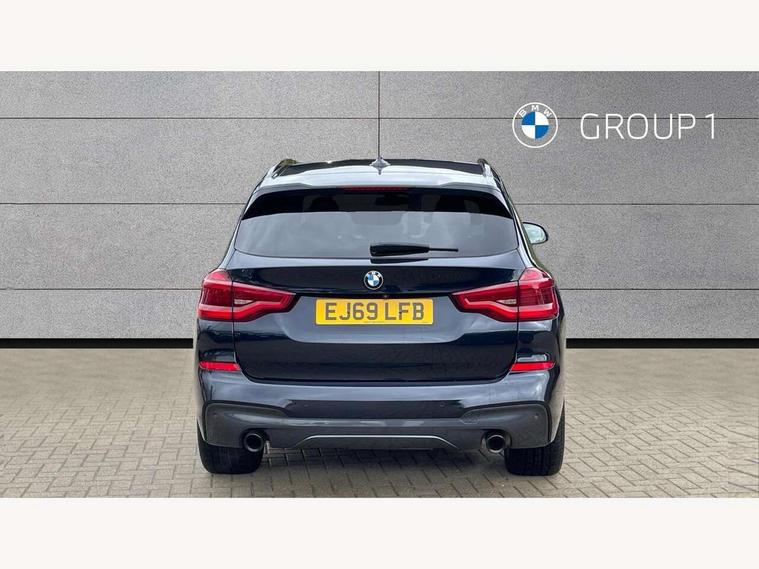 Active Guard incl speed limiting and lane departure functions with auto steering, and front collision warning with brake intervention, Attentiveness assist, Automatic tailgate operation, BMW Live Cockpit Professional sat nav system including 10.25" high resolution display and Intelligent Voice Assistant, BMW Online services, BMW Teleservices, Brake pad wear indicator in front and rear, Check Control warning system for monitoring of lights and door/luggage compartment open warning, Control display - 6.5" colour display screen, Electric Power Steering (EPS) with Servotronic, Front/rear Parking distance control, iDrive Controller with 8 favourite buttons, Lights on warning by audio warning signal when ignition is switched off, Navigation system - BMW Professional multimedia with Hard disc drive (HDD) and 10.25" touch display, Oil sensor for level and grade, warning by check control system, On board computer - average speed+fuel consumption, service interval, clock/date, odometer/trip meter, outside temperature display and ice warning, Optimum shift indicator, Personal Profile - automatic lock when driving away selectable, Real time traffic information, Semi digital instrument cluster, Stop/start system, Automatic transmission with gearshift paddles, Diesel particulate filter, Incorrect fuelling protection, Larger capacity fuel tank, Multi-link rear suspension, Performance Control, Auxiliary socket for external MP3 player, BMW professional radio/CD/MP3, DAB Digital radio, Acoustic glazing, Black finish on B pillars, Body colour door handles, Body colour electric adjust heated aspherical door mirrors, Body colour roof mouldings, Body coloured bumpers, Chrome kidney grille with high gloss black vertical slats, Direction indicator, side repeaters, integrated in exterior mirrors, Dual chrome exhaust, Dynamic brake lights, Exterior mirrors - electrically folding with anti-dazzle, Fingertip control / anti-trap function on electric window, Follow me home headlights, Front and rear bumper system with replaceable deformation elements, Front and rear electric windows, Green tinted heat insulating glass, Heated windscreen washer jets, Height adjustable headlamps, High gloss black door sill finishers, High gloss black shadow line roof rails, High gloss shadowline exterior trim in decorative moulding side frame/recess cover/guide rail/B, C pillars/mirror frame and triangle with mirror base, High level 3rd brake light incorporating LED Technology, Interior rear view electrochromatic mirror with automatic anti dazzle function, LED front fog lights, LED tail lights, Lightweight engineering, M aerodynamic bodystyling, Model designation, Rain sensor including auto headlights activation, Rear wiper, Shark fin antenna, Visible VIN plate, Welcome lighting, Windscreen wipers with adjustable interval, 12V socket in centre console and luggage area, 3 rear headrests, 3 zone automatic air conditioning, 4 lashing points to secure luggage, Ambient lighting, Anthracite headlining, Anthracite Velour floor mats, Driver/passenger sunvisors with ticket holders + illuminated vanity mirrors, Foldable boot floor with storage compartment, Four grab handles integrated in roof lining, Front and rear bottle holders integrated into door trim storage compartments, Front and rear side armrests integrated into door trim, Front centre armrest with storage compartment, Front footwell lights, Front sports seats, Front/rear courtesy lights with soft on/off dimming, Front/rear reading lights, Height adjustable front/rear head restraints, Isofix rear child seat preparation, Leather gear knob, Luggage area underfloor compartment, Luggage compartment lighting, M Sport multifunction leather steering wheel, Parcel shelf removeable and storable under boot floor, Reach and rake adjustable steering column, Rear centre armrest with 2 cupholders, Rear seat centre armrest with two cupholders, Removable / retractable luggage cover, Slope adjustable rear seats, Storage compartment in rear centre console and front/rear door trims, Through loading system with 40/20/40 split folding rear seat, Toolkit located in luggage compartment, Two front cupholders with removable oddments tray/lid, Vernasca leather upholstery, Connected pack professional - X3, ABS/EBD, ADB - Automatic Differential Brake, Automatic Stability Control (ASC), Battery safety cut-off, BMW emergency call, Brake assist, Brake assist function, Brake drying, Brake energy regeneration, Braking pre-tensioning, Child locks on rear doors, Cornering brake control (CBC), Crash Sensor - activation of central locking release, hazard warning light and interior lighting, Deactivation of fuel pump in the event of a crash, Driver and front passenger front and side airbags with passenger deactivation and ITS front and rear head airbags, DSC+, Dynamic brake control, Dynamic Traction Control - DTC, Electromechanical parking brake, Front seat belts warning, Hill descent control, Hill start assist, Seatbelt security check for front seats, Side impact protection, Three point seatbelts to all seats with front and outer rear pyrotechnic belt tensioners and seat belt force limiters, Two tone horn, Tyre pressure monitoring system, Ventilated front and rear disc brakes, Warning triangle and first aid kit, Central locking switch for all doors, fuel filler cap and luggage compartment, Electronic engine immobiliser, Locking wheel nuts, Remote control including two integrated key - one button for open/close all lockable content, windows and separate button for open luggage compartment, Remote control Thatcham category 1 alarm, Start/stop button with Comfort Go keyless engine start and auto Start/stop deactivation button, Low rolling resistance tyres,