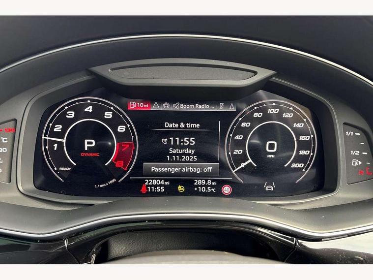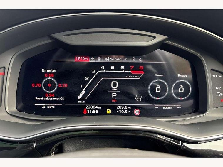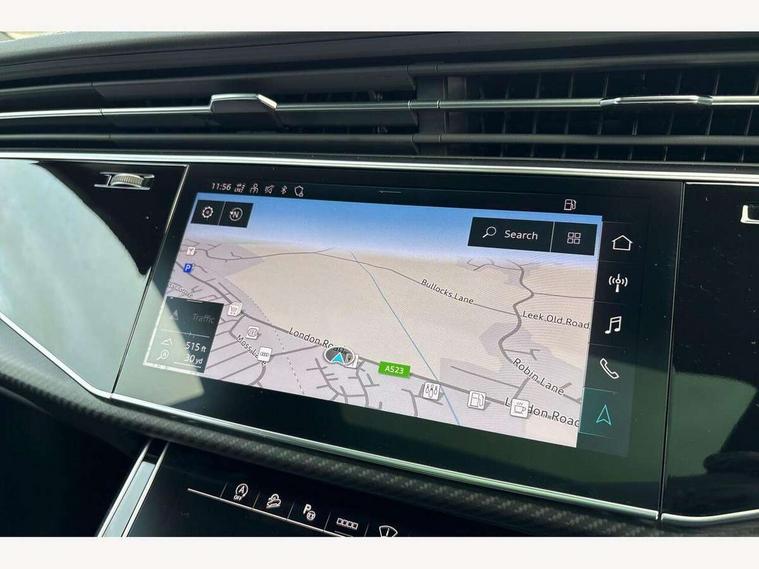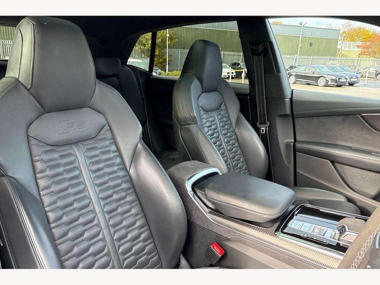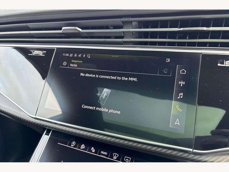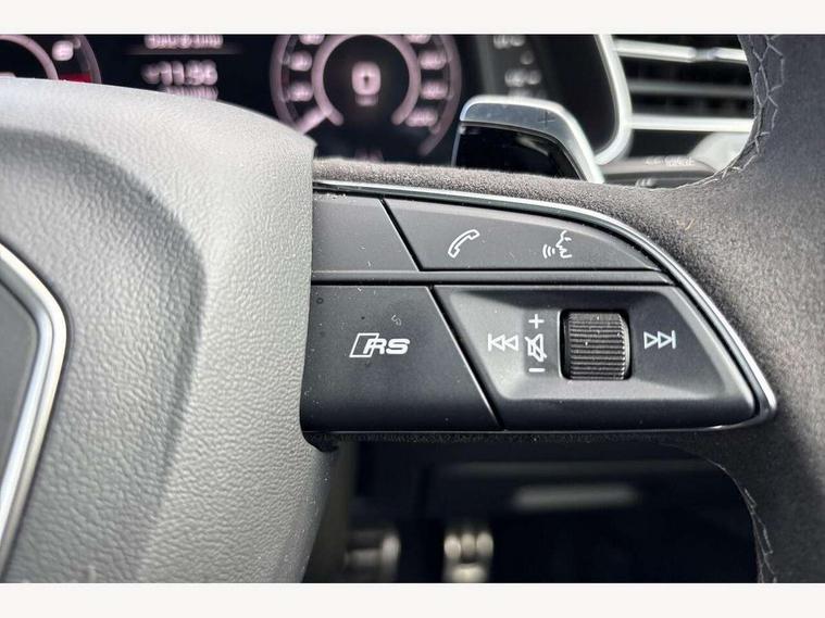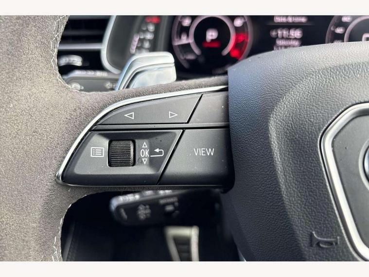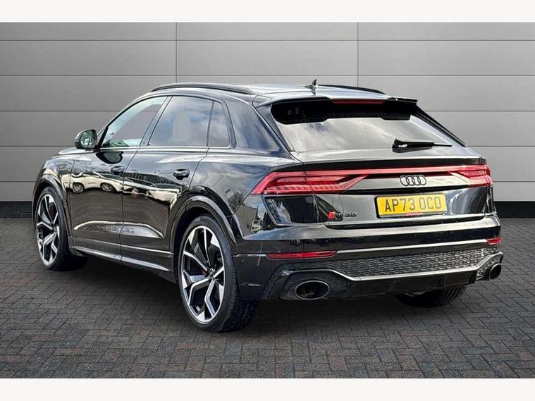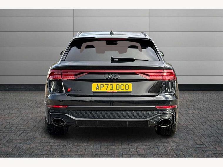 10.1" and 8.6" Dual colour touchscreens, 2 USB ports with charge and data functions in the rear, All wheel steering, Audi connect safety and service (e-call), Audi connect with Amazon Alexa Integration, Audi smartphone interface includes wireless Apple carplay/Android Auto, Audi virtual cockpit - 12.3" high resolution LCD display with fully customisable instrument cluster and RS specific menus and options, Automatic start/stop system, Bluetooth interface, Electro-mechanical PAS, Head up Display, MMI navigation plus with MMI touch, Natural voice recognition, On board computer, Operating buttons in black, glass look with haptic feedback, Power door closure, Power operated tailgate, RS Audi drive select, Service interval indicator, 48V Mild hybrid technology, Electromechanical active roll stabilisation, Quattro all wheel drive with sport differential, RS specific Adaptive air suspension, Audi music interface in rear - 2 USB ports with charger and data functions in rear, Aux-in socket, DAB Digital radio, Adaptive windscreen wipers with integrated washer jets, Audi Beam uses LEDs to project Vorsprung logo, Audi HD Matrix LED headlights in RS specific design with dynamic front and rear indicators, Auto dimming frameless rear view mirror, Electric front+rear windows, Electric panoramic glass sunroof, Electrically folding auto dimming/adjustable/heated door mirrors with memory function, LED side indicators and kerb view function for passenger side, Gloss black finish for exterior Audi rings and RS Q8 logo, Headlight washers, Heat insulating glass in windshield, Illuminated door sill trims with RS logo, LED 3rd brake light, LED signature daytime running lights, Privacy glass - dark tinted rear and rear side windows from B-pillar backwards, Rain and light sensors, Rear side wing doors, Rear wiper, RS badges on front wings, RS coming/leaving home animations in front and rear, RS manhattan grey front spoiler lip and rear diffuser insert, RS manhattan grey grille surround with honeycomb grille insert in black, RS specific bumpers in full body colour paint finish, RS sport exhaust system with black exhaust tips, 3 bench rear seats in 2nd row, 4 zone automatic climate control, 4-way lumbar support for front seats, 40:20:40 split folding rear bench seat, Black dinamica headlining, Comfort front centre armrest, Double sun visor with illuminated vanity mirror on driver and passenger side extendable, Driver and front passenger seat memory function for electrically adjustable front seats, Electric adjustable steering column with memory functionality, Electric sunblind for the rear side windows and manual sunblind for the rear window, Front head restraints, ISOFIX child seat mounting for front passenger seat and 2 outer rear seats with top tether child seat mounting for all 3 rear seats, Luggage compartment sill protection in stainless steel, Massage and ventilation function for front seats, Perforated Valcona leather upholstery + RS front super sports seats + honeycomb pattern with RS embossed logo, Rear headrests, Rear seat bench plus, Single front passenger seat, Stainless steel pedals, Tool kit, Air quality package - RS Q8, Anthracite black styling pack - RS Q8, City assist pack - Q8, Comfort and sound pack - RS SQ8, Multi-coloured extended LED interior lighting pack - RS Q8, RS specific styling pack - RS Q8, Tour pack - Q8, 3 point seatbelts on all seats, Audi pre sense front, Child locks on rear doors, Driver and front passenger, front side and curtain airbags, Electromechanical parking brake, Electronic Stability Control (ESC) including ABS, ASR and EDL, Front passenger airbag deactivation, Hill descent control, Hill hold assist, Predictive pedestrian protection, Seatbelt monitoring, Tyre pressure loss indicator, Warning triangle and first aid kit, Advanced key, Anti theft alarm with tow away protection, Anti-theft wheel bolts and wheel loosening detection, Immobiliser, 23" x 10.5J 5 Y spoke rotor design Audi sport alloy wheels in gloss anthracite black with diamond finish, Tyre repair kit,