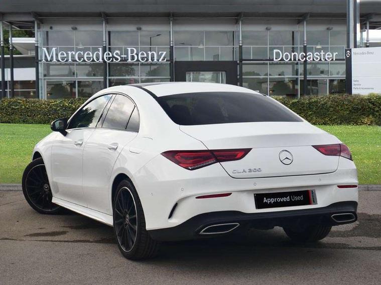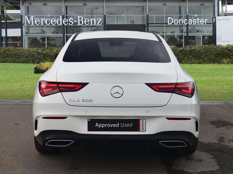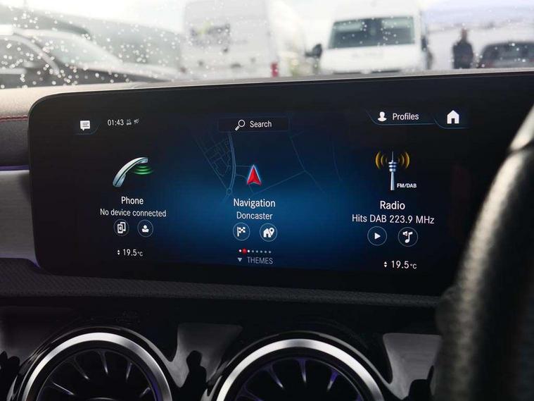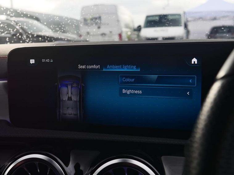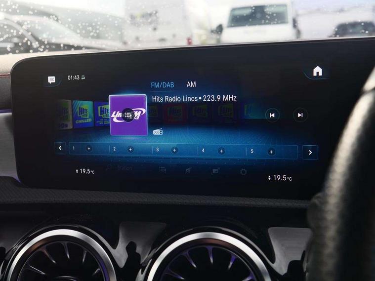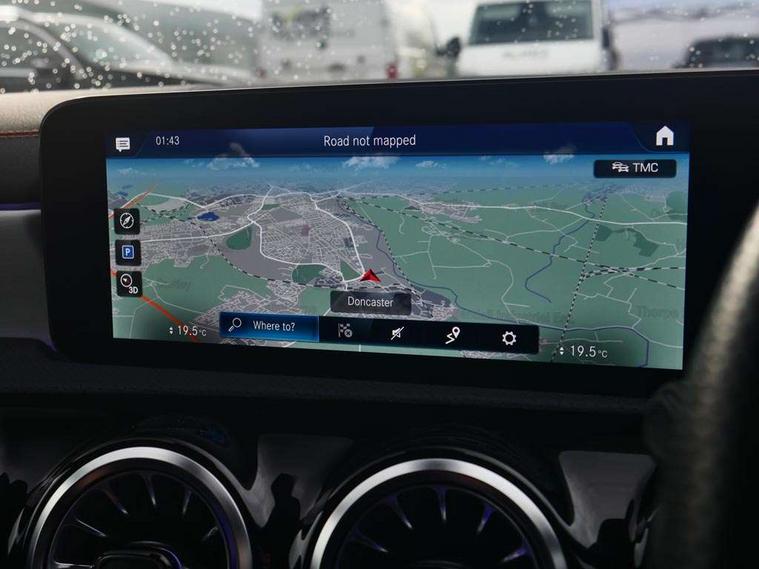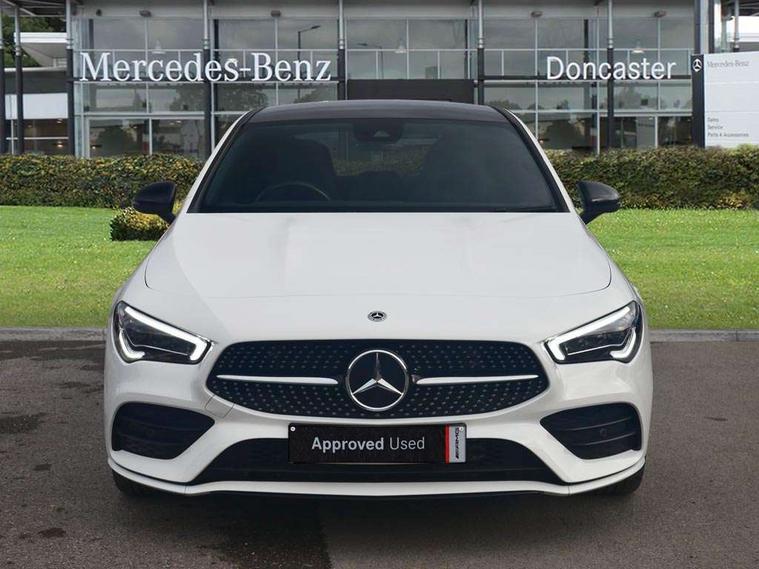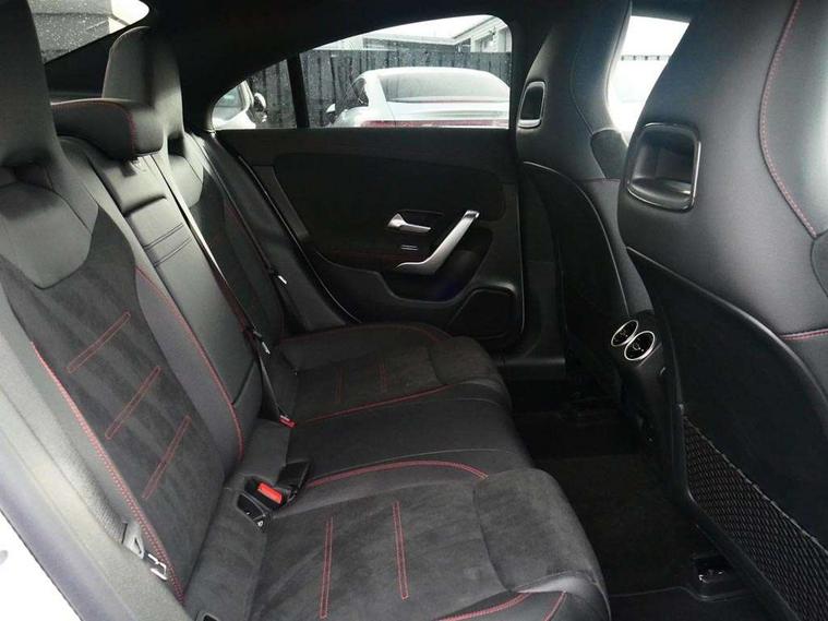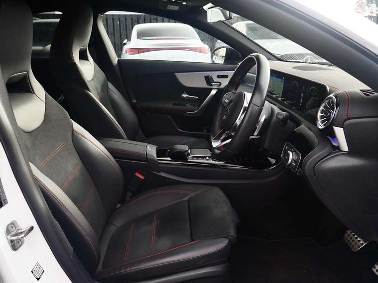 10.25 inch Instrument display with digital cockpit, 10.25 inch touchscreen central media display, Active lane keeping assist, Attention assist - Monitors steering behaviour and long journey fatigue, Blind spot assist, Bluetooth connection, Car wash mode, Cruise control with limiter, Direct steer system with speed sensitive power steering, DYNAMIC SELECT with a choice of driving modes (ECO, Comfort, Sport and Individual), ECO start/stop function, Fluid level warning indicator for fuel, oil, coolant and washer fluid, Hard-disk navigation, Hey Mercedes Voice activation, Lamp failure indicator, Mercedes me connect including emergency call system, accident recovery, breakdown and maintenance management, Mercedes me remote services, Outside temperature gauge, Owners manual and service booklet in English, Pre-installation of private car share, Preinstallation for Mercedes Benz link, Radio aerial integrated into front and rear windshields, Service indicator (ASSYST), Smartphone integration with Apple CarPlay and Android auto, Speed limit assist, Traffic sign assist, Trip computer in multifunction display with current consumption indicator, Lowered comfort suspension, Rear axle multi-link, DAB digital radio tuner, MBUX multimedia system, Mid-range sound system, USB (type C) ports (2) in stowage compartment and 1 in front of centre console, Adaptive brake lights, AMG body styling with AMG front apron and rear apron and visible exhaust tailpipe in chrome trim elements, AMG bodystyling side skirts, Body colour bumpers, Body colour door handles, Chrome beltline strips, Diamond radiator grille pins in chrome, Electric panoramic sunroof with automatic tilt and convenience closing fuinctions, rain sensor auto closing and electronic roller sunblind, Electric windows, Electrically adjustable and heated door mirrors with integrated LED indicators, Exhaust system with 2 Visible tailpipe trim elements and rear apron with trim in chrome, Headlamp assist automatic headlamp activation, Heated glass rear windscreen + timer control, High level LED third brake light, Integrated LED daytime running lights, Interior mirror with black reading lamps and frameless, LED tail lamp, Multibeam LED headlamps with adaptive highbeam assist plus, Privacy glass with dark tinting on rear side windows and rear window, Rain sensing windscreen wipers with two sensitivity settings, Rear boot, Rear fog lamp, Rear side wing doors, Variable front intermittent wipers, Window line trim strip in chrome, 3 seat bench in 2nd row, 3 spoke flattened bottom nappa leather multifunction steering wheel with perforated leather in grip area, 40:20:40 split folding rear seat backrests, Air conditioning - Two zone thermotronic luxury automatic climate control with display, Air vents with surround in silver chrome, Artico man-made leather upholstery, Automatic child seat recognition sensor, Black roof lining, Brushed stainless steel sports pedals with rubber studs, Electrically adjustable front memory seats including lumbar support, Floor mats with stitched AMG lettering, Front centre armrest with stowage, Galvanished gear shift paddles on steering wheel, Heated front seats, Illuminated front door sills with changeable cover, Illuminated glove compartment stowage, Interior lighting - 64 colour Ambient lighting, Luggage net on driver/front passenger seat backrest, Manually adjustable front seats, Manually height and reach adjustable steering column, Rear armrest with two integral cup holders for drinks, Rear head restraints, Single front passenger seat, Sport seats with fixed head restraints, Stowage compartment in centre console with retractable cover, Sunvisors with illuminated vanity mirrors, Touchpad on center console, Twin front cupholders, Two outer rear seat isofix and top tether child seat fixing points, Keyless go comfort pack - CLA, Light and sight pack - CLA, Mirror pack - CLA, Night package - CLA, Parking package - CLA, Active bonnet pedestrain safety measure which detects an impact and raises bonnet by 65mm, Active brake assist includes forward collision warning system with autonomous braking, Adaptive brake assist with hold function and hill start assist, Anti lock braking system (ABS) with brake assist, Black seat belts, Bonnet with power domes, Brake pad wear warning indicator, Childproof locks manually operated for rear doors and electrically operated for rear power windows, Crash responsive emergency lighting, Driver and front passenger head and sidebags, Driver and front passenger windowbags, Drivers knee airbag, Dual stage driver and front passenger airbags, Electric parking brake, Electronic stability programme with acceleration skid control, ESP curve dynamic assist, Exit warning, Front and rear seatbelt reminder, Front passenger seat occupancy sensor, Three point rear seat belts, Tyre pressure monitoring system, Warning triangle and first aid kit, Guard 360 degree guard vehicle protection system with immobiliser and interior protection, Remote central locking and crash sensor with emergency opening function, Light aluminium with longitudinal grain interior trim, 19" AMG multi-spoke black painted light alloy wheels with high sheen rim finish, Summer tyres, Tirefit tyre sealant kit,