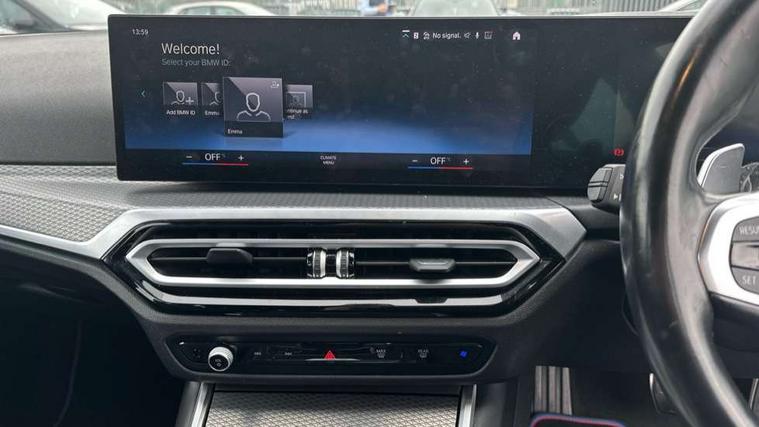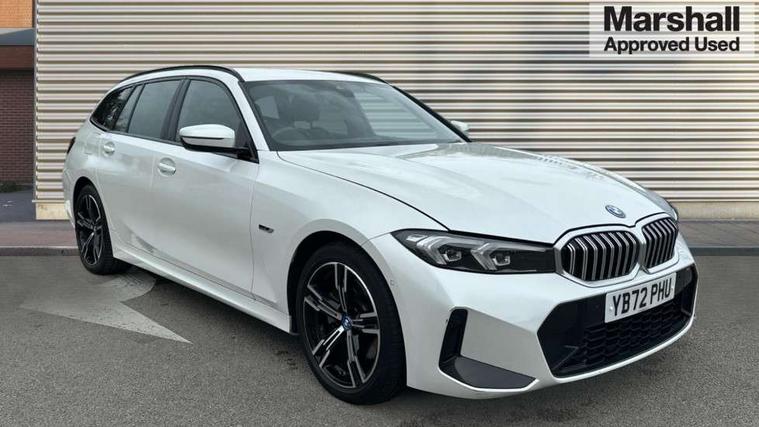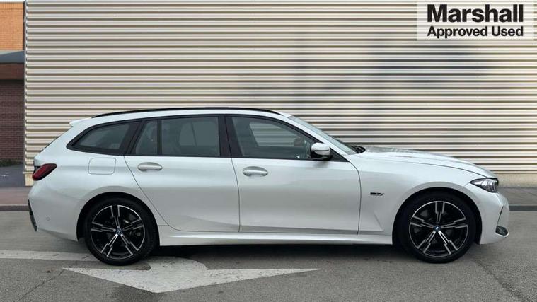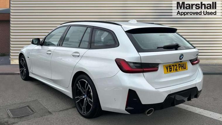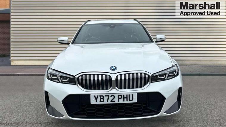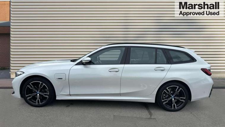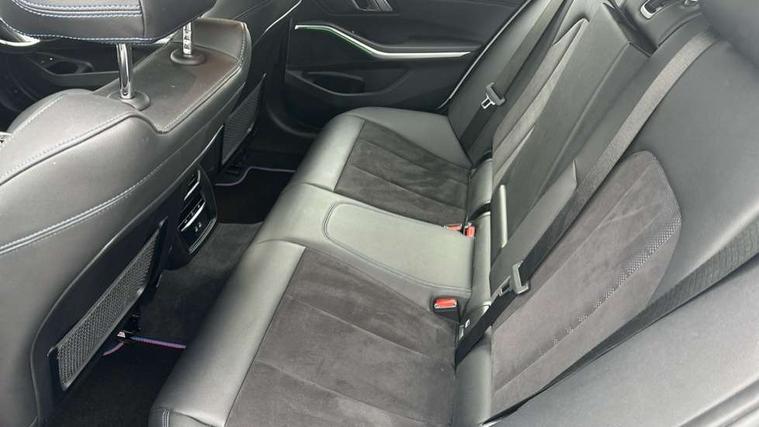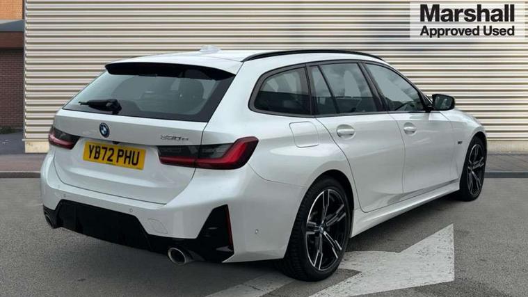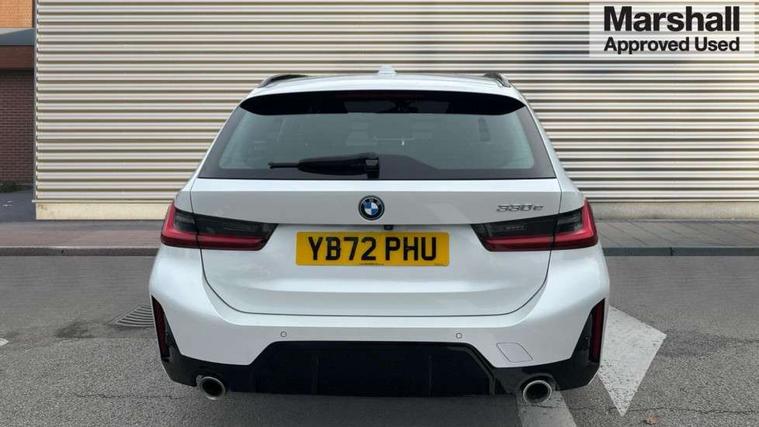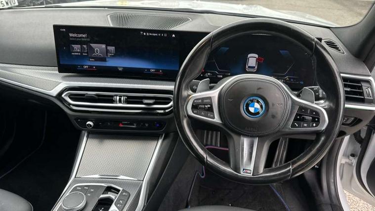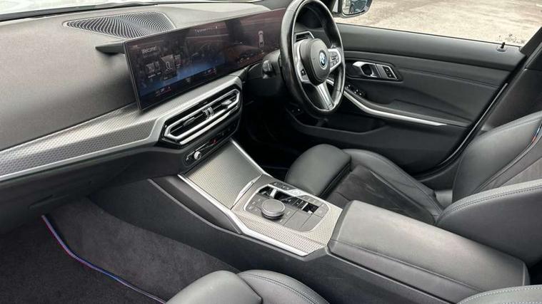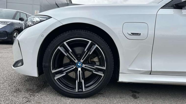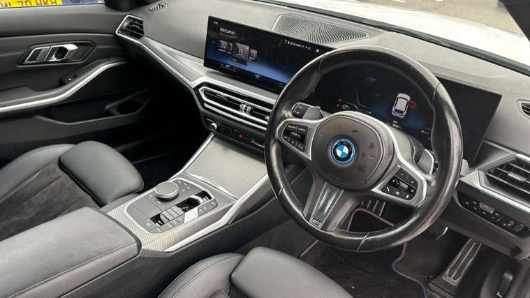 Active guard plus, Attentiveness assist, Automatic Start/stop button, BMW iDrive, BMW Teleservices, Condition based service, ConnectedDrive Services, Driving experience switch, Live cockpit plus with Navigation + 12.3" instrument display + 14.9" display, Intelligent voice assist, 2 USB, 4G LTE connect, Oil sensor for level and grade, PAS, Preparation for driver assistance, Shifting point display, Smartphone integration, Charging cable - Mode 2, Double joint spring strut front axle, Fuel tank breather system, Sport automatic transmission with steering-wheel mounted gearshift paddles and launch control, Standard suspension, DAB tuner, "Electrified by i" exterior badging on charging flap, 3rd brake light, Acoustic glazing, Automatic headlight beam throw control with load dependent regulating reaction, dynamic compensation of braking dive and acceleration squat, BMW emblem, engine compartment lid and tailgate, Body colour roof fin, Door sill strips, Electric windows - front and rear, with open/close fingertip control, anti-trap facility and comfort closing, Follow me home headlight function, Front and rear bumper system with replaceable deformation elements, Front apron plastic in body colour, Fuel filler flap - right rear in body colour, Heated washer jets, Illuminated bow type door handles in body colour drivers side with door lock, Interior rear view electrochromatic mirror with automatic anti dazzle function, LED headlights with LED daytime running lights and LED turn indicator, LED rear lights, Licence plate panel integrated into front bumper and tailgate, Matt black B-pillar finsher, Matt black window recess cover, Model designation on right side of tailgate, One piece front bumper cover including towing eye cover in body colour, Rain sensor with automatic headlight activation, Rear side wing doors, Rear wiper, Reversing lights, Side frame decorative moulding black matt, Visible exhaust tailpipe finisher, Welcome lights in interior and door handle area, 12V power socket in front storage compartment, 2 front cupholder in centre console with clamping elements and matt black inlay, 3 seat bench in 2nd row, 3 zone automatic air conditioning, 40:20:40 split folding rear seat with loading system, Anthracite headlining, Armrest integrated in front and rear door trim + front centre console armrest, Battery in luggage compartment, BMW ID, Cruise control operation in steering wheel, Driver backrest width adjustment, Folding rear centre armrest with 2 cupholders, Front and rear door exit lighting (left / right), Front and rear footwell lighting, Front and rear headrests, Front and rear reading lights, Front and rear velour floor mats, Front sport seats, Heated front seats, Height adjustable mechanically and infinitely variable steering column, Illuminated armrest storage compartment, Illuminated glove compartment, Illuminated luggage compartment, Lashing eyelets in luggage compartment, LED ambient lighting with welcome carpet light, M Sport multifunction leather steering wheel, Make-up mirror lights, Single front passenger seat, Standard seat for driver and passenger with manual adjustment, Sunvisors with vanity mirrors and ticket pocket, Toolkit located in luggage compartment, Connected pack professional - 3 Series Saloon/Touring, Interior and exterior mirror pack - 3 Series Touring/Saloon, M Aerodynamics package - 3 Series Saloon/Touring, M sport exterior styling pack - 3 Series Saloon/Touring, Storage compartment pack - 3 Series Saloon/Touring, 3x3 point rear seatbelts, BMW emergency call, Child locks on rear doors, Crash sensor activating of airbags, Unlocking doors, hazard warning lights, fuel cut off, interior lighting+activation of safety battery terminal clamp, Driver and front passenger with seat occupancy detection for driver's and passenger side, Driver and passenger side airbags, body protection at side and airbags deploy from seat backrests, Dynamic brake control, Dynamic stability control + (DSC+) - Anti-lock Braking System (ABS) with brake assist and cornering brake control + Automatic Stability Control (ASC), Dynamic Traction Control - DTC, Electromechanical parking brake including automatic hold function and automatic release of the parking brake when pulling away, Electronic differential lock control (EDLC), Head airbags in 1st and 2nd row, head protection at side, curtain airbags open from headliner above 1st and 2nd row, Plastic fuel tank, Side impact protection, Tyre pressure monitoring with three level warning strategy, Ventilated front and rear disc brakes, Warning triangle and first aid kit, Alarm system, Centre lock switch, Closing system with central locking, Electronic vehicle immobiliser,