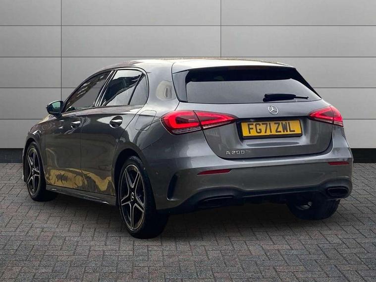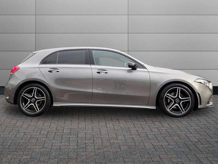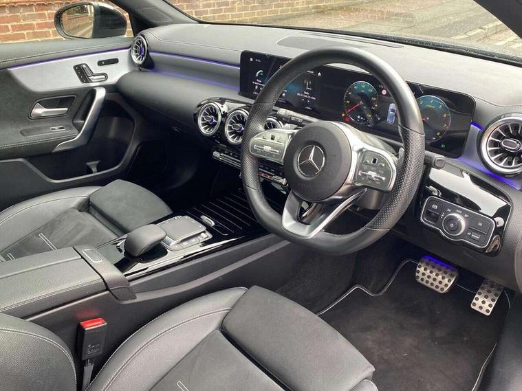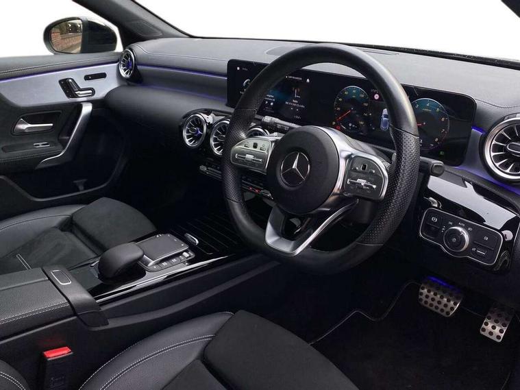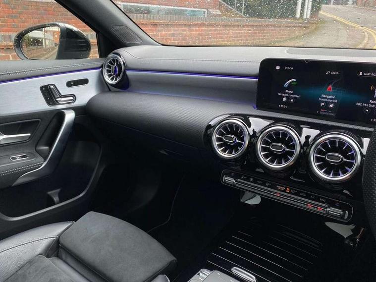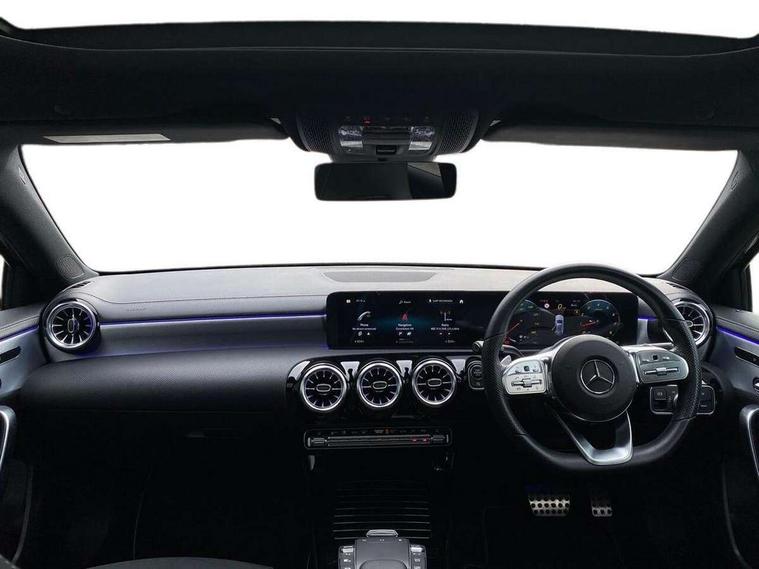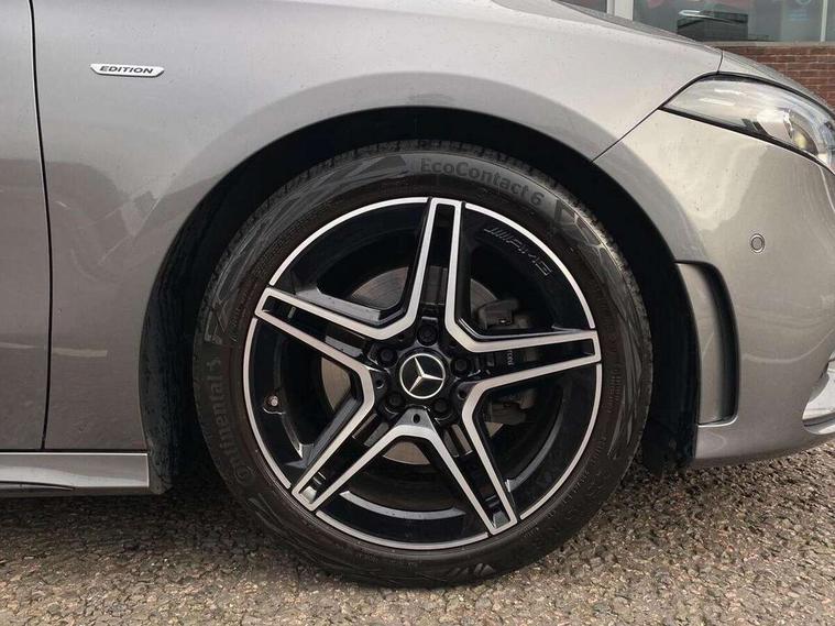 10.25" Digital instrument cluster display screen, 10.25" media display, 180 degree rear view camera with parking guidelines, Active parking assist with visual and audible warning of detected obstacles, Attention assist, Brake pad wear indicator warning light, Car wash mode, Direct steering, Dual bluetooth interfaces, DYNAMIC SELECT with a choice of driving modes (ECO, Comfort, Sport and Individual), ECO start/stop function, Fluid level warning indicator for fuel, oil, coolant and washer fluid, Hard-disk navigation, Hey Mercedes Voice activation, Lamp failure indicator, Lane keeping system, Mercedes me connect including emergency call system, accident recovery, breakdown and maintenance management, Mercedes me remote services, Outside temperature gauge, Owners manual in English, Pre-installation for private car sharing, Preinstallation for Mercedes Benz link, Service indicator (ASSYST), Smartphone integration with Apple CarPlay and Android auto, Traffic sign assist, Trip computer, Ultrasonic sensors positioned in the front and rear bumpers, Lowered comfort suspension, Rear axle torsion beam, 10 speakers, 2 USB ports (type C) in rear stowage compartment and one in front of center console, DAB Digital radio, MBUX multimedia system with DAB digital radio and touchpad including satellite navigation, Mercedes-Benz sound system - 100W, 4 Electric Front and Rear windows, Adaptive brake lights, AMG bodystyling - Front apron with splitter in chrome, rear apron with chrome trim and chrome visible trim elements in tailpipe, Black weather strip, Body colour bumpers, Body colour door handles, Body colour side skirt, Body coloured door mirrors, Electric adjustable and heated door mirrors with integrated LED side indicators, Exclusive diamond radiator grille, Exhaust system - Twin visible tailpipes in polished stainless steel, Headlamp assist automatic headlamp activation, Heated glass rear windscreen + timer control, High gloss black beltline, LED High level third brake light, LED tail lamp, Multibeam LED with adaptive highbeam assist plus, Panoramic sliding sunroof, Privacy glass, Radio aerial, Rain sensing windscreen wipers with two sensitivity settings, Rear fog lights, Rear wiper, Window line trim strip in high gloss black, 3 Spoke flat bottom leather multi function steering wheel with perforated leather in grip area, 40:20:40 split folding rear seats, Artico man-made leather/Microfibre Dinamica upholstery with contrast stitching in light grey, Auto Mercedes-Benz child seat recognition sensor, Black air vents with surround in silver chrome, Black roof lining, Brushed stainless steel sports pedals with rubber studs, Controller on centre console with chrome surround, Floor mats with black top stitching and embroidered edition logo and piping in light grey, Front centre armrest with storage compartment, Front seat backs luggage nets, Front seat cushion length adjustment, Galvanished gear shift paddles on steering wheel, Heated front seats, Height/reach adjustable steering column, Illuminated front door sills with changeable cover, Interior lighting - 64 colour Ambient lighting, Interior mirror with reading lamps in black and frameless, Rear armrest with 2 cupholders, Rear head restraints, Seat occupancy sensor for front passenger seat, Sports seats with integrated headrests, Stowage compartment in centre console with retractable cover, Sunvisors with illuminated vanity mirrors, Touchpad on center console, Twin front cupholders, Two zone thermotronic luxury automatic climate control, Light and sight pack - A Class, Mirror package - A Class, Night pack - A Class Saloon/Hatchback, Seat comfort pack - A Class, 3 rear 3 point seatbelts, ABS with Brake Assist, Active bonnet, Adaptive brake assist with hold function and hill start assist, Black seatbelts, Childproof locks manually operated for rear doors and electrically operated for rear power windows, Crash responsive emergency lighting, Driver and passenger head and side airbags, Drivers knee airbag, Dual stage driver/passenger airbags, Electronic parking brake, ESP curve dynamic assist, ESP with ASR, Front and rear seatbelt reminder, Front brake callipers with Mercedes Benz lettering, ISOFIX and top tether child seat fixing points in two outer rear seats, Tyre pressure monitoring system, Warning triangle and first aid kit, Window airbags, Alarm system/interior protection/immobiliser, Keyless entry lock/unlock, Keyless Go, Remote central locking and crash sensor with emergency opening function, Urban guard vehicle protection system with immobiliser and interior protection, Matrix look light longitudinal grain aluminium trim element, 18" AMG 5 twin spoke light alloy wheels aerodynamically optimised painted in black with highsheen finish, Summer tyres, Tirefit sealant kit,