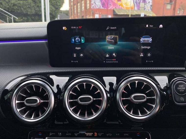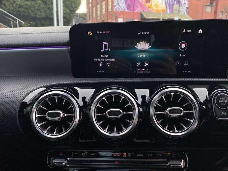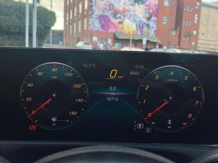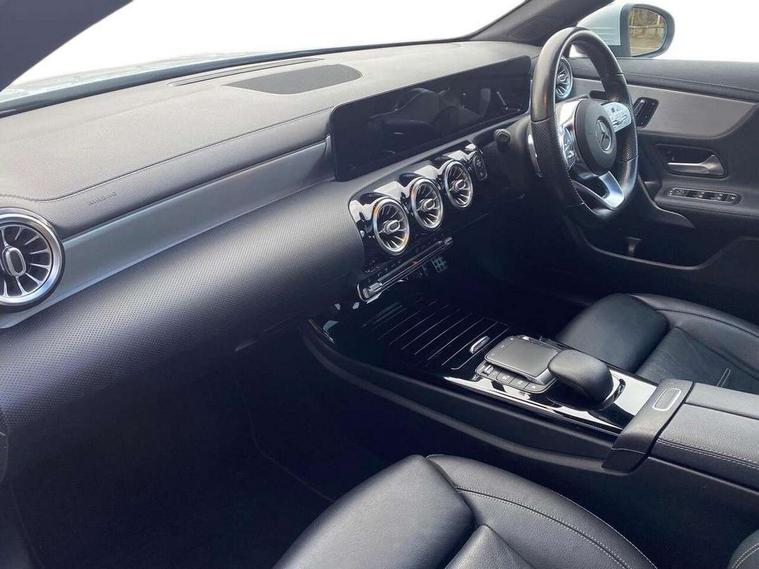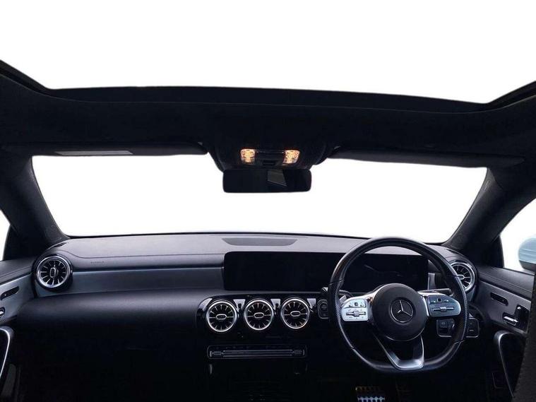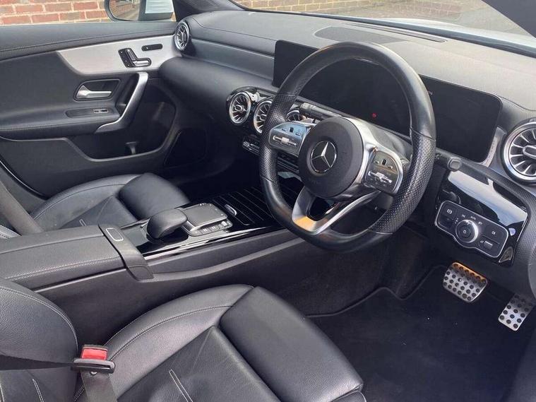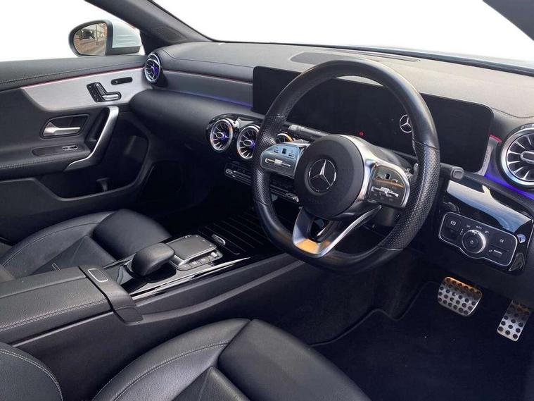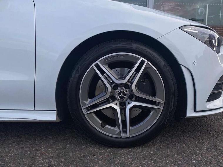10.25 inch Instrument display with digital cockpit, 10.25 inch touchscreen central media display, Attention assist - Monitors steering behaviour and long journey fatigue, Bluetooth connection, Car wash mode, DYNAMIC SELECT with a choice of driving modes (ECO, Comfort, Sport and Individual), ECO start/stop function, Fluid level warning indicator for fuel, oil, coolant and washer fluid, Hard-disk navigation, Hey Mercedes Voice activation, Lamp failure indicator, MBUX augmented reality for navigation, Mercedes me connect including emergency call system, accident recovery, breakdown and maintenance management, Outside temperature gauge, Owners manual and service booklet in English, Pre-installation for Vehicle Monitoring, Pre-installation for Vehicle Setup, Pre-installation of private car share, Preinstallation for Mercedes Benz link, Radio aerial integrated into front and rear windshields, Service indicator (ASSYST), Smartphone integration with Apple CarPlay and Android auto, Traffic sign assist, Trip computer in multifunction display with current consumption indicator, Wireless charging, 7G-DCT 7 speed automatic transmission, Lowered comfort suspension, Rear axle multi-link, DAB digital radio tuner, MBUX multimedia system with DAB digital radio and touchpad including satellite navigation, Mercedes Benz advanced sound system (225 W) with 10 speakers, 1 central speaker, speakers on doors, a tweeter on door, one sub woofer + boost amplifier, USB (type C) ports (2) in stowage compartment and 1 in front of centre console, Adaptive brake lights, AMG body styling with AMG front apron and rear apron and visible exhaust tailpipe in chrome trim elements, AMG bodystyling side skirts, Body colour bumpers, Body colour door handles, Chrome beltline strips, Chrome weather strip, Diamond radiator grille pins in chrome with silver painted louvres and chrome insert, Electric panoramic sliding sunroof, Electric windows, Electrically adjustable and heated door mirrors with integrated LED indicators, Exhaust system with 2 Visible tailpipe trim elements and rear apron with trim in chrome, Headlamp assist automatic headlamp activation, Heated glass rear windscreen + timer control, High level LED third brake light, Integrated LED daytime running lights, Interior mirror with black reading lamps and frameless, LED tail lamp, Multibeam LED headlamps with adaptive highbeam assist plus, Privacy glass with dark tinting on rear side windows and rear window, Rain sensing windscreen wipers with two sensitivity settings, Rear fog lamp, Window line trim strip in chrome, 3 spoke flattened bottom nappa leather multifunction steering wheel with perforated leather in grip area, 40:20:40 split folding rear seat backrests, Air conditioning - Two zone thermotronic luxury automatic climate control with display, Air vents with surround in silver chrome, Automatic child seat recognition sensor, Black roof lining, Brushed stainless steel sports pedals with rubber studs, Electrically adjustable front memory seats including lumbar support, Floor mats with stitched AMG lettering, Front centre armrest with stowage, Galvanished gear shift paddles on steering wheel, Heated front seats, Illuminated glove compartment stowage, Illuminated Mercedes benz door sills with Mercedes Benz lettering, Interior lighting - 64 colour Ambient lighting, Luggage net on driver/front passenger seat backrest, Manually height and reach adjustable steering column, Rear armrest with two integral cup holders for drinks, Rear head restraints, Sport seats with fixed head restraints, Stowage compartment in centre console with retractable cover, Sunvisors with illuminated vanity mirrors, Touchpad on center console, Twin front cupholders, Two outer rear seat isofix and top tether child seat fixing points, Keyless go pack - CLA, Light and sight pack - CLA, Mirror pack - CLA, Parking package - CLA, Seat comfort pack - CLA, Active bonnet pedestrain safety measure which detects an impact and raises bonnet by 65mm, Adaptive brake assist with hold function and hill start assist, Anti-lock braking system (ABS), Black seat belts, Bonnet with power domes, Brake pad wear warning indicator, Childproof locks manually operated for rear doors and electrically operated for rear power windows, Crash responsive emergency lighting, Driver and front passenger head and sidebags, Driver and front passenger windowbags, Drivers knee airbag, Dual stage driver and front passenger airbags, Electric parking brake, Electronic stability programme with acceleration skid control, ESP curve dynamic assist, Front and rear seatbelt reminder, Front passenger seat occupancy sensor, Three point rear seat belts, Tyre pressure monitoring system, Warning triangle and first aid kit, Remote central locking and crash sensor with emergency opening function, Urban guard vehicle protection system with immobiliser and interior protection, Light aluminium with longitudinal grain interior trim, 18" 5 twin spoke design alloy wheels painted in titanium grey with high sheen finish, Summer tyres, Tirefit tyre sealant kit,